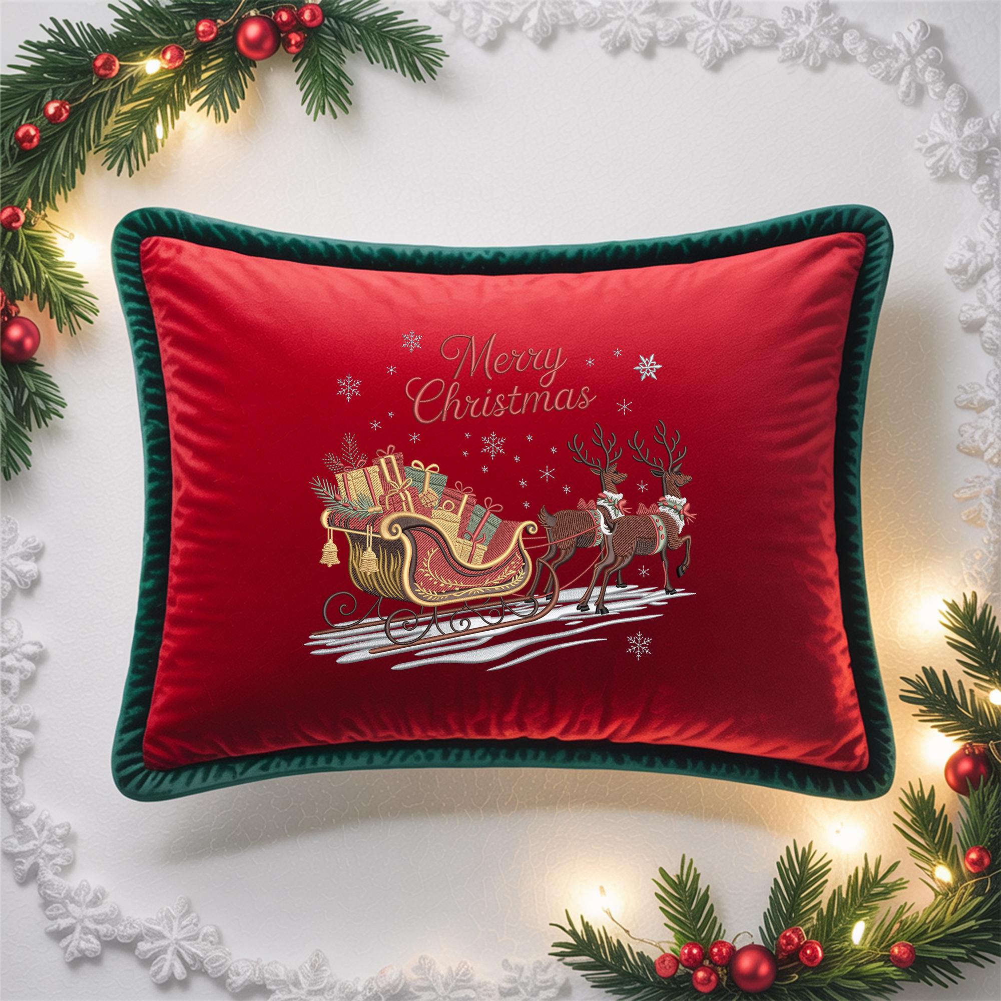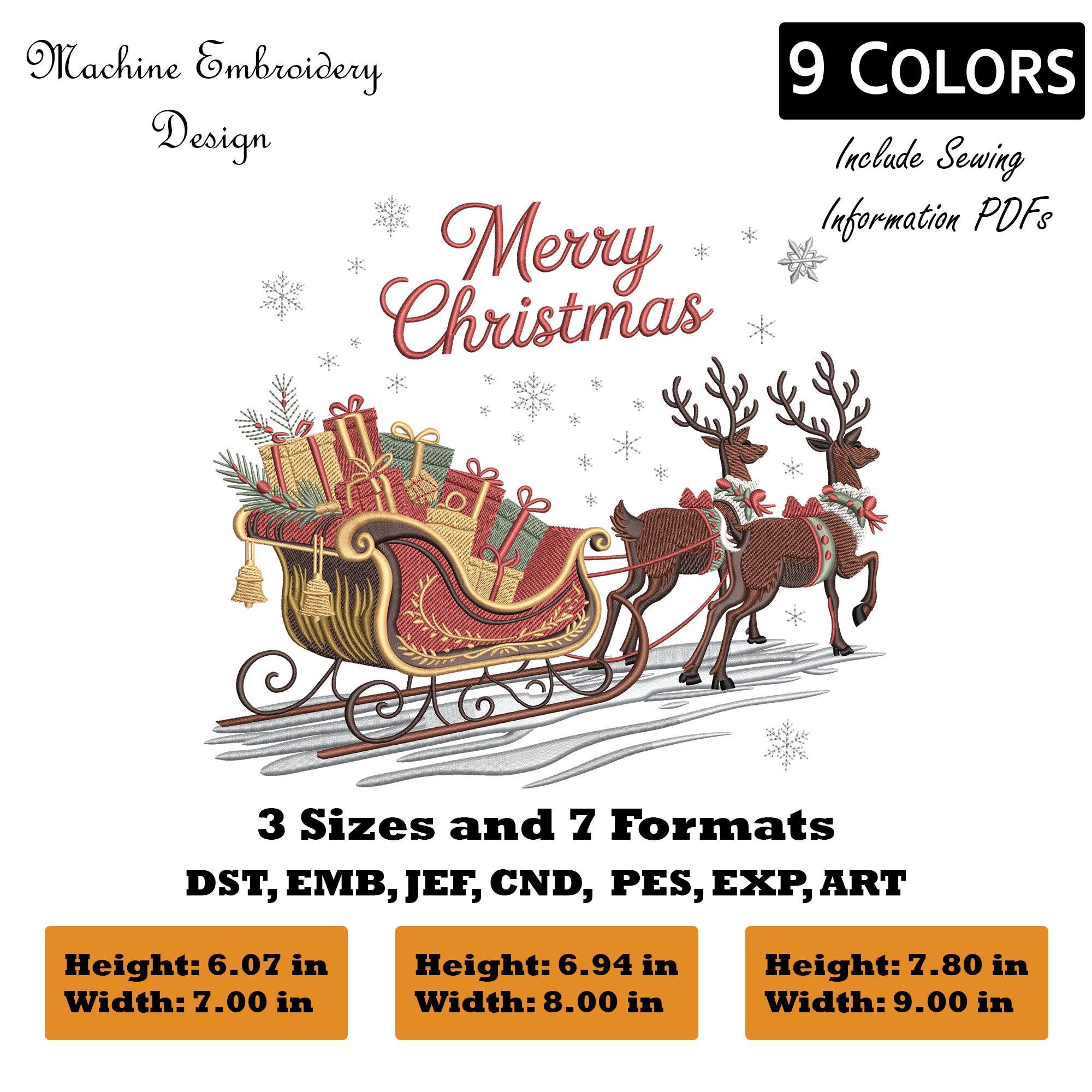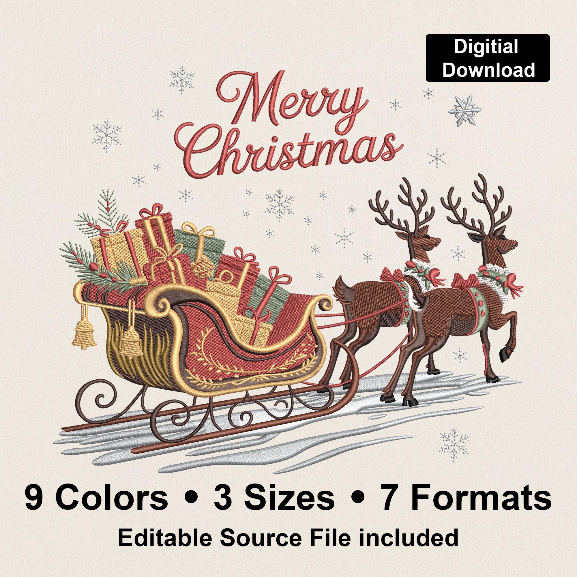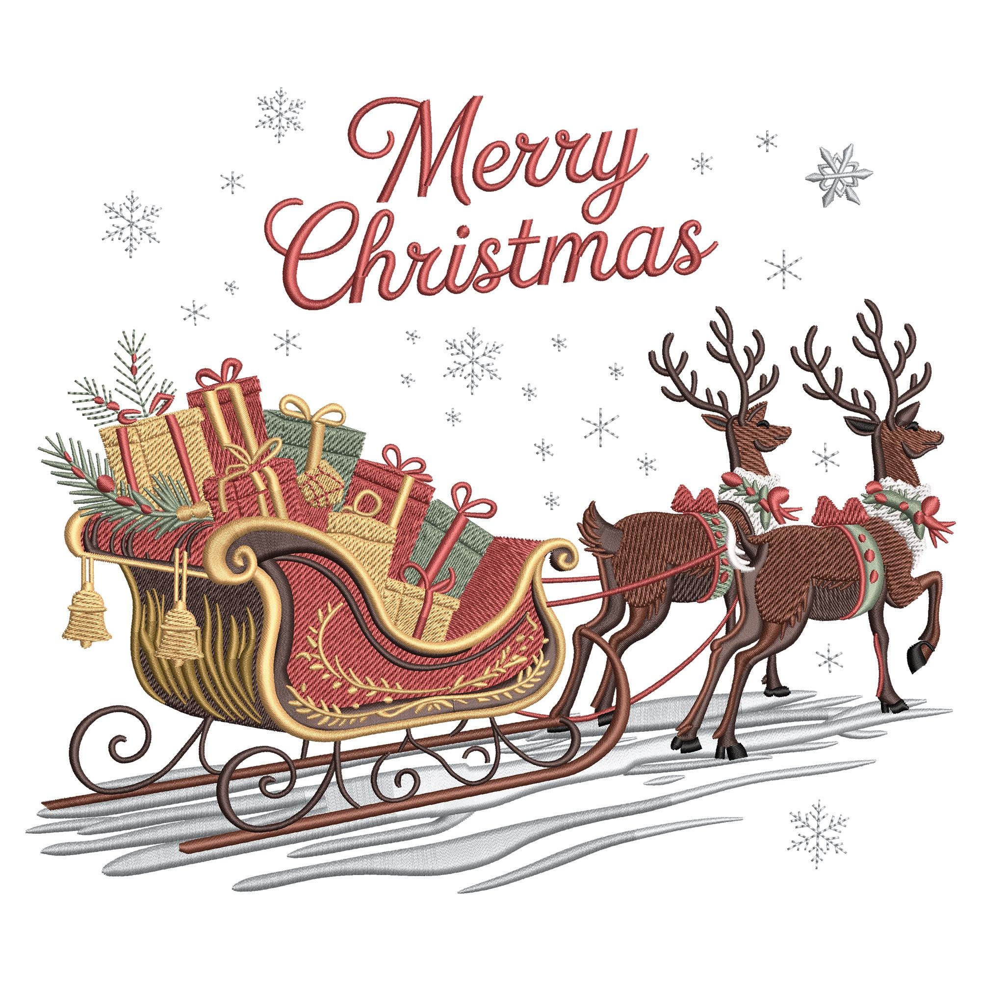 Christmas Reindeer Sleigh Machine Embroidery Design | Holiday Digital Download