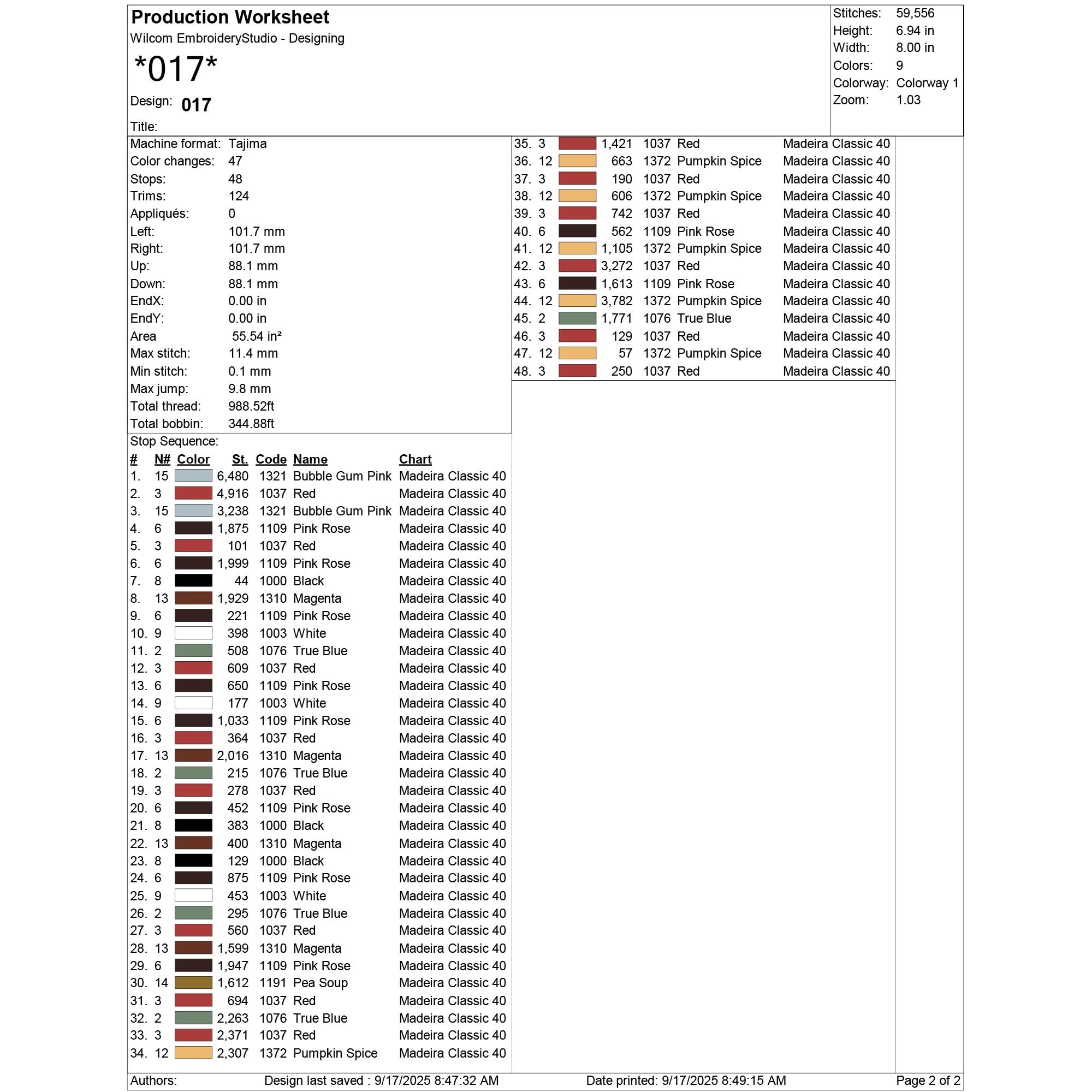 File Code – 017: 59,556 stitches — 6.94" (H) x 8.00" (W) — 9 colors