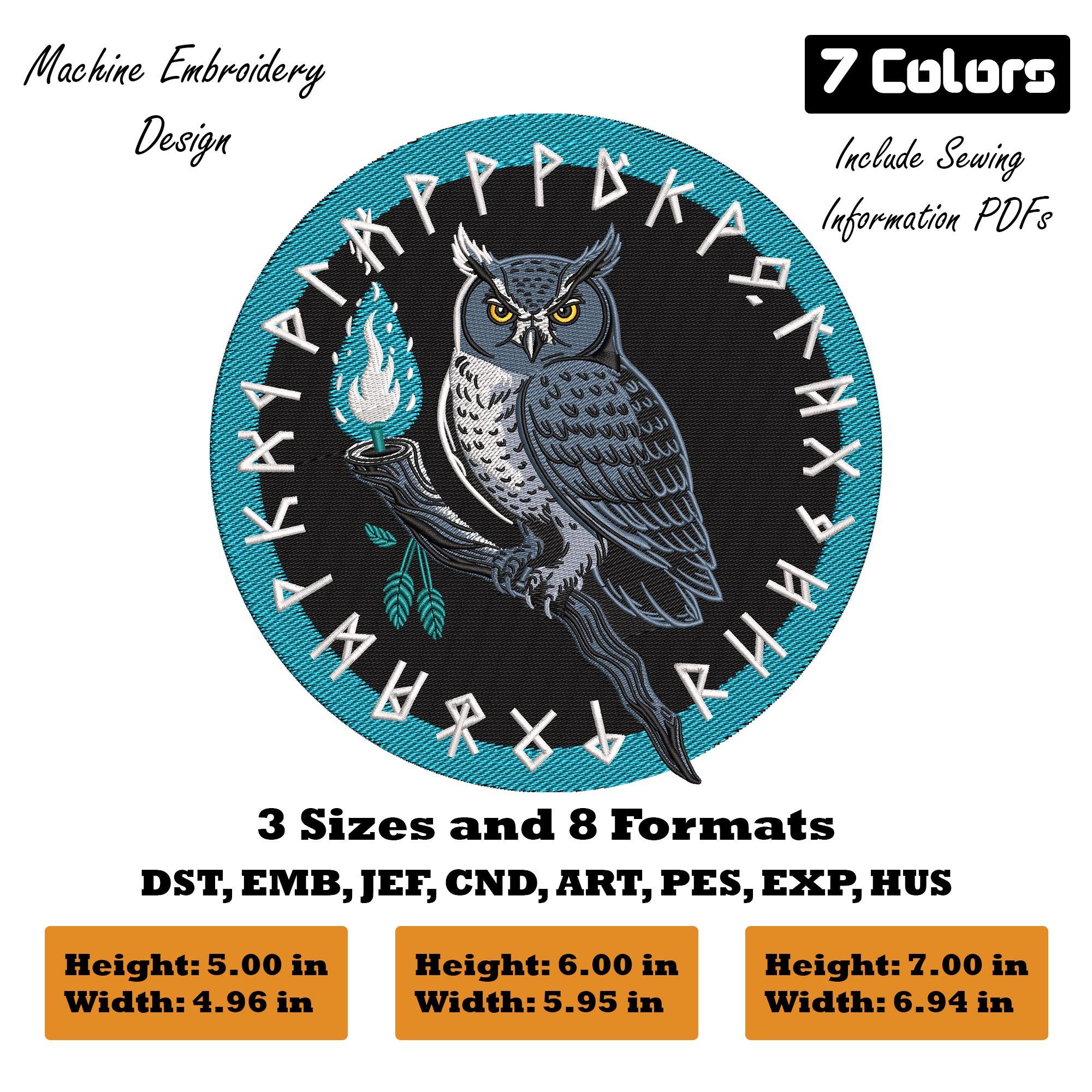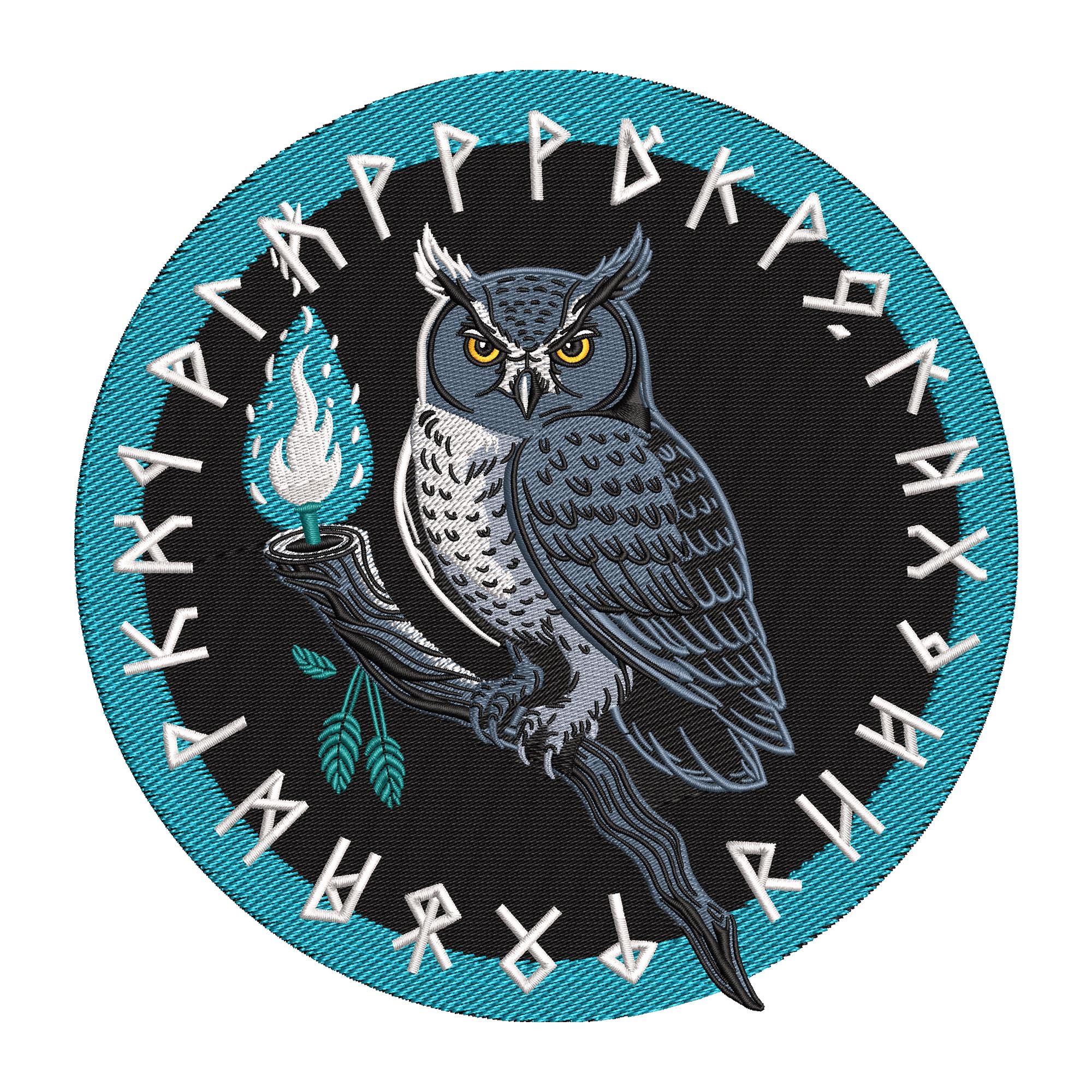Halloween Runic Owl Machine Embroidery Design | Gothic Witchy Digital Download