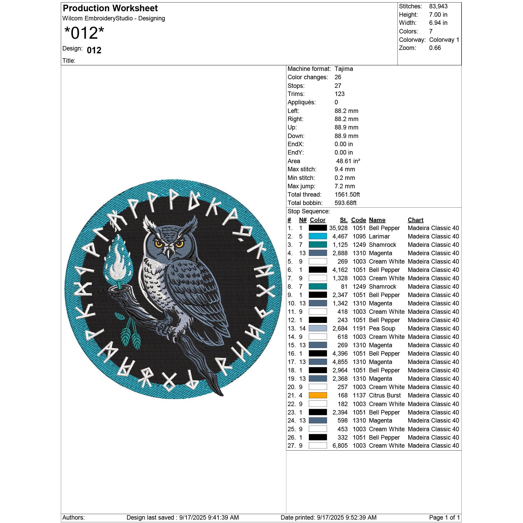 File Code – 012: 83,943 stitches — 7.00" x 6.94" (17.8 cm x 17.6 cm / 178 mm x 176 mm) — 7 colors