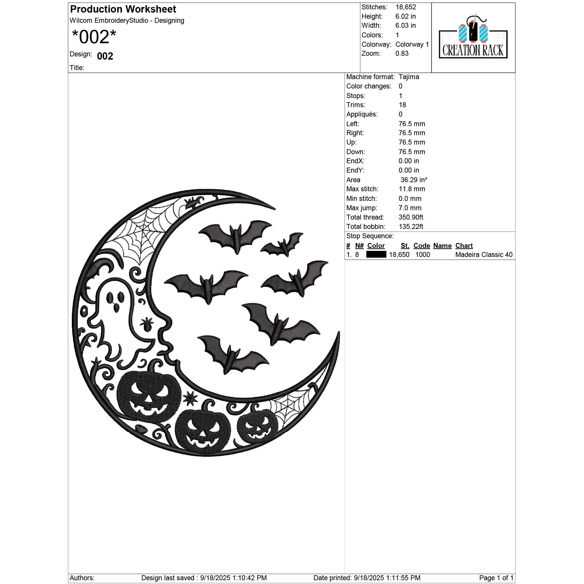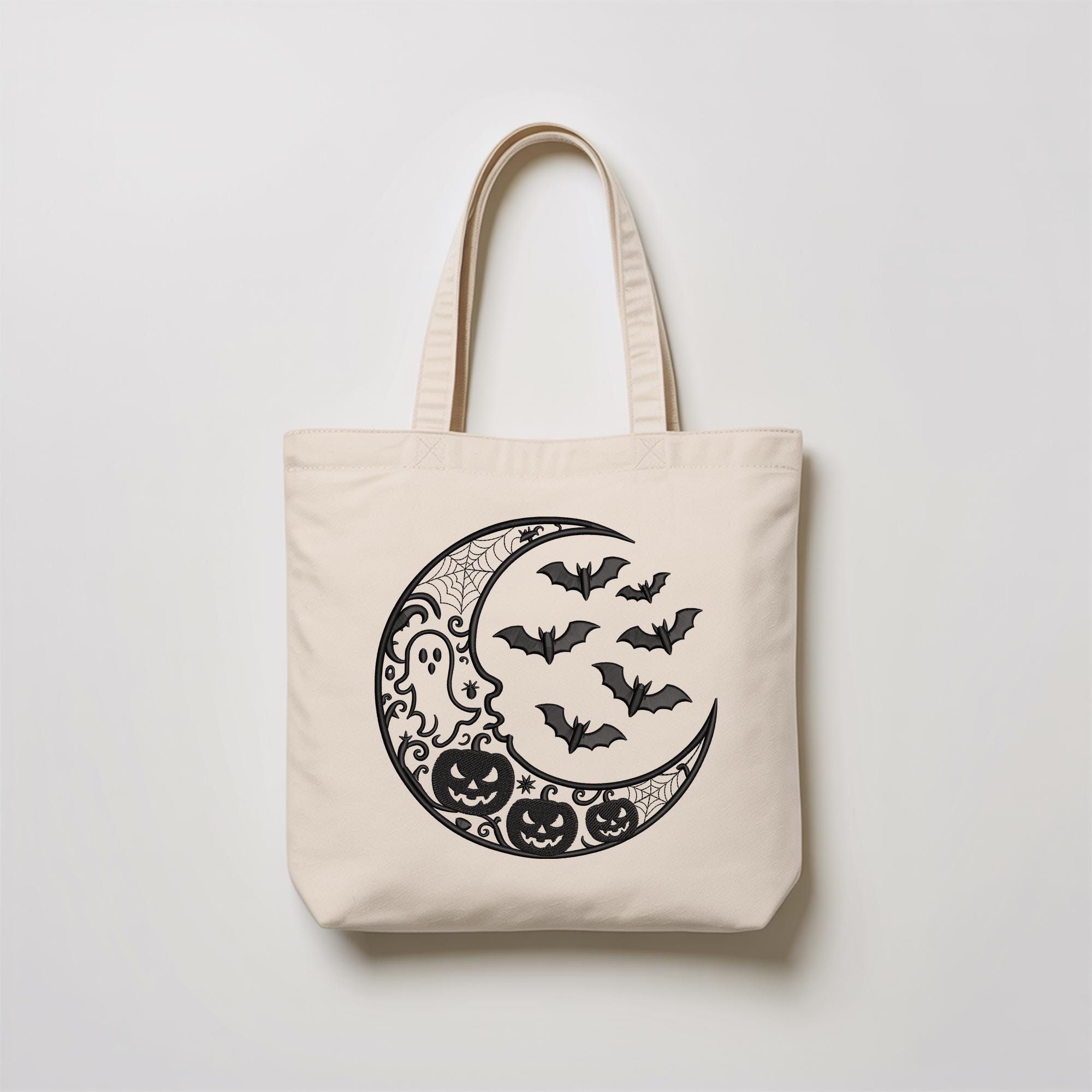 This moon embroidery design is simple yet striking, ideal for stitching on Halloween costumes, tote bags, altar cloths, wall hangings, fall decorations, or even cozy home textiles. Its single-color design makes it beginner-friendly while still offering a bold, gothic effect.