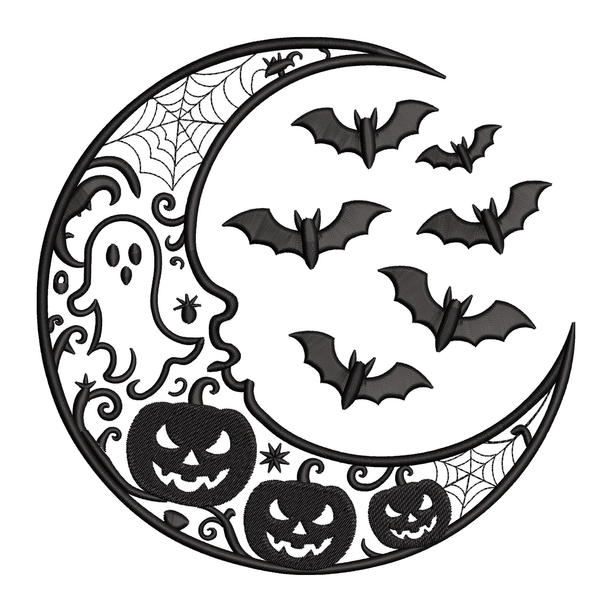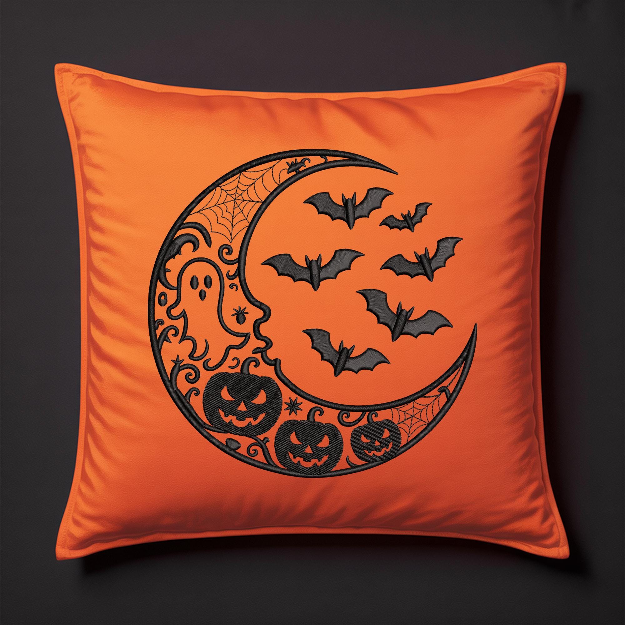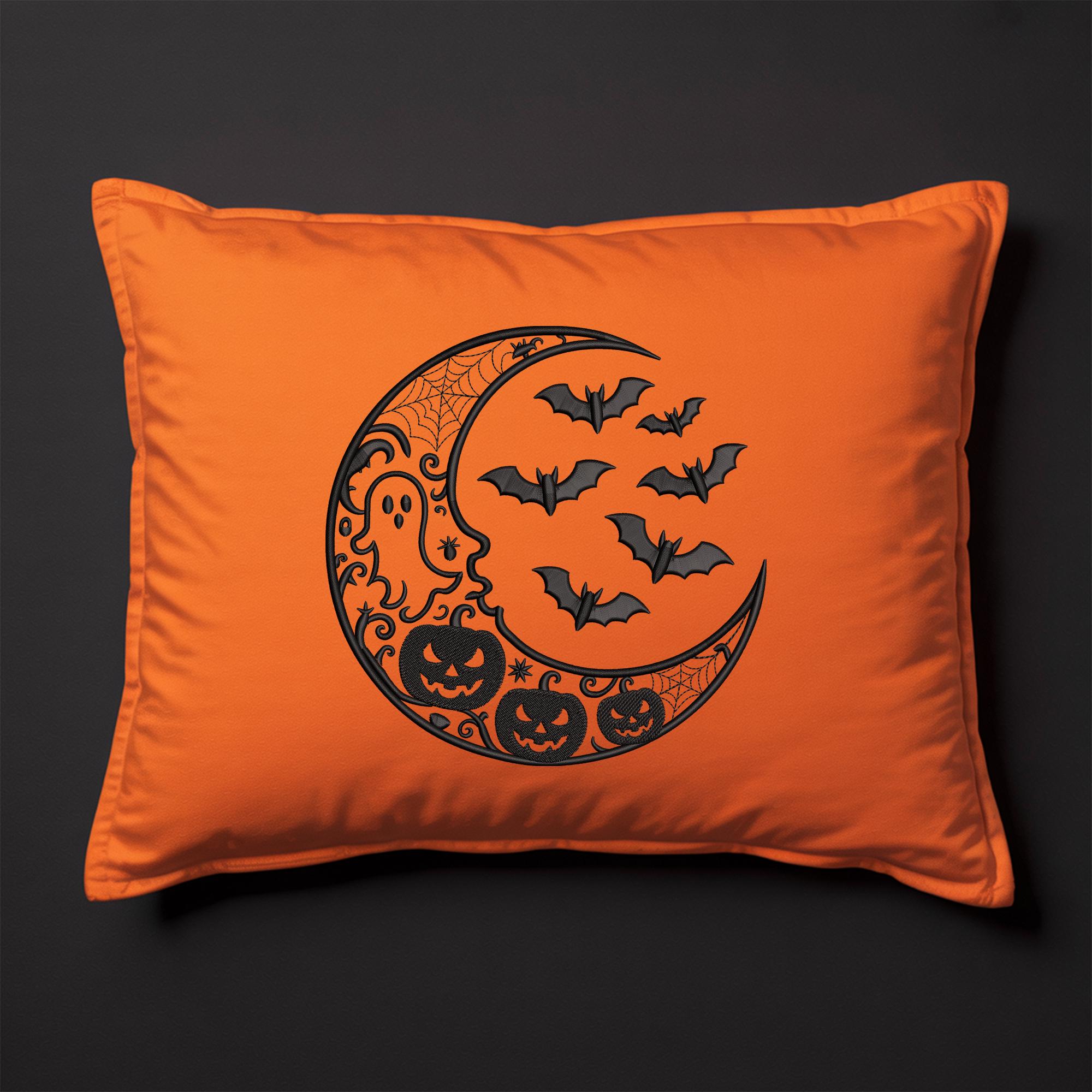 Halloween Crescent Moon Embroidery Design | Machine Embroidery Pattern for Fall & Holiday Projects