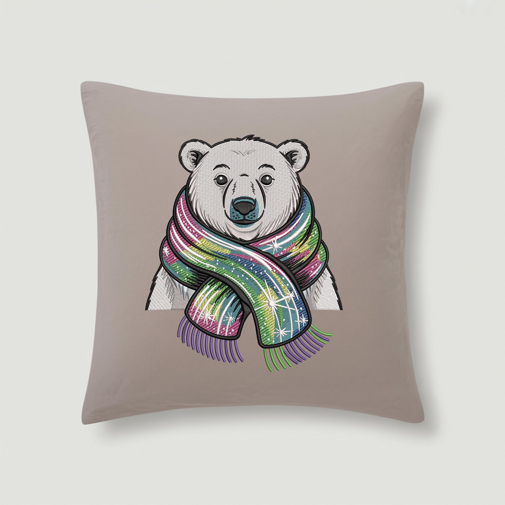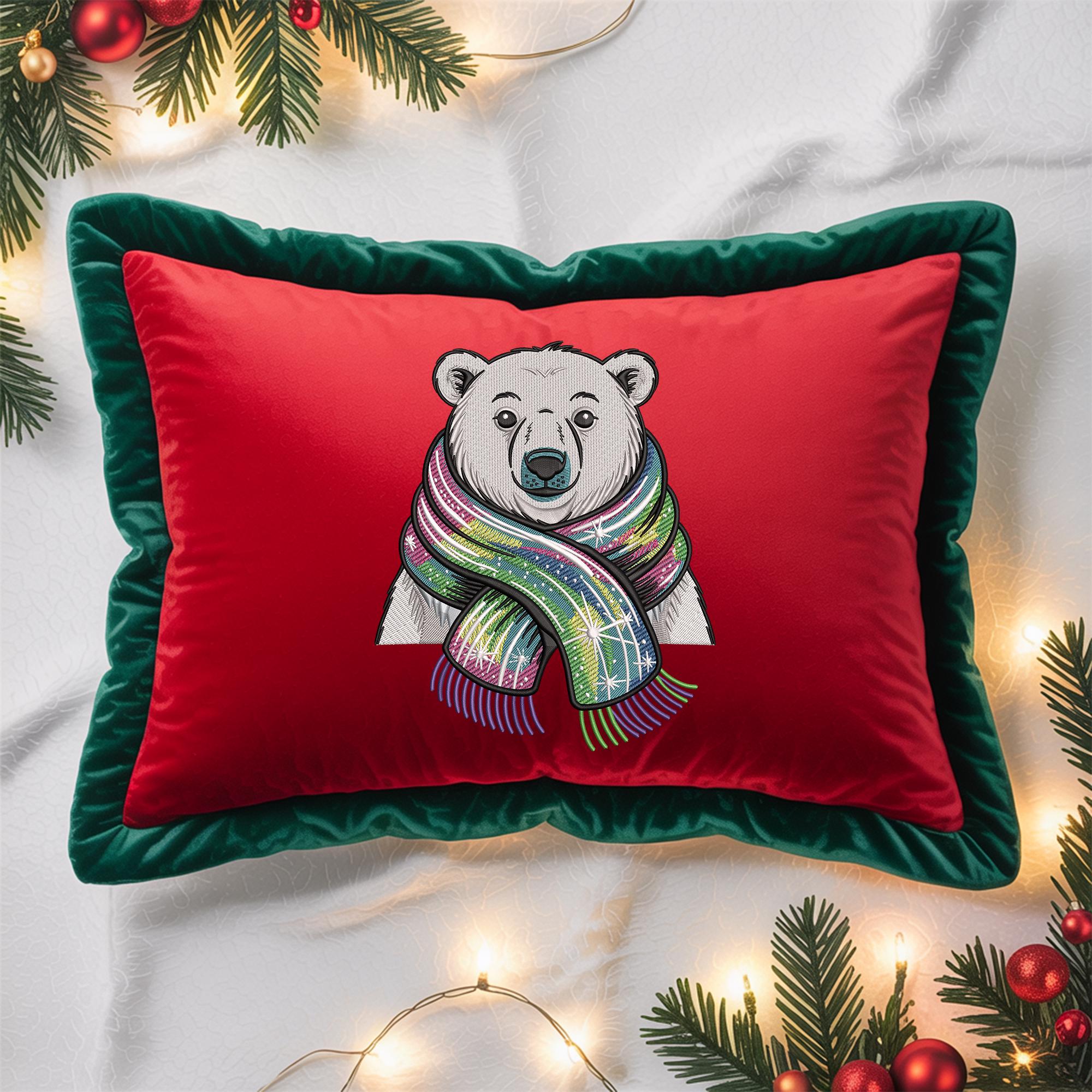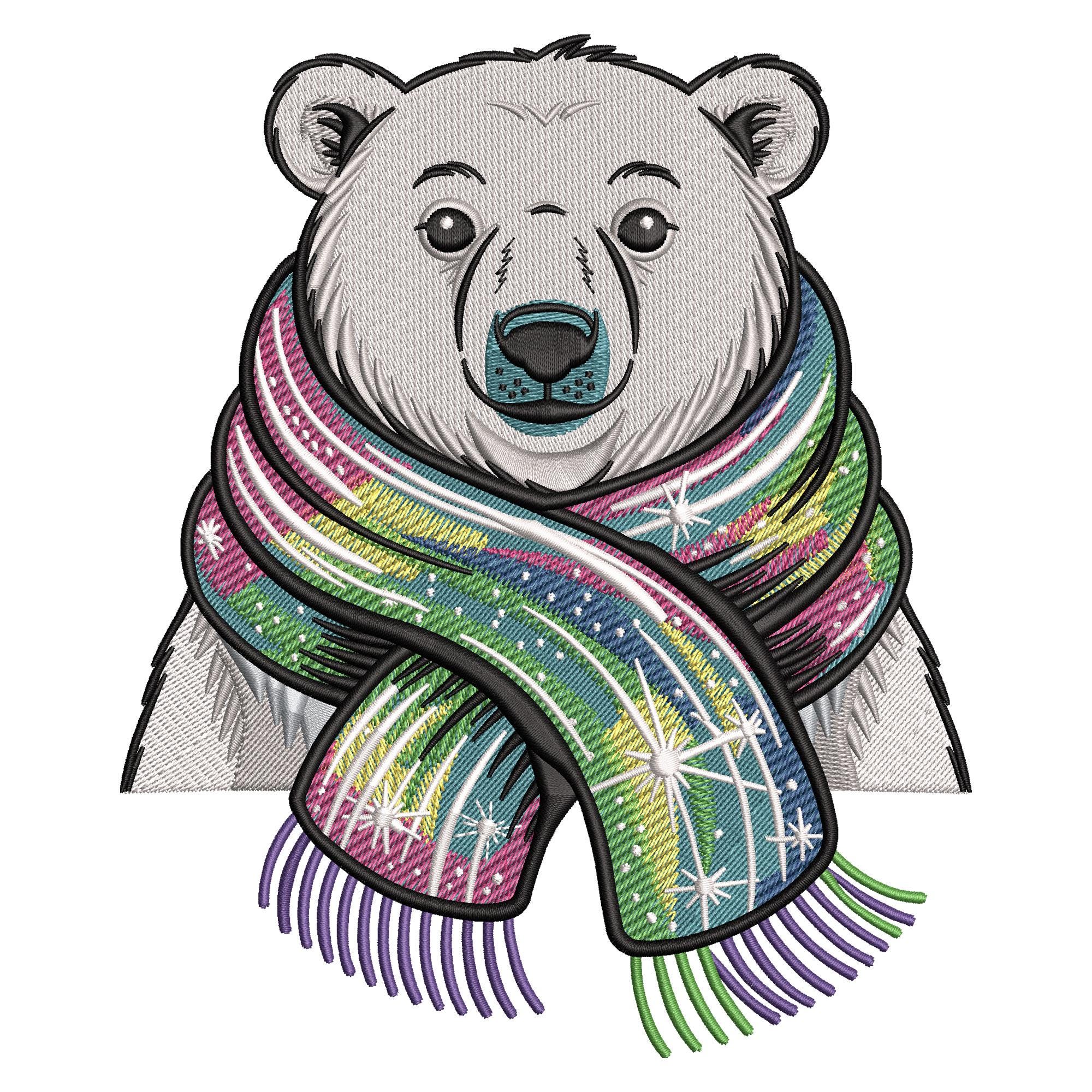 Christmas Polar Bear Embroidery Design | Cute Winter Holiday Machine Embroidery Pattern