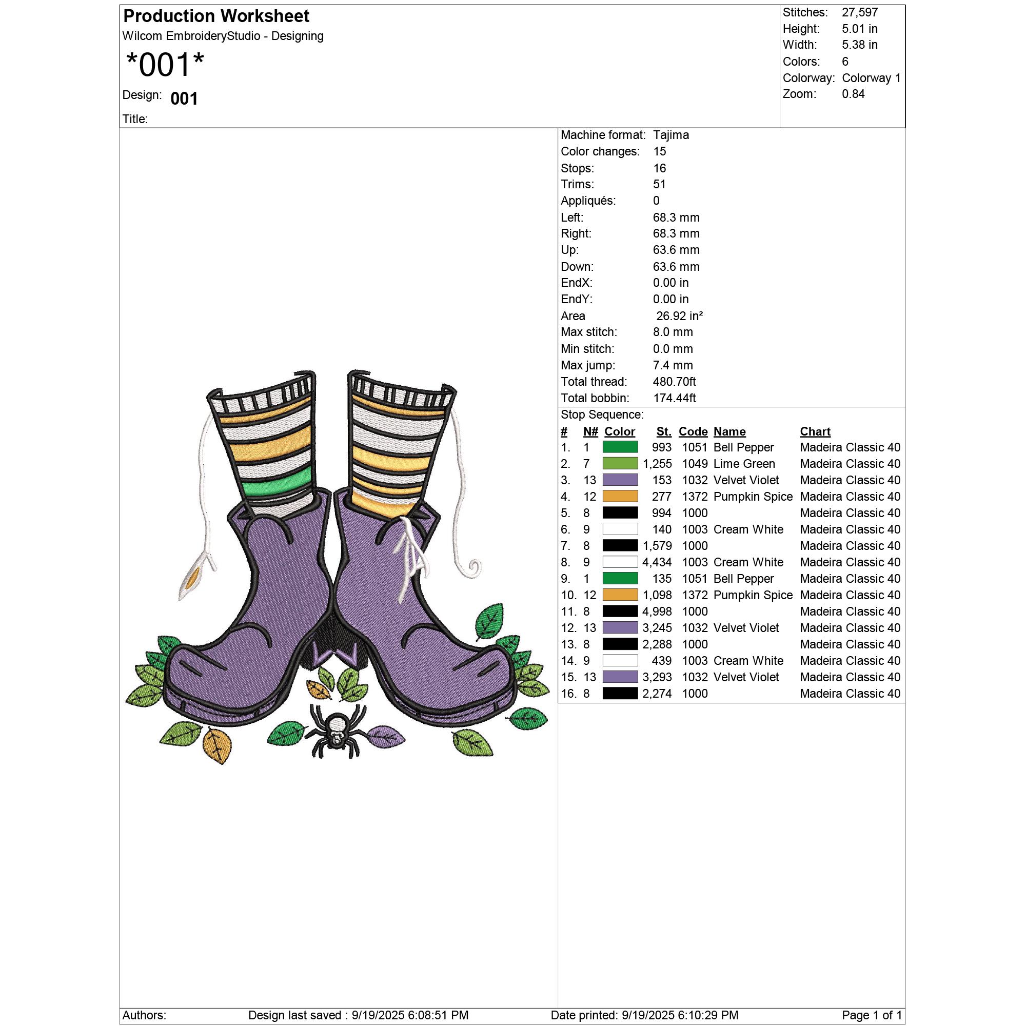 Witch Shoe Embroidery Design | Halloween Shoe Machine Embroidery Pattern