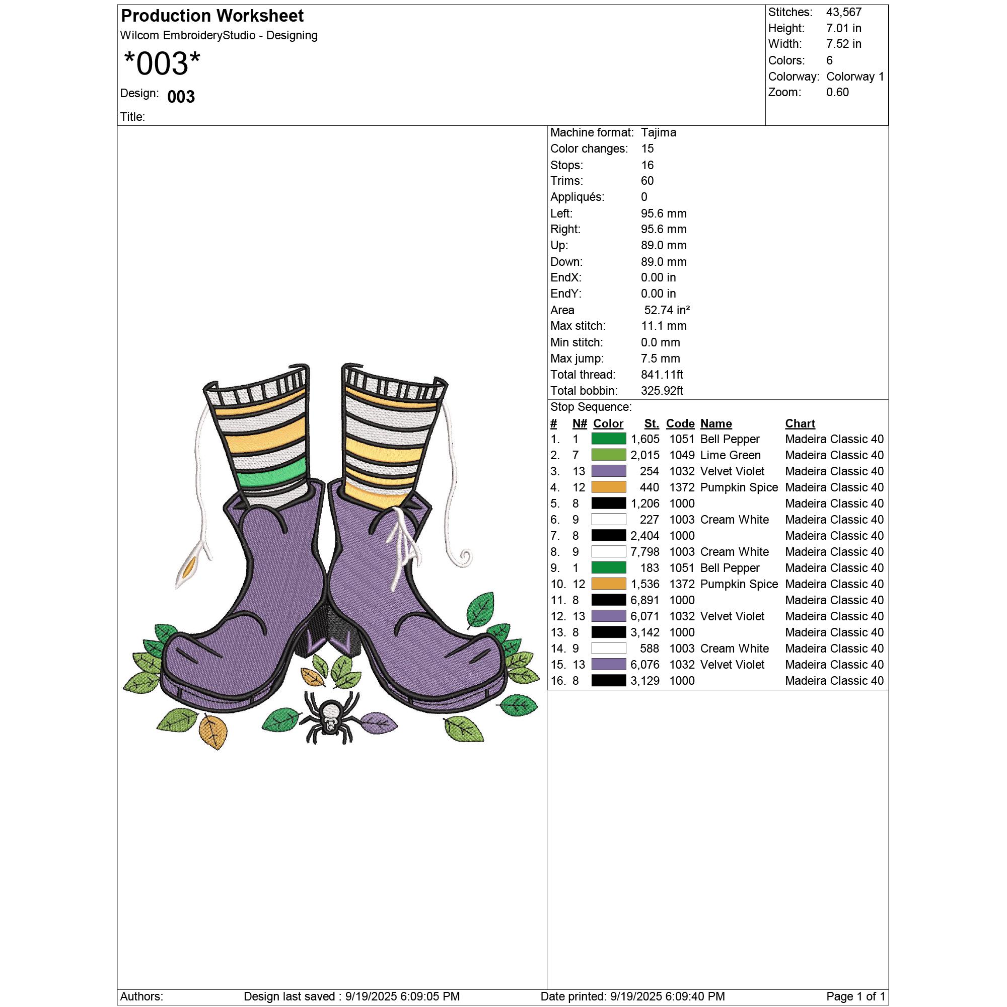 003 – 43,567 stitches | Size: 7.01 in x 7.52 in (17.8 cm x 19.1 cm / 178 mm x 191 mm) | 6 colors