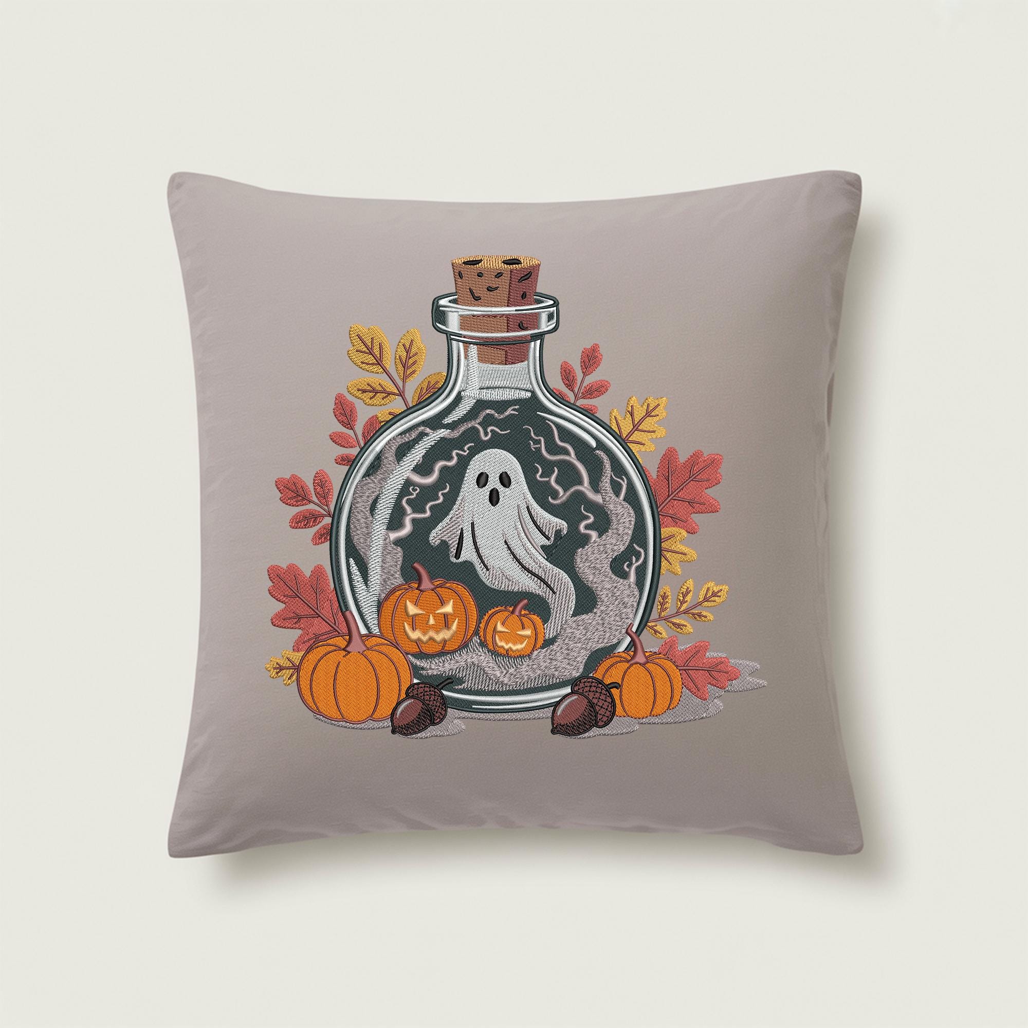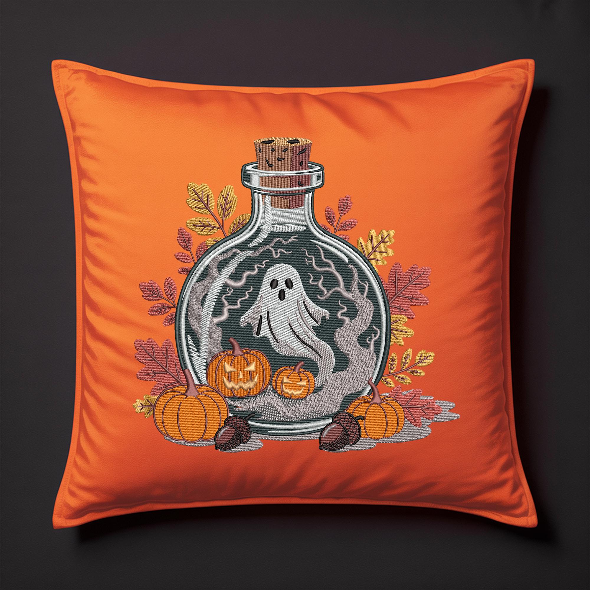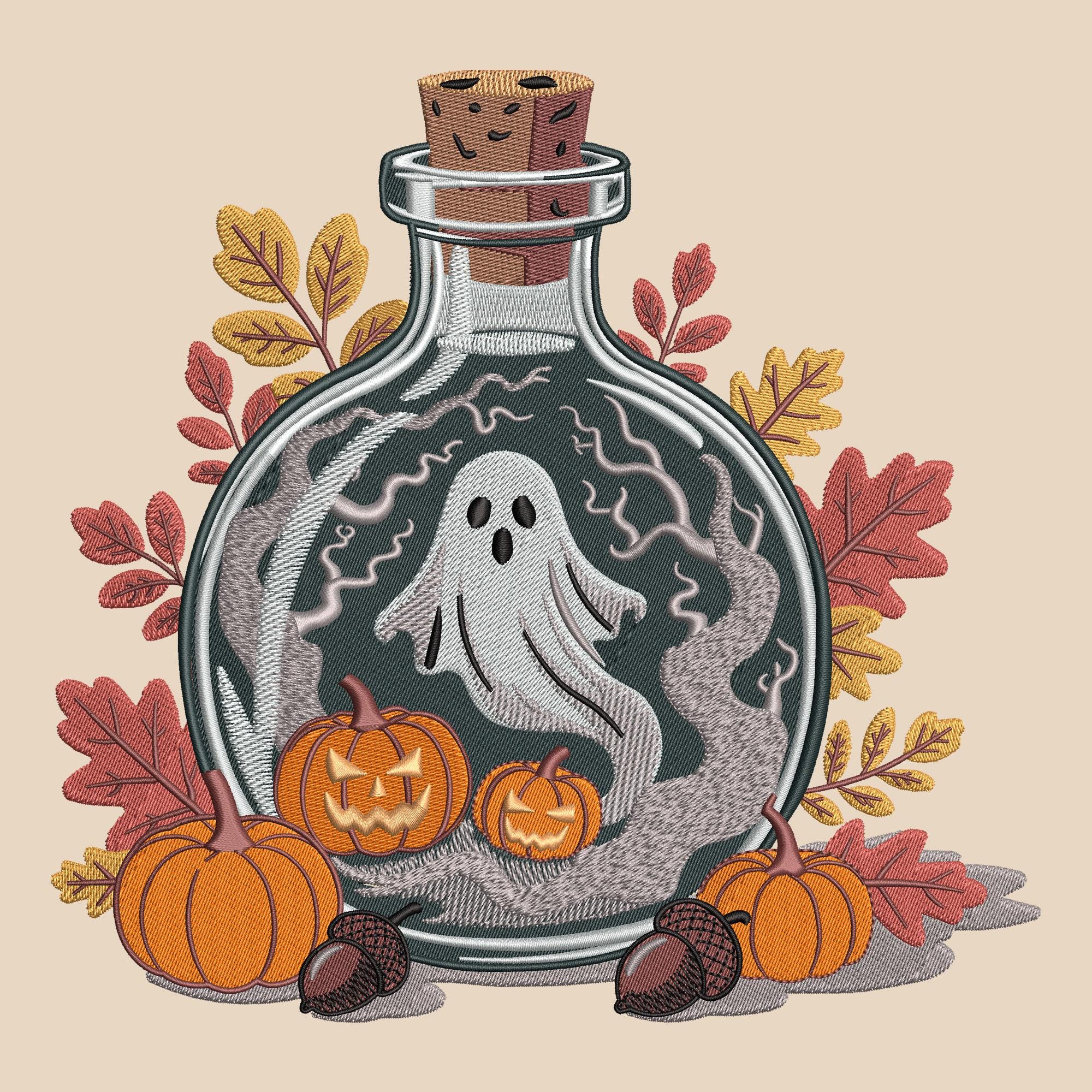 Halloween Ghost in Potion Bottle Embroidery Design | Spooky Machine Embroidery Pattern