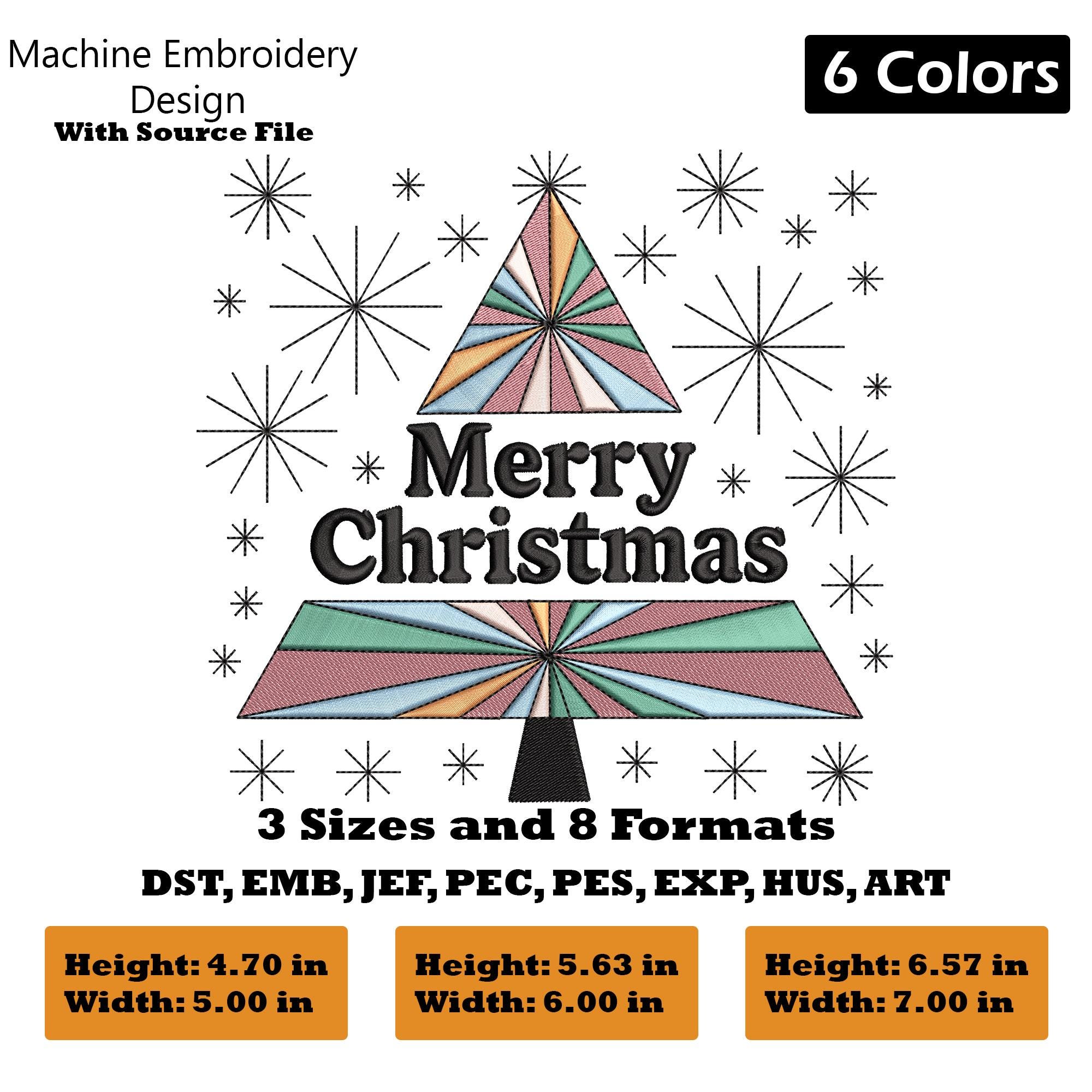 This design is ideal for Christmas tree embroidery, Merry Christmas projects, holiday crafts, seasonal décor, embroidery ornaments, and festive gifts. Its clean stitching and balanced size options make it versatile for both small and large embroidery projects.