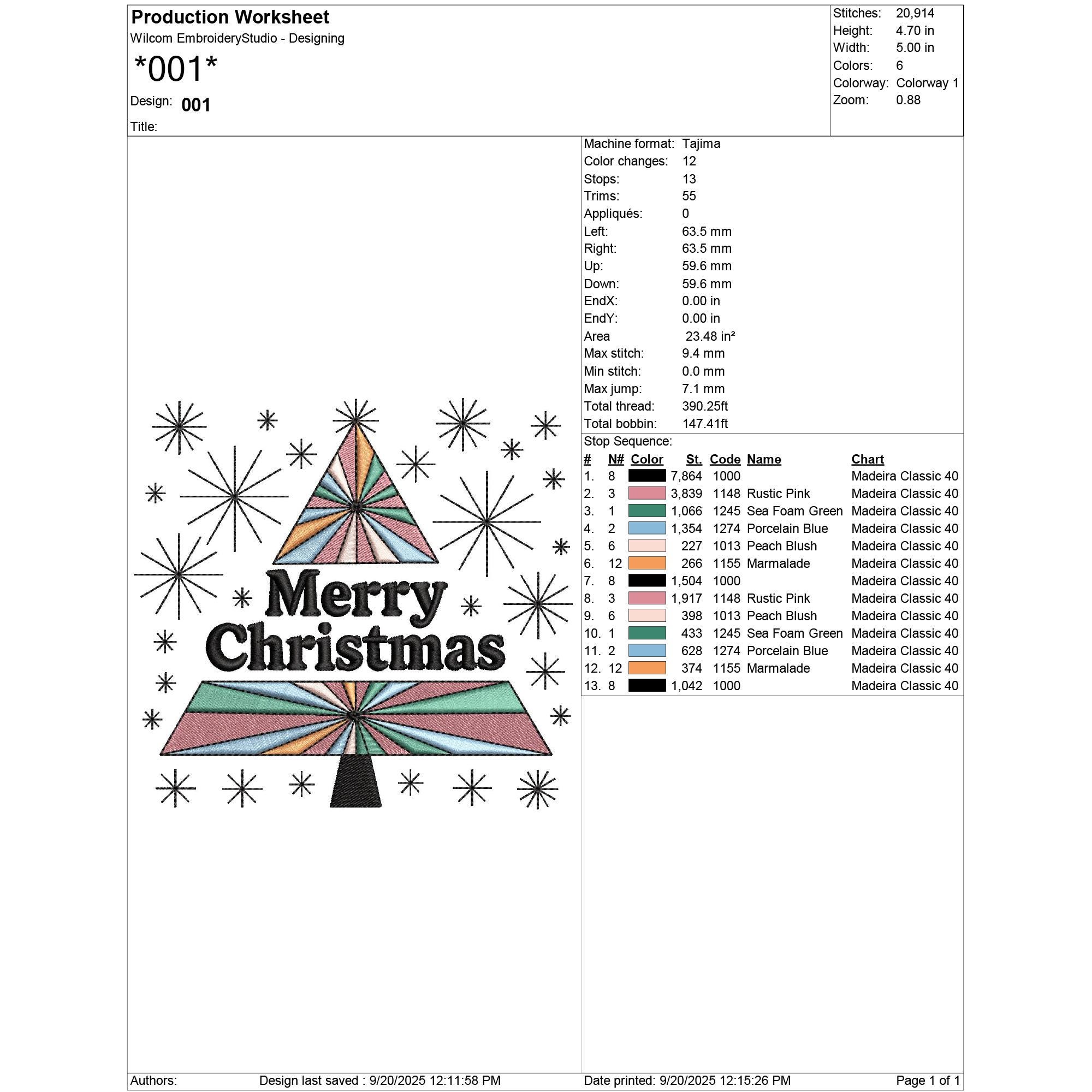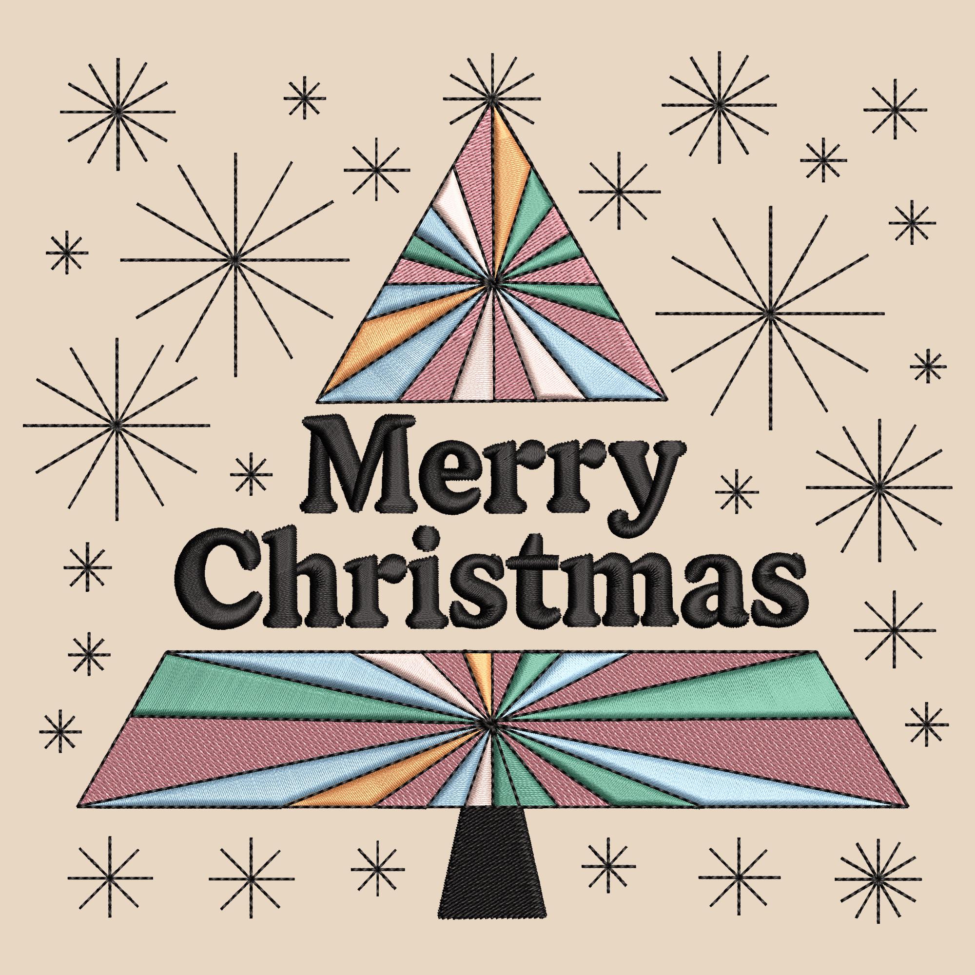 Merry Christmas Tree Embroidery Design | Holiday Machine Embroidery Pattern
