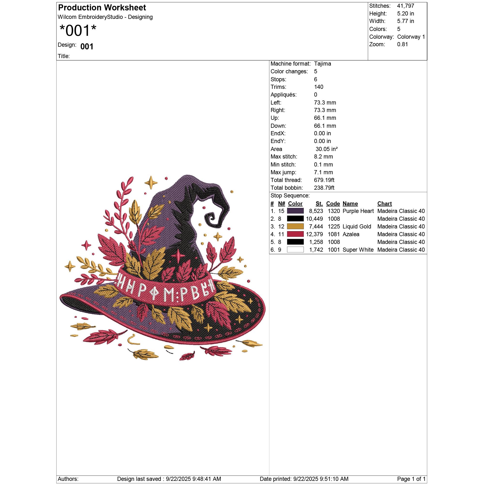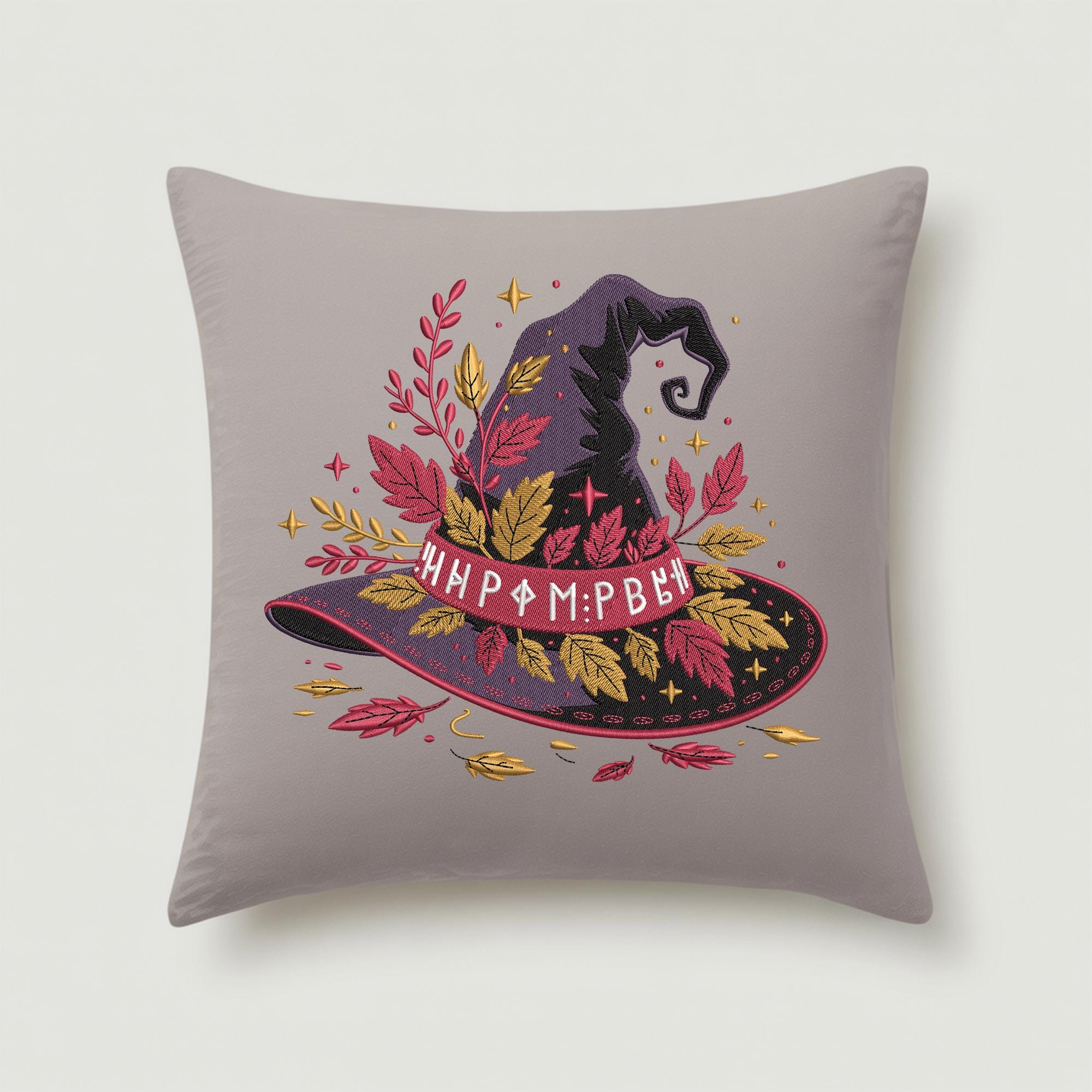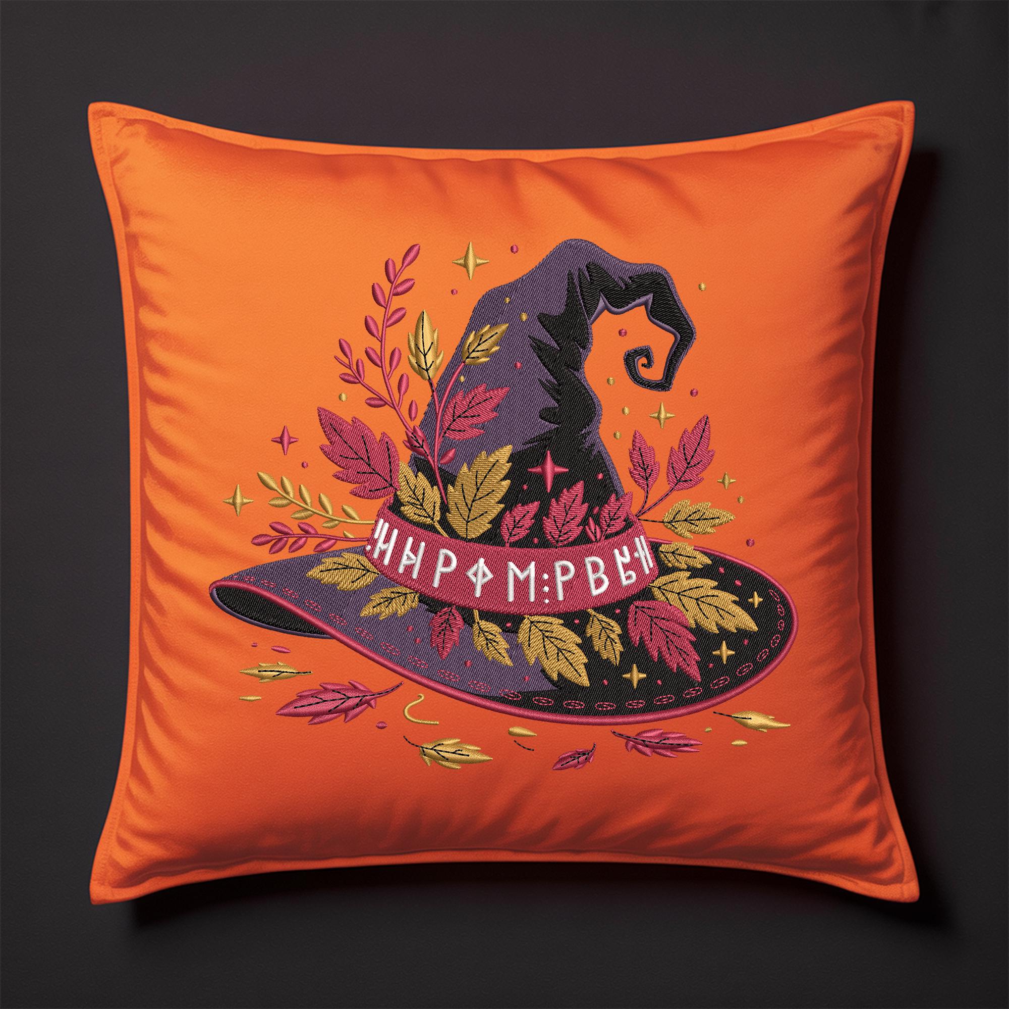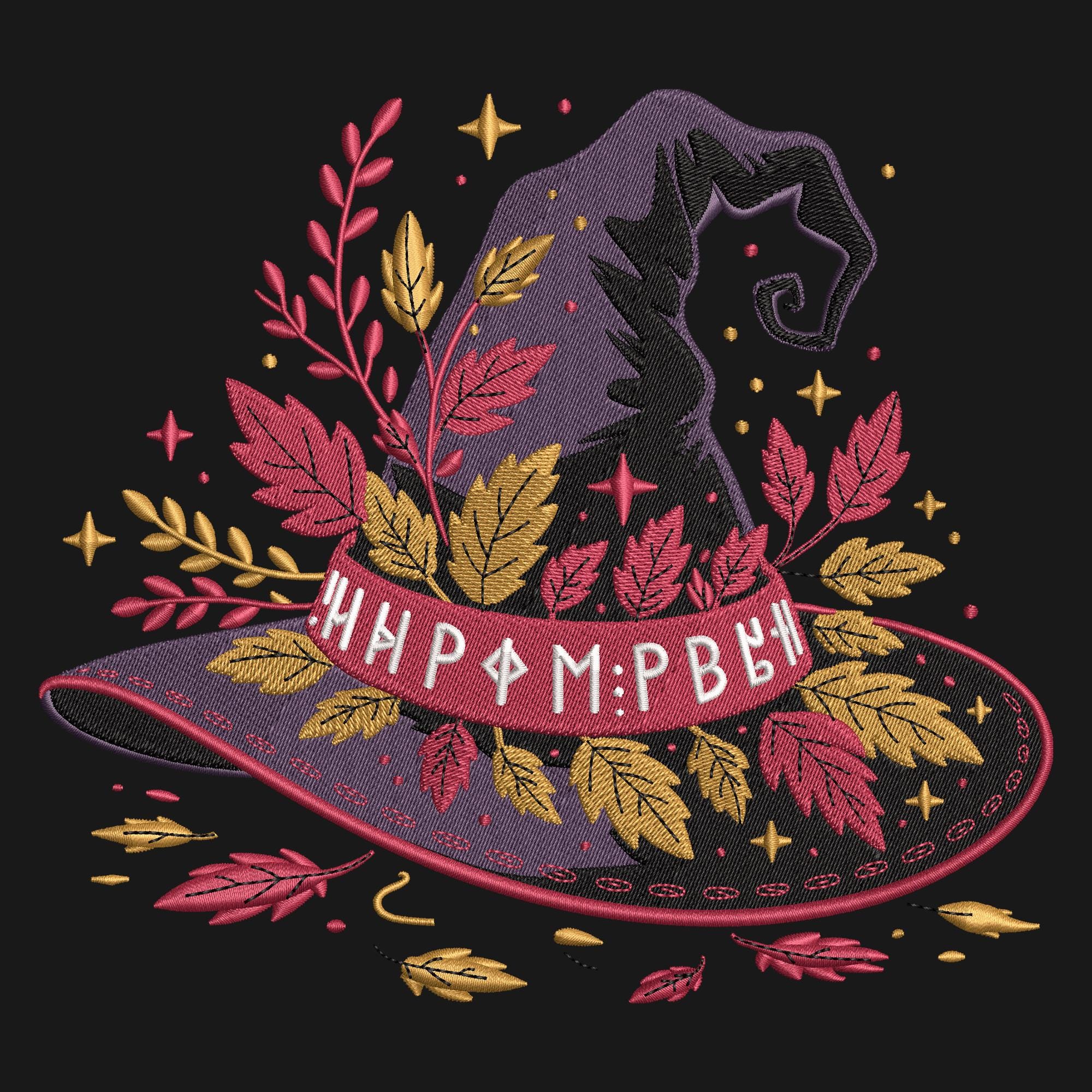 Autumn Witch Hat Embroidery Design | Halloween Witch Hat Machine Embroidery (Download)