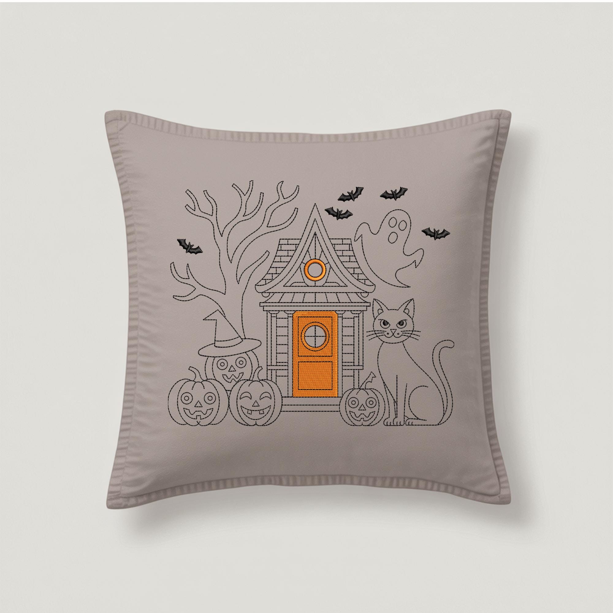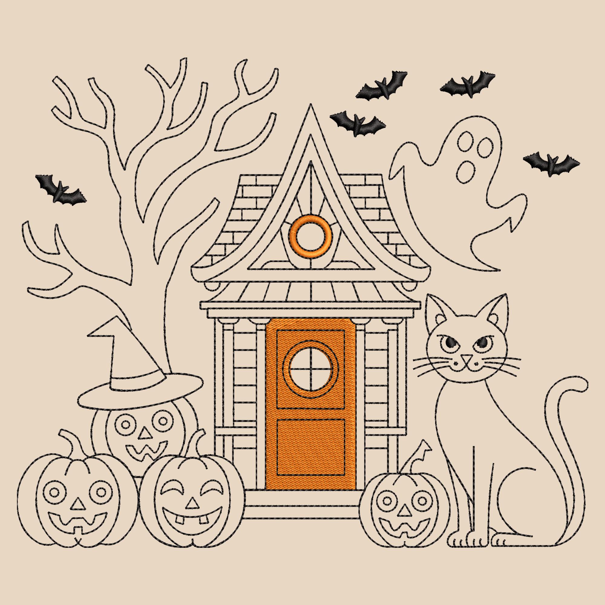 Halloween Haunted House Embroidery Design | Spooky House Machine Embroidery Pattern