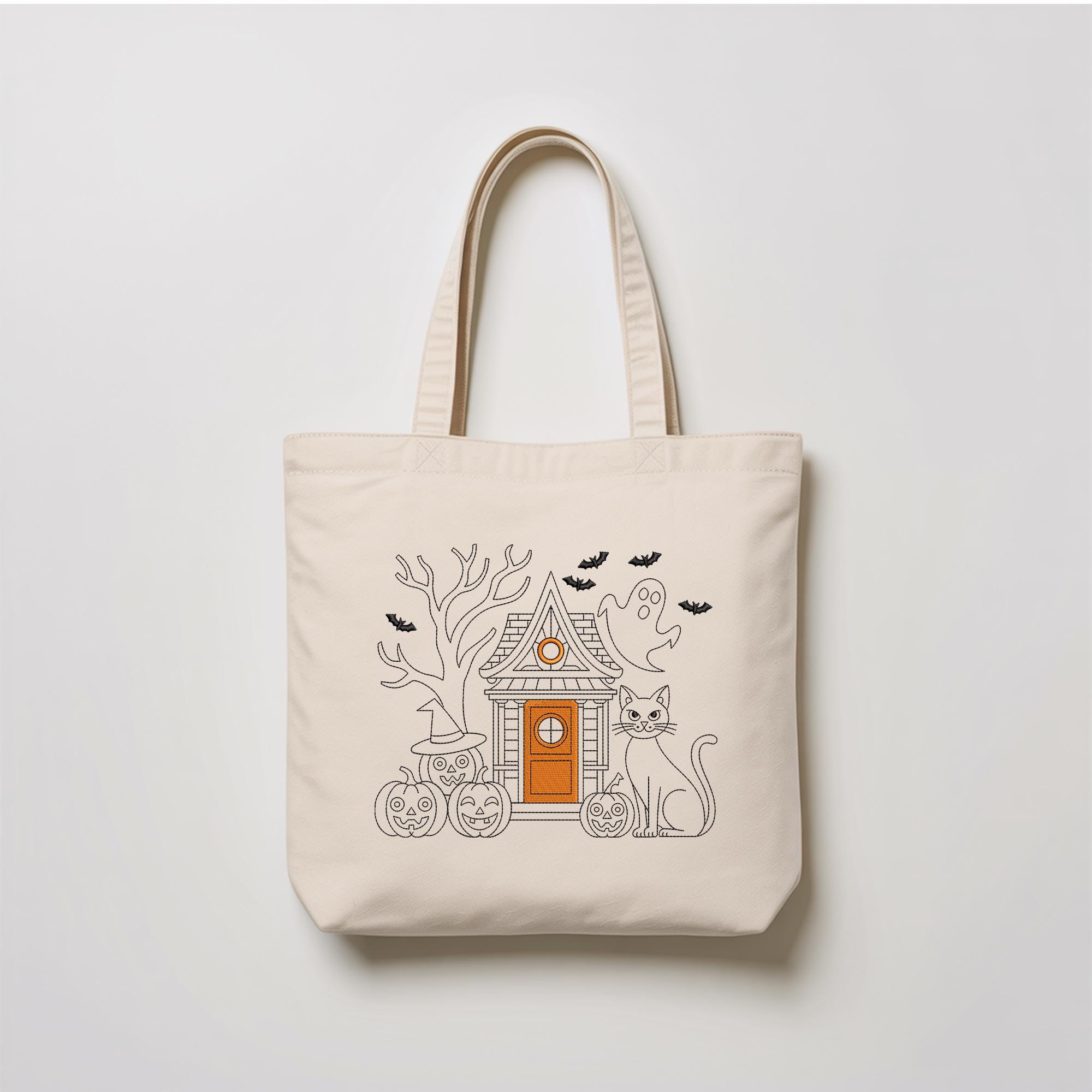 Bring spooky charm to your projects with this Halloween Haunted House Embroidery Design. Featuring a haunted house silhouette with Halloween details, this design is perfect for adding festive flair to costumes, trick-or-treat bags, table linens, wall art, and other fall embroidery crafts. A great choice for Halloween décor, gothic themes, and machine embroidery enthusiasts.