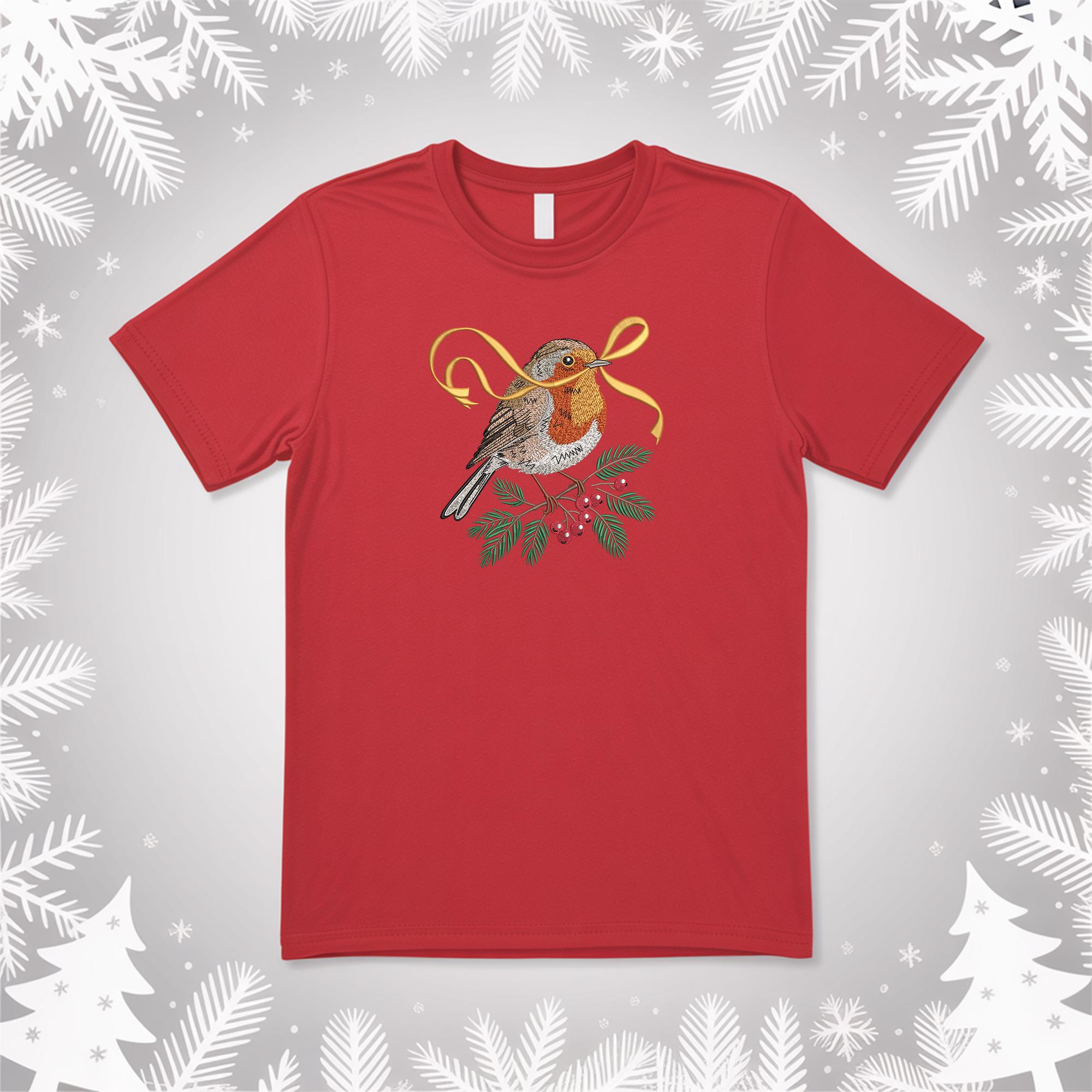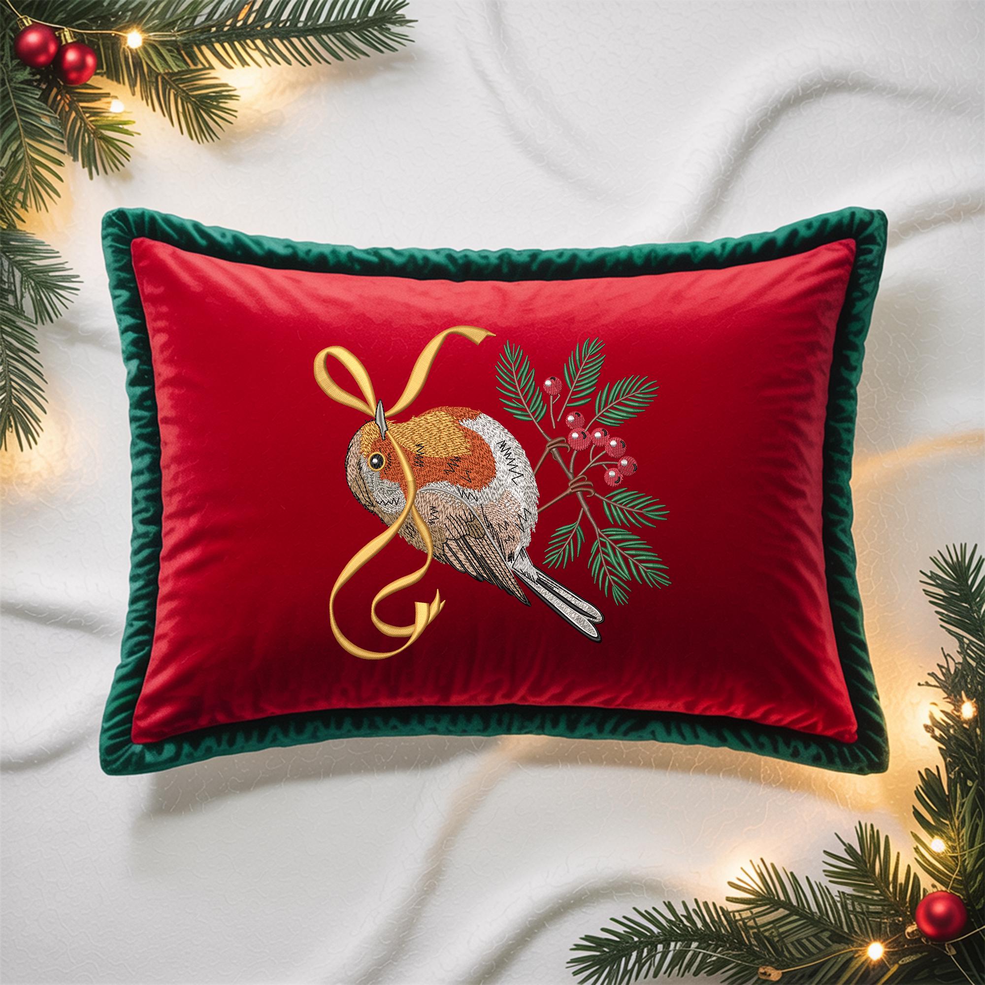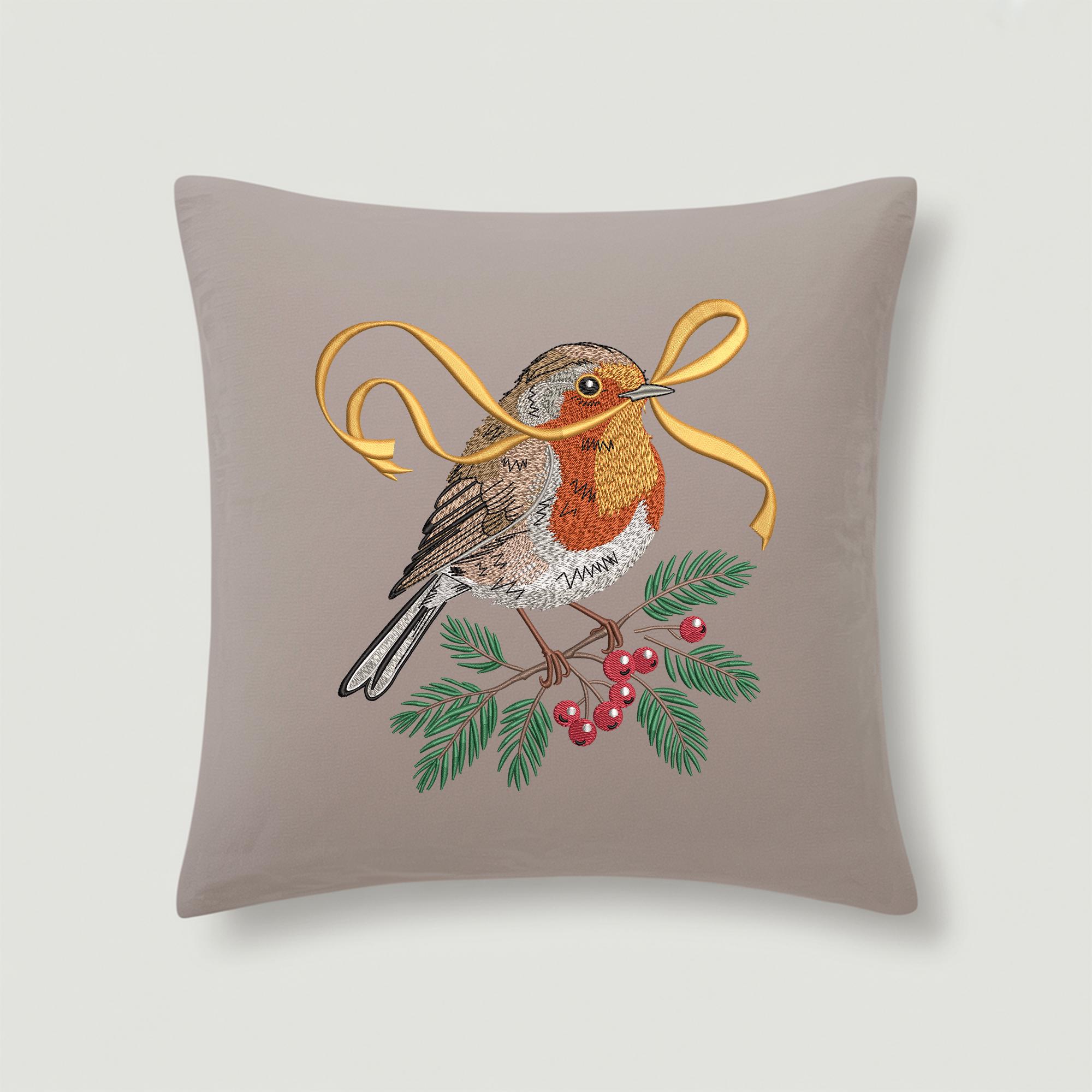 Christmas Sparrow Bird Embroidery Design | Holiday Bird Machine Embroidery Pattern