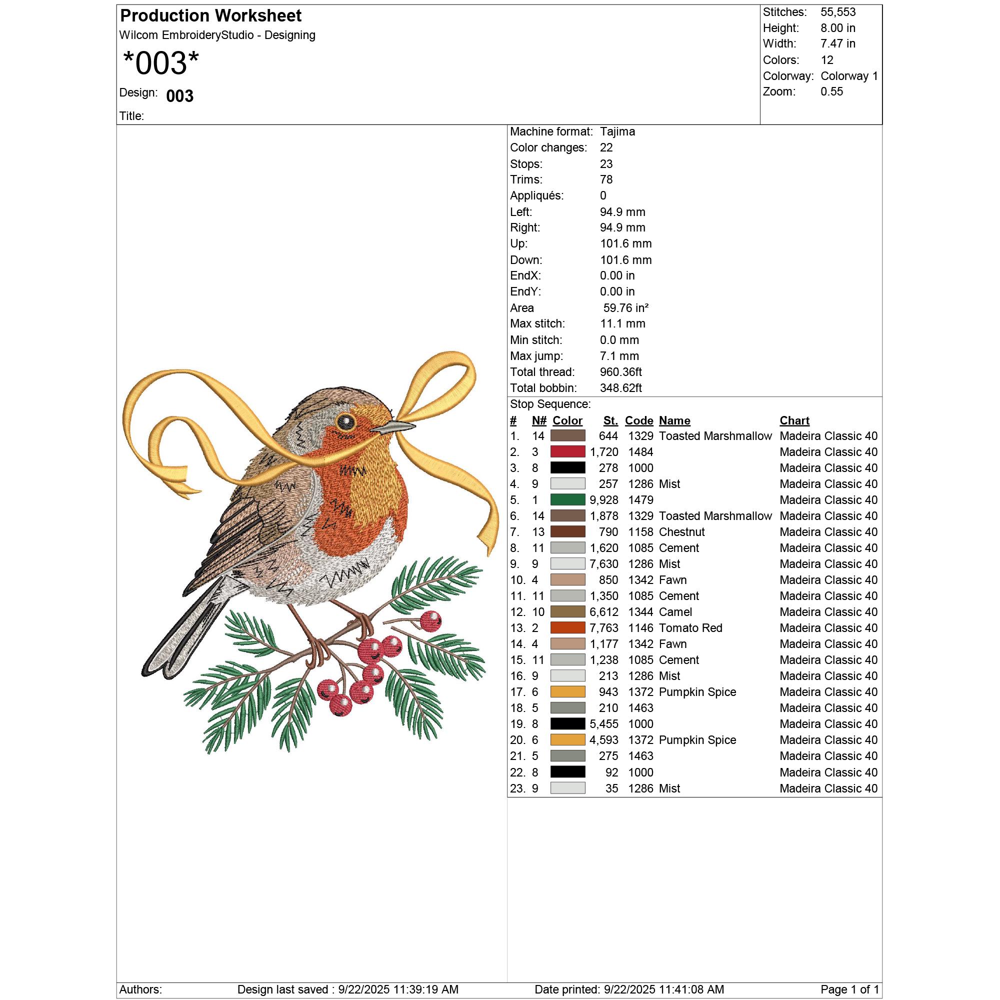 003 – 55,553 stitches | Size: 8.00 in x 7.47 in (20.3 cm x 19.0 cm / 203 mm x 190 mm) | 12 colors