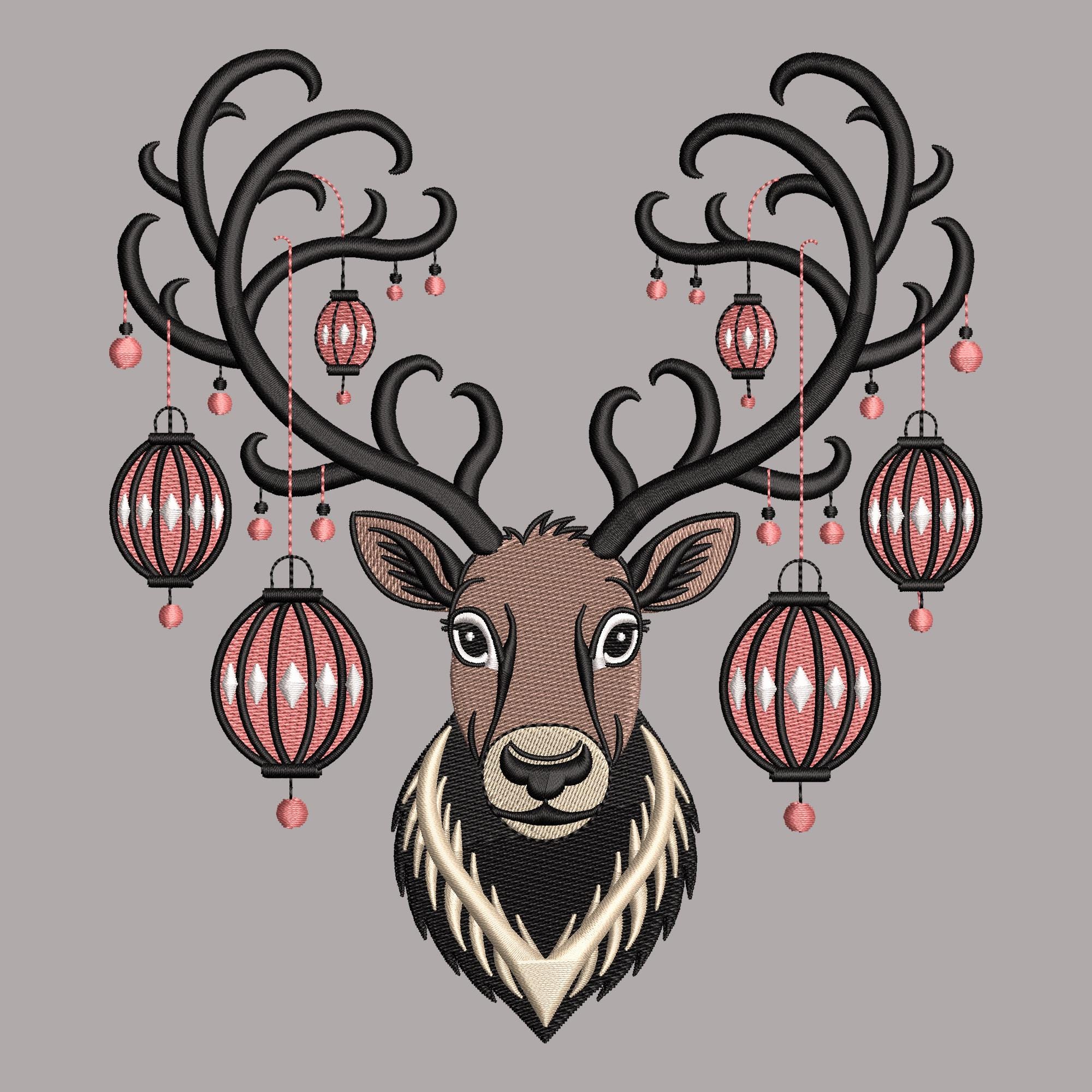 Christmas Reindeer Embroidery Design : Holiday Machine Embroidery Pattern