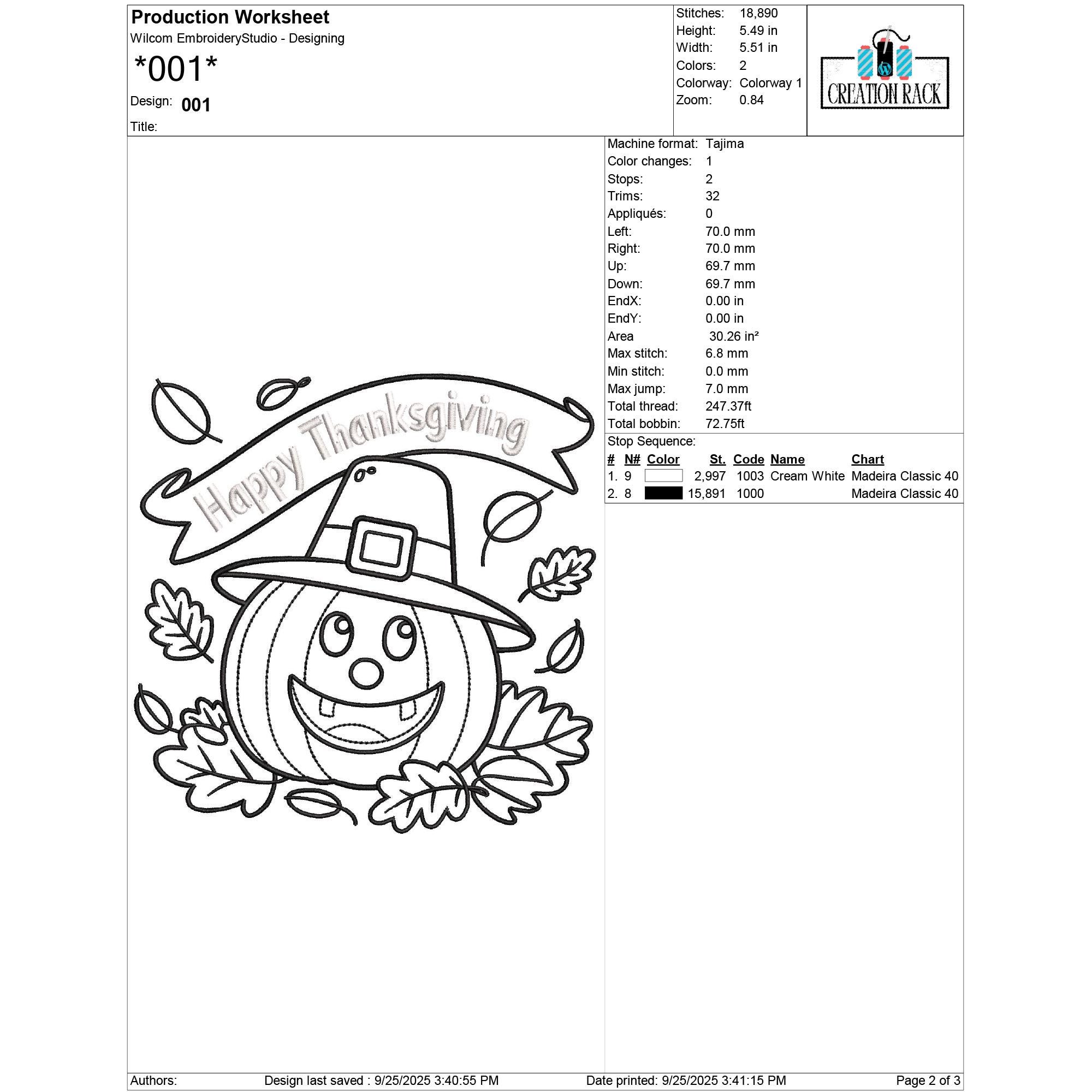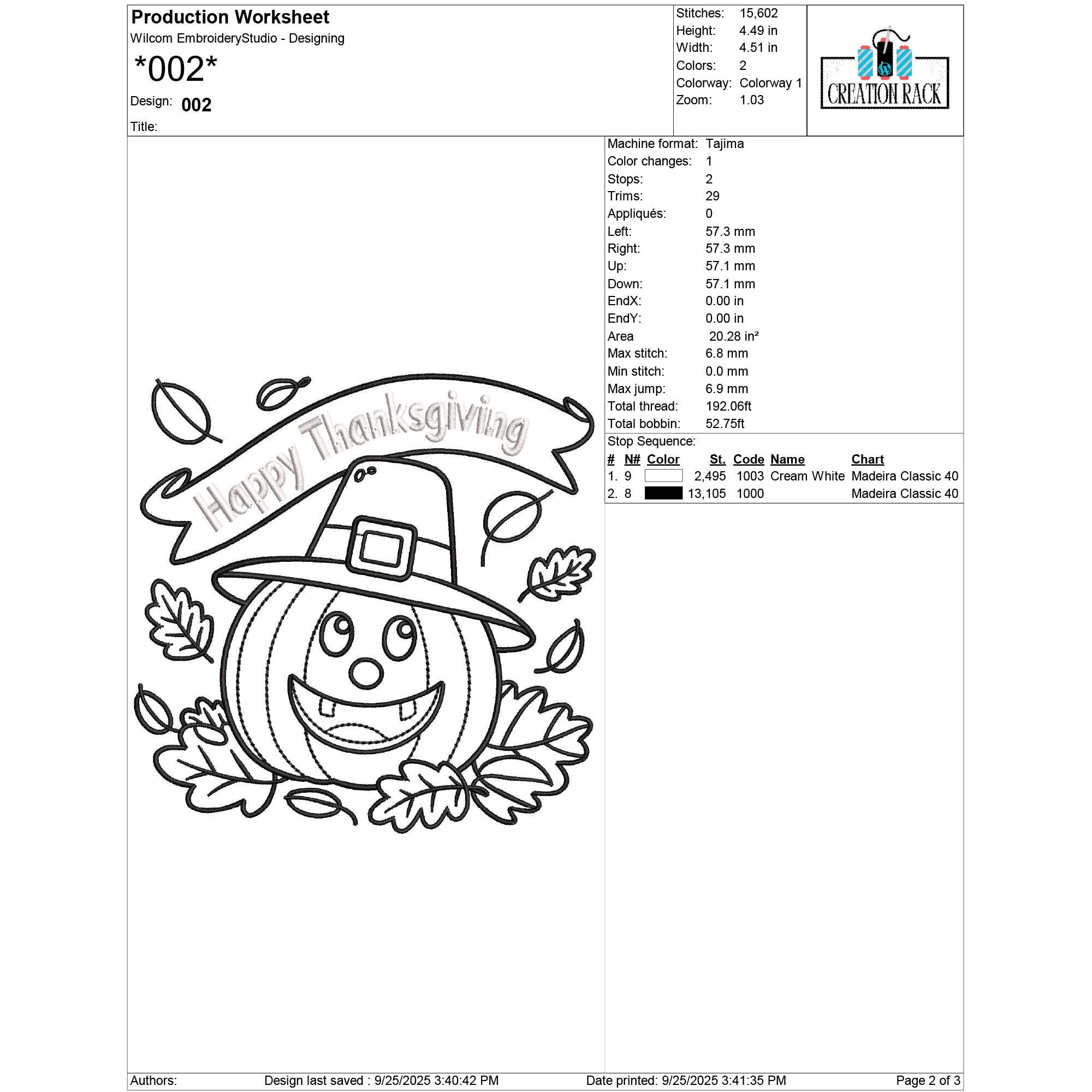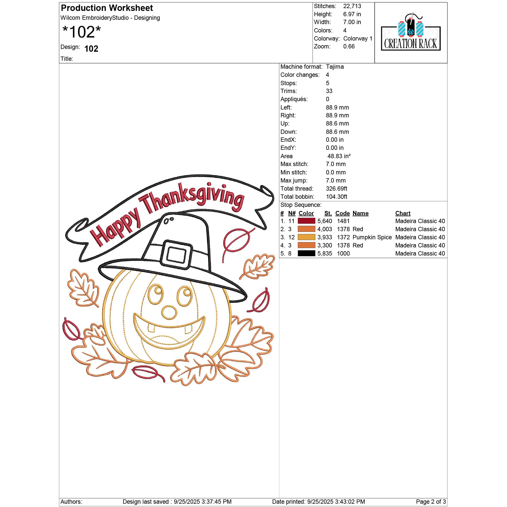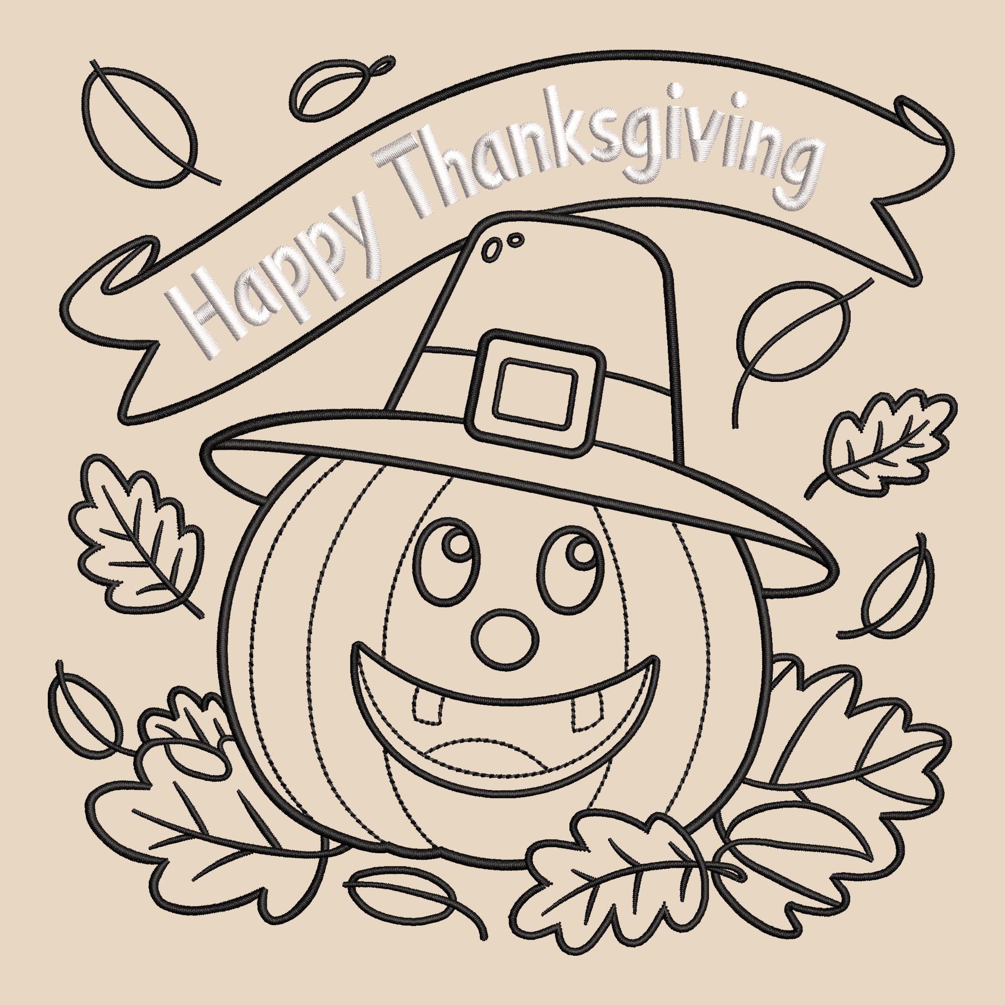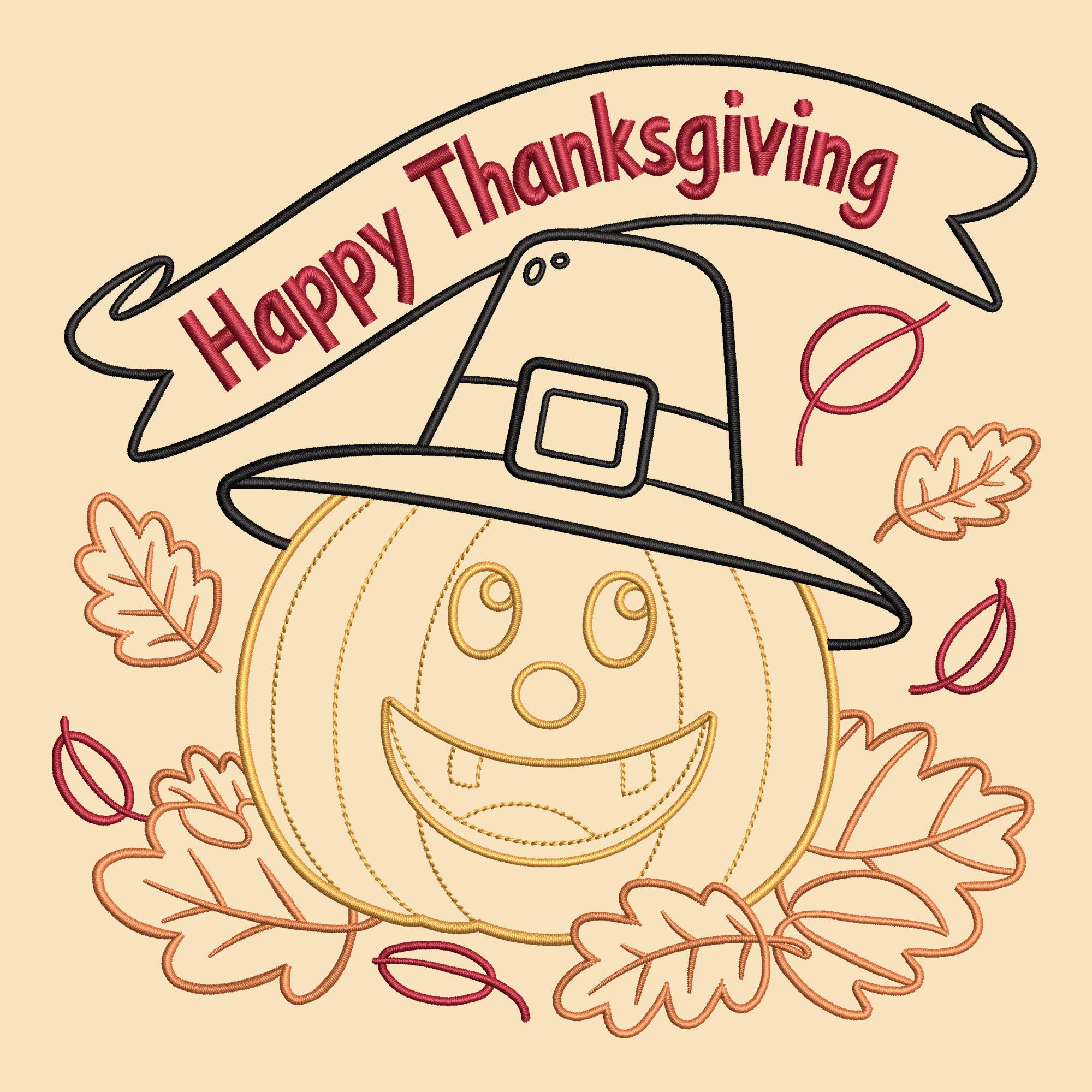Happy Thanksgiving Pumpkin Embroidery Design : Fall Harvest Machine Embroidery Pattern for Autumn Décor