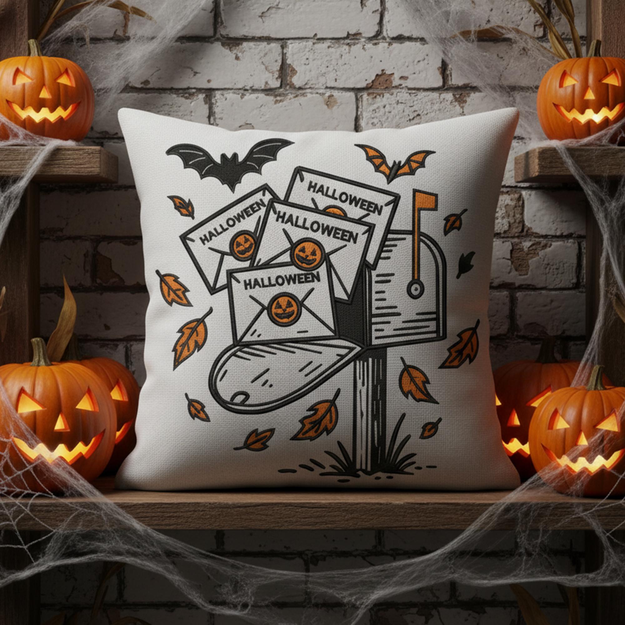 Bring a touch of spooky charm to your projects with this Halloween Bats Mailbox Embroidery Design, perfect for fall embroidery crafts, festive home décor, and unique Halloween gifts. Featuring a mailbox surrounded by bats, this design captures the playful yet eerie spirit of the season.