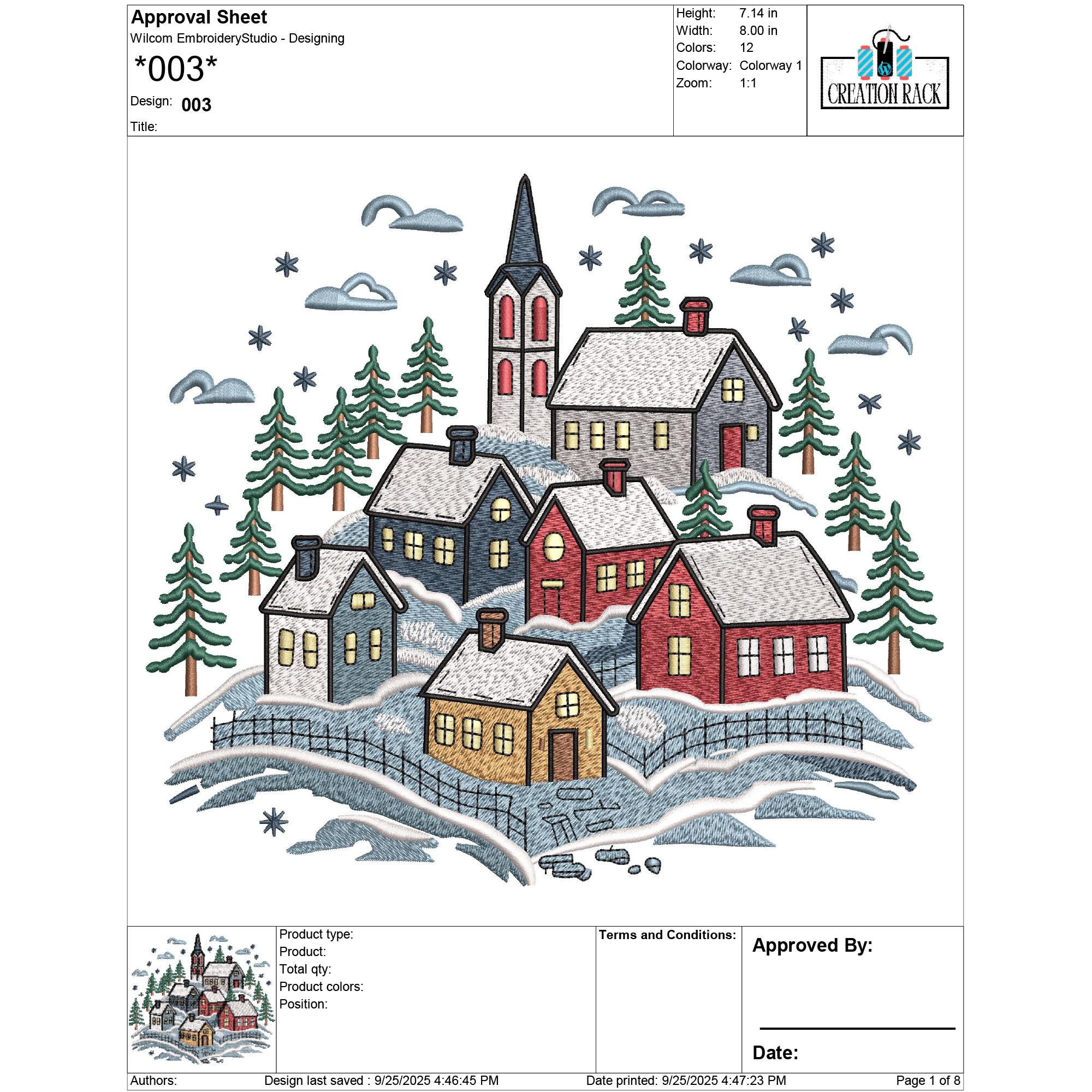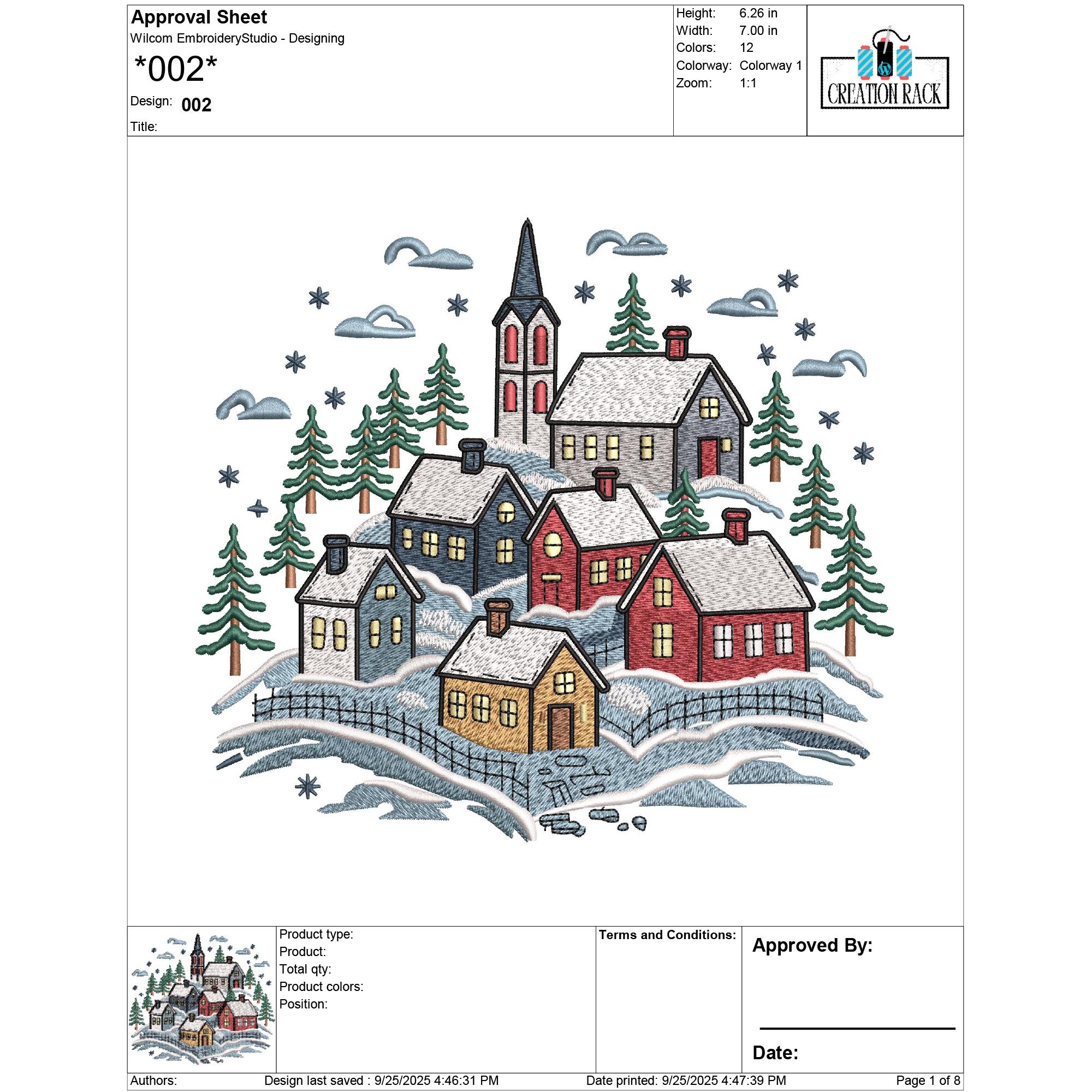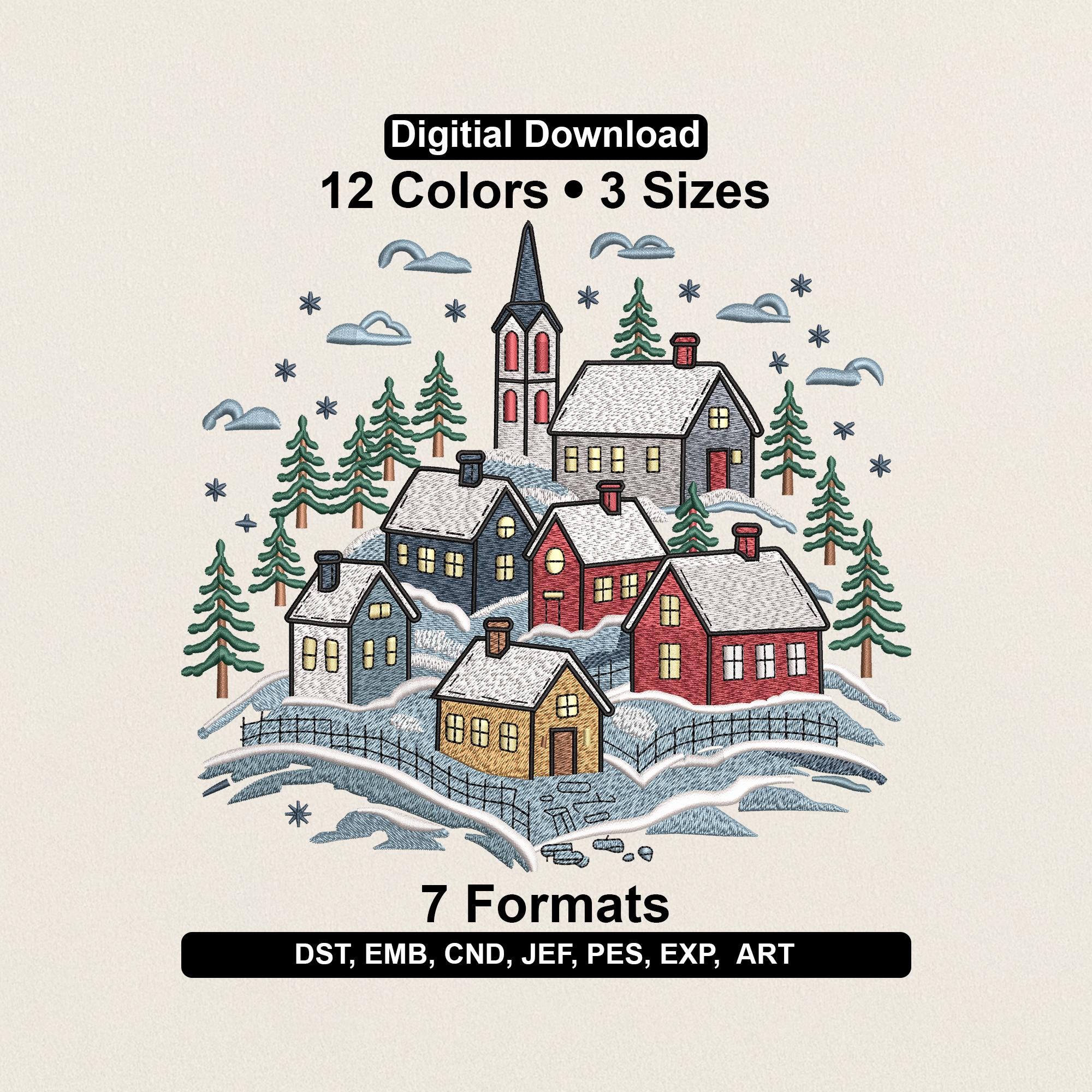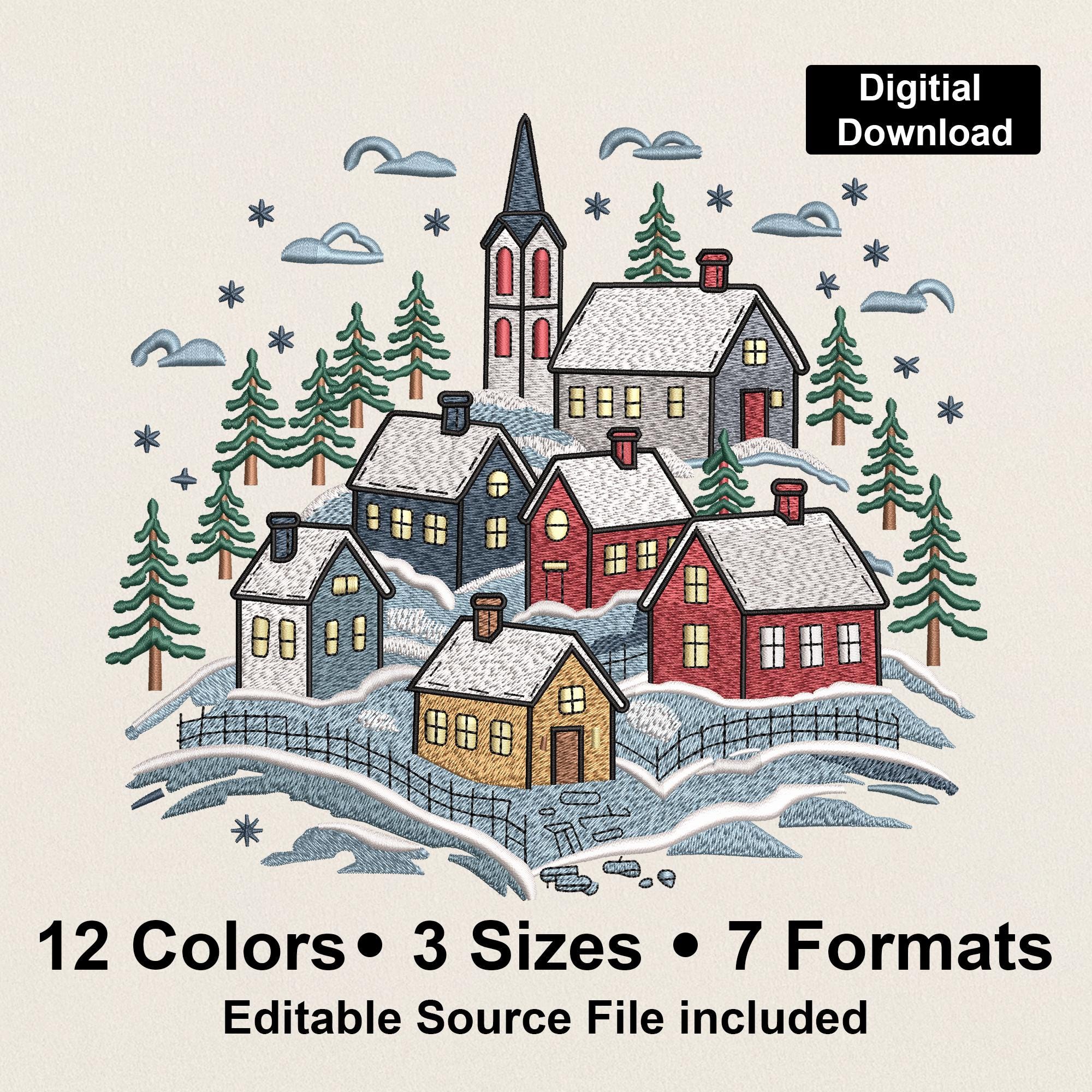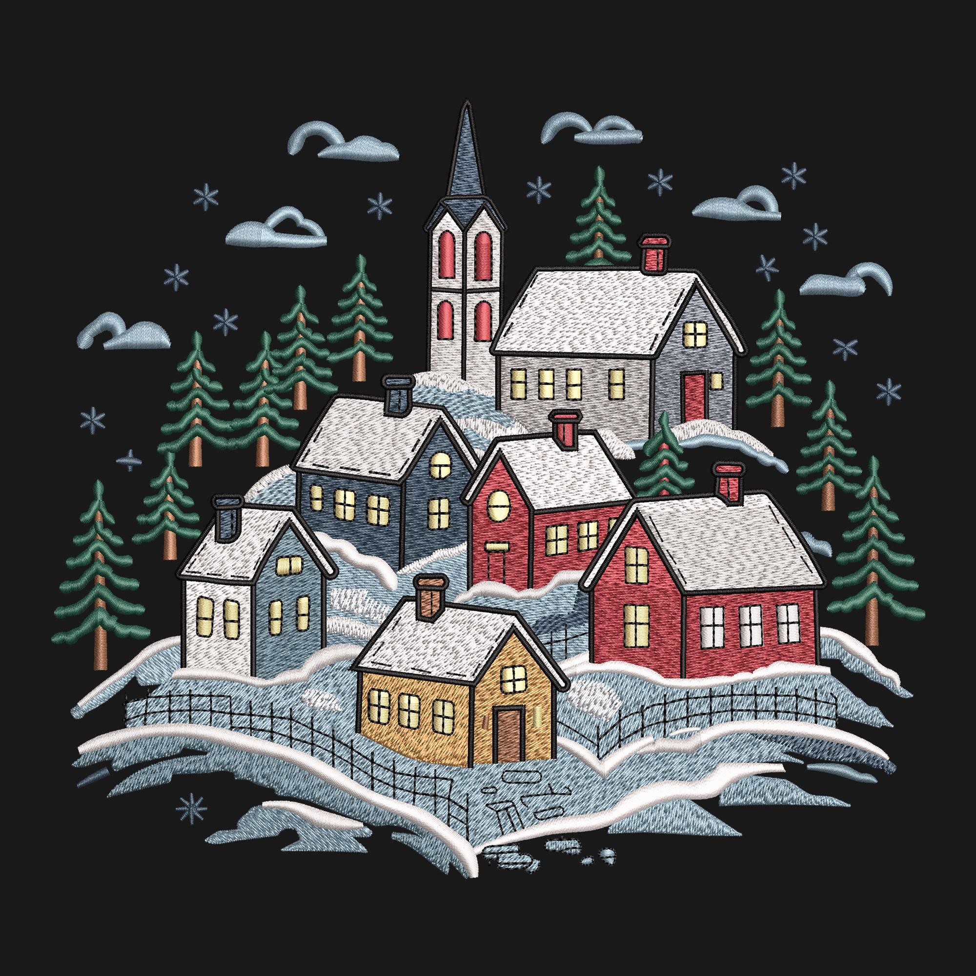 Create a warm and festive holiday scene with this Christmas Village and House Embroidery Design, perfect for Christmas crafts, winter décor, and handmade gifts. Featuring a cozy snow-covered village and charming houses, this embroidery design is ideal for adding seasonal magic to your projects.
