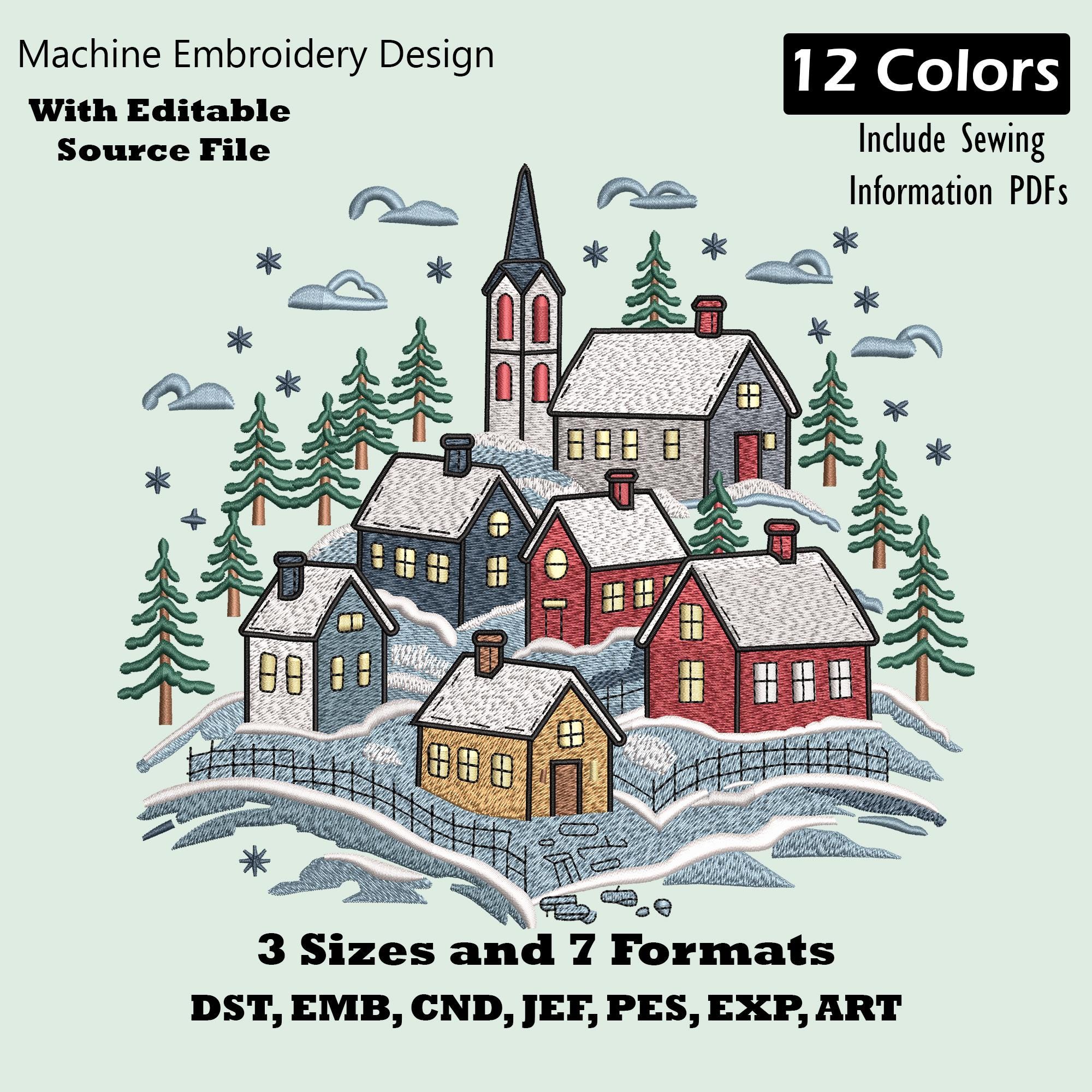 Christmas Village and House Embroidery Design : Festive Winter Machine Embroidery Pattern for Holiday Décor