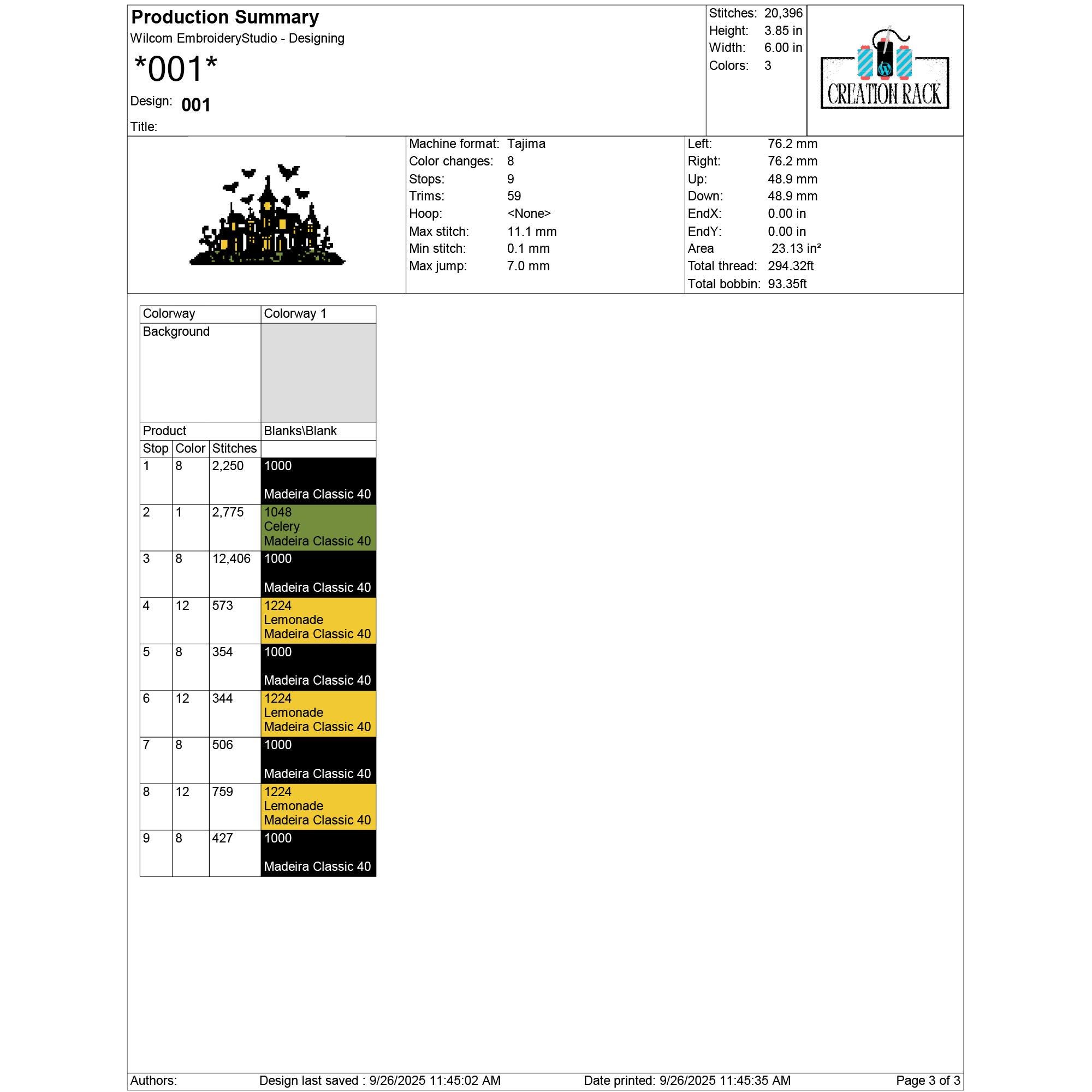 001 – 20,396 stitches | Size: 3.85 in x 6.00 in (9.8 cm x 15.2 cm / 98 mm x 152 mm) | 3 colors