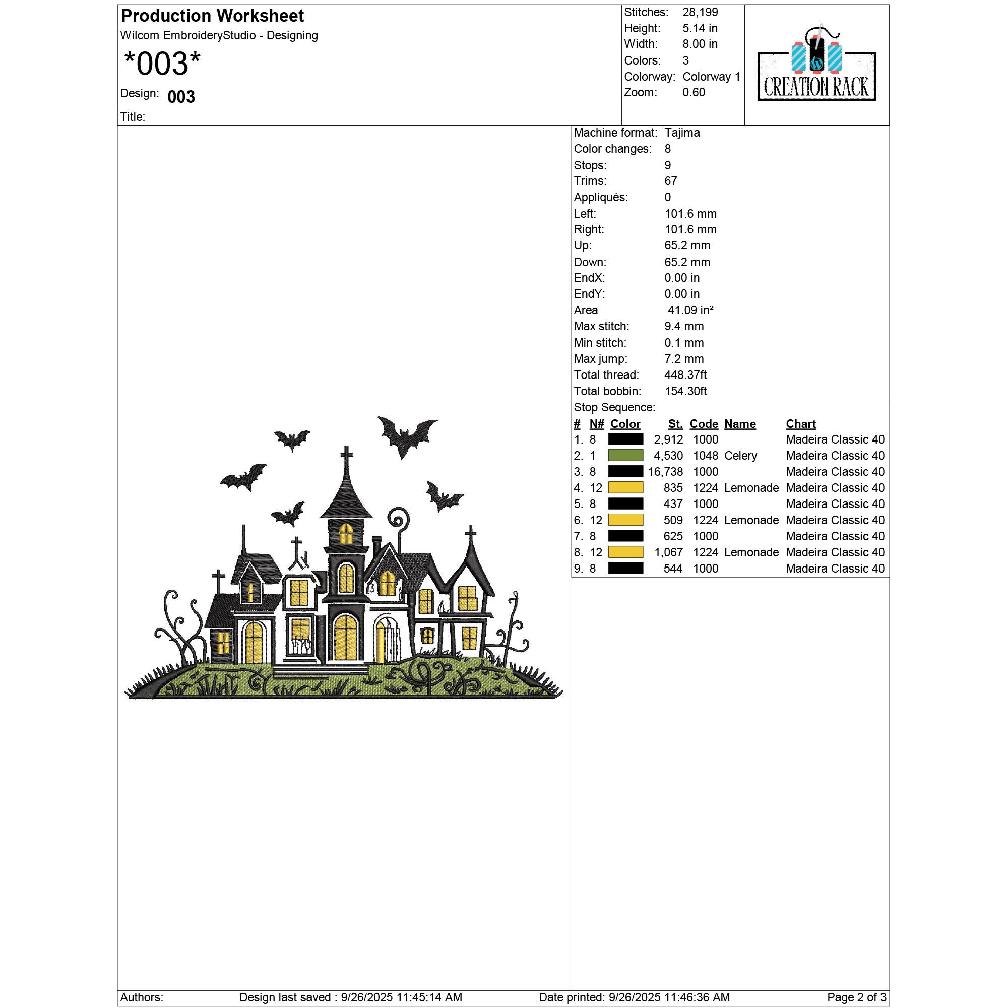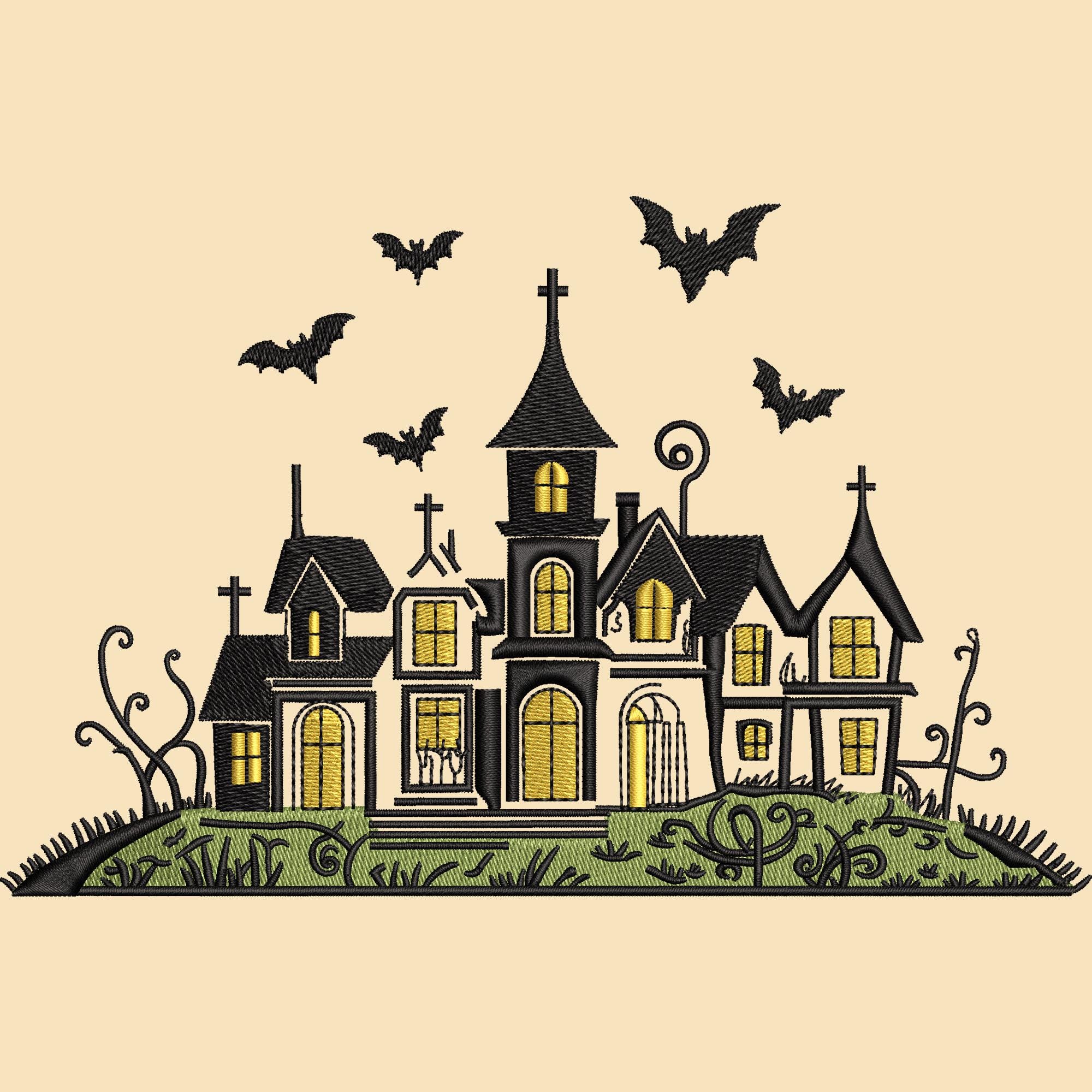 Halloween Haunted Castle Embroidery Design : Spooky Gothic Machine Embroidery Pattern for Halloween Décor