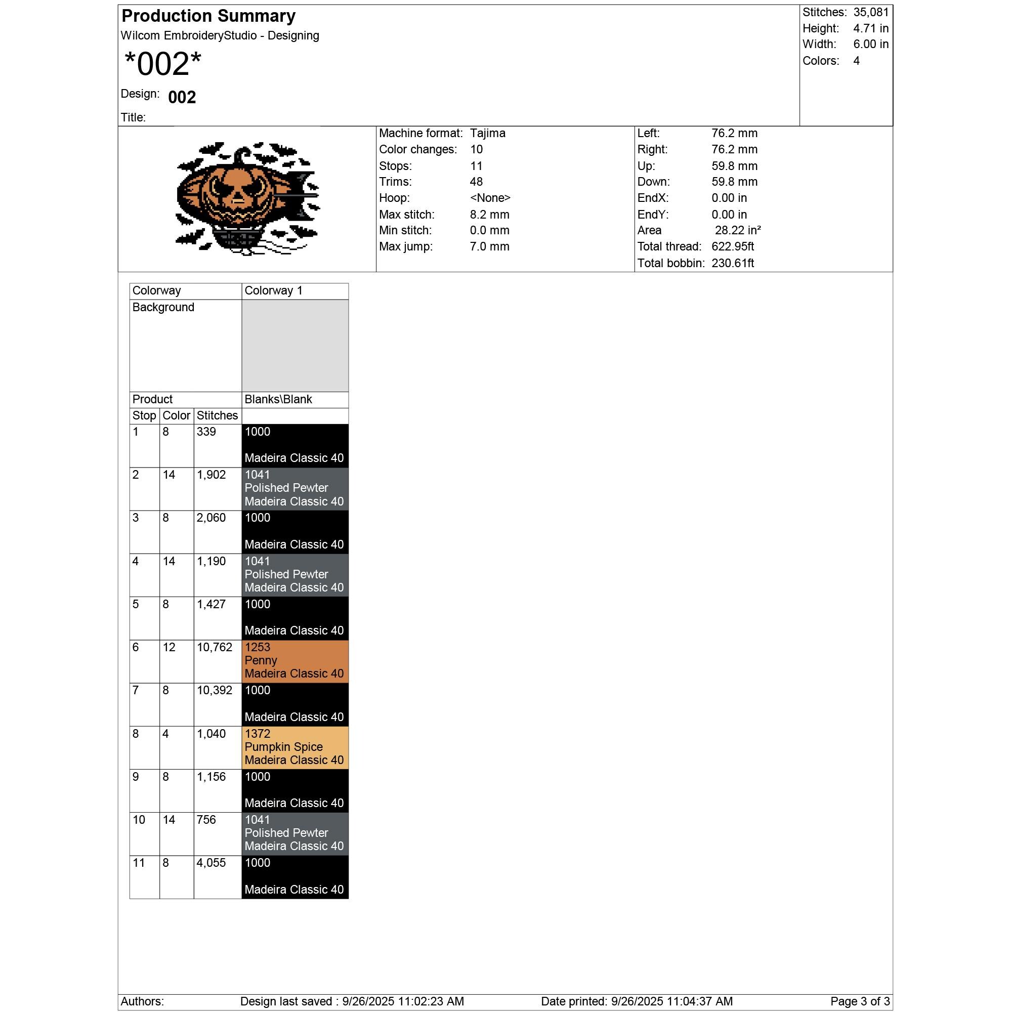 003 – 43,043 stitches | Size: 5.49 in x 7.00 in (13.94 cm x 17.78 cm / 139 mm x 178 mm) | 4 colors