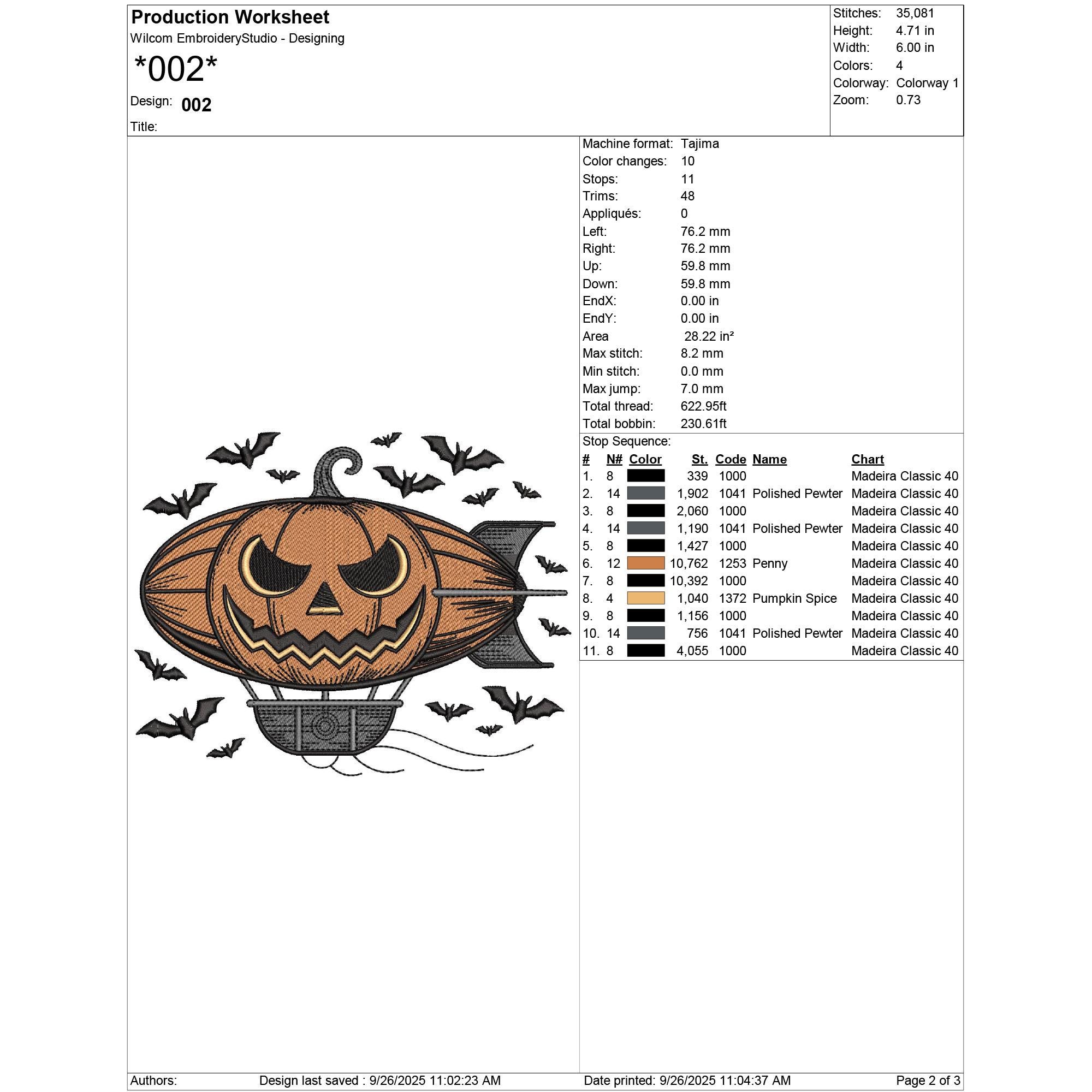 ✨ Add this Pumpkin Airship Halloween Embroidery Design to your digital collection and bring a spooky, magical twist to your Halloween creations!