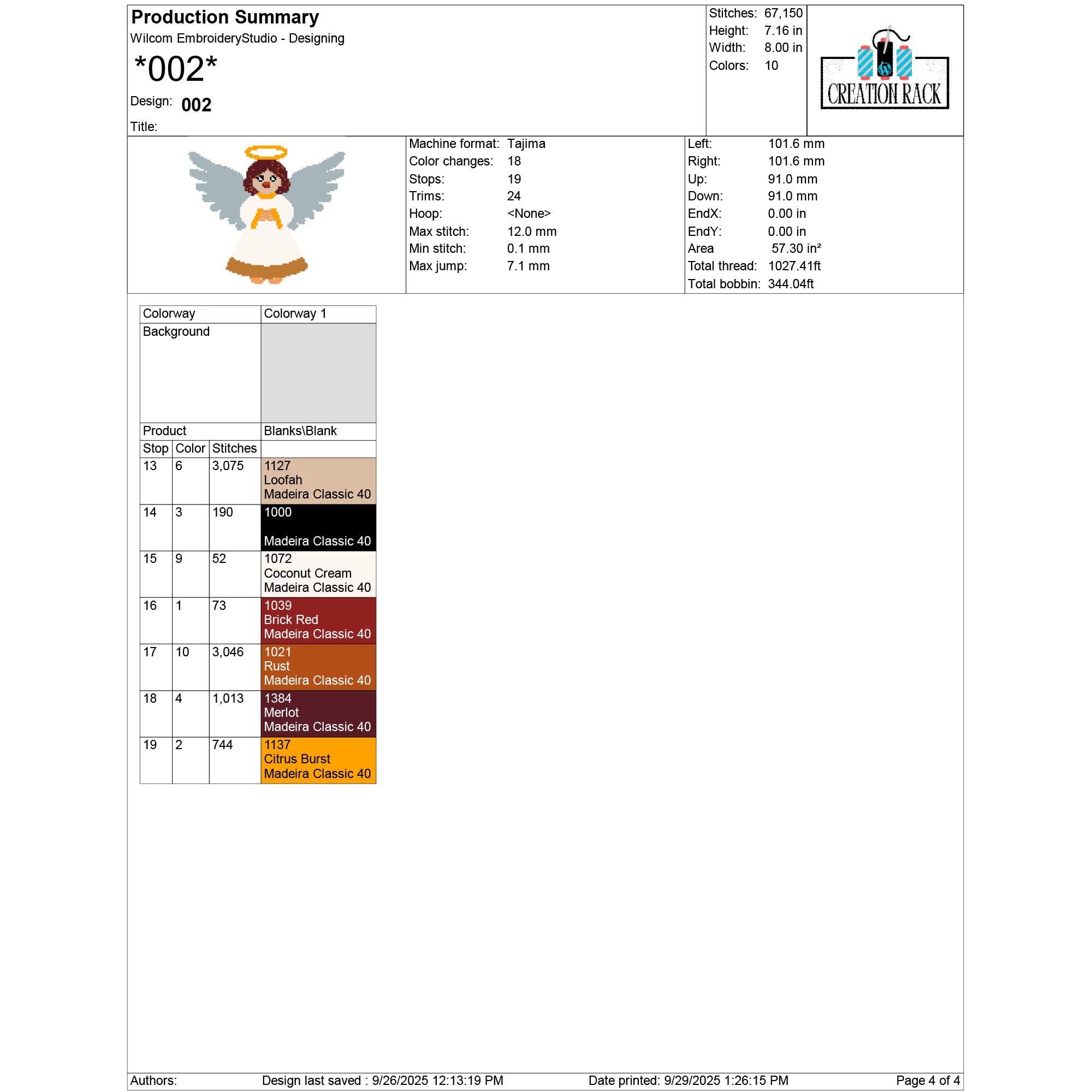 File 003: 35,634 stitches – 4.48 in x 5.01 in (11.37 cm x 12.73 cm) – 10 colors