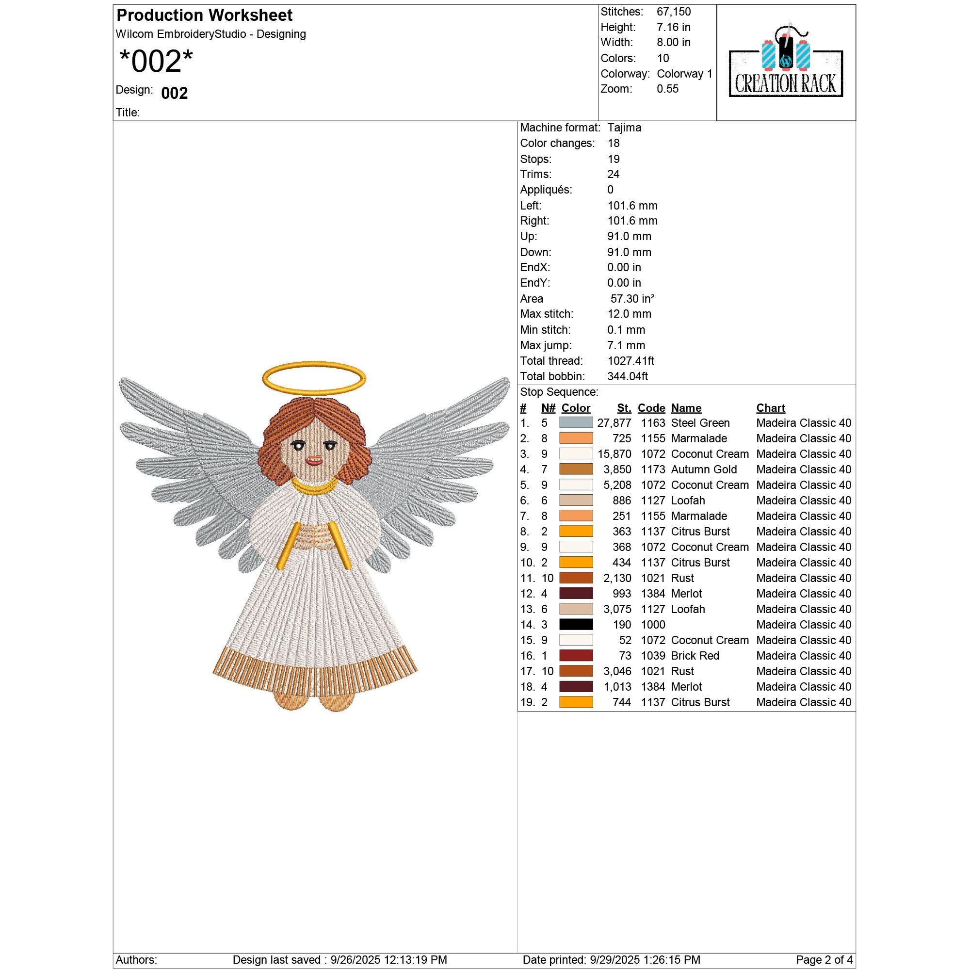File 002: 67,150 stitches – 7.16 in x 8.00 in (18.19 cm x 20.32 cm) – 10 colors