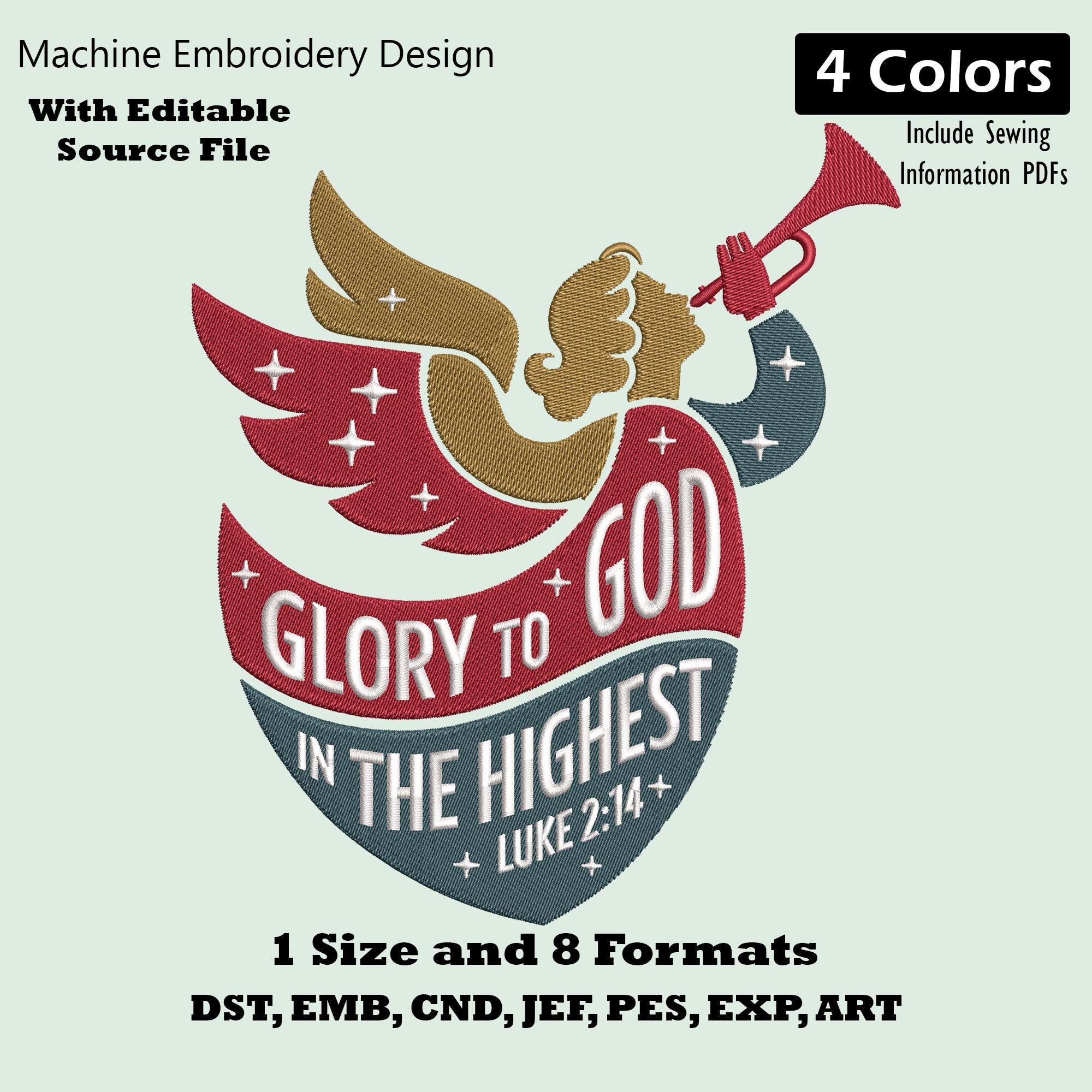 Angel with Trumpet Embroidery Design | Religious Christmas Angel Machine Embroidery File PES DST