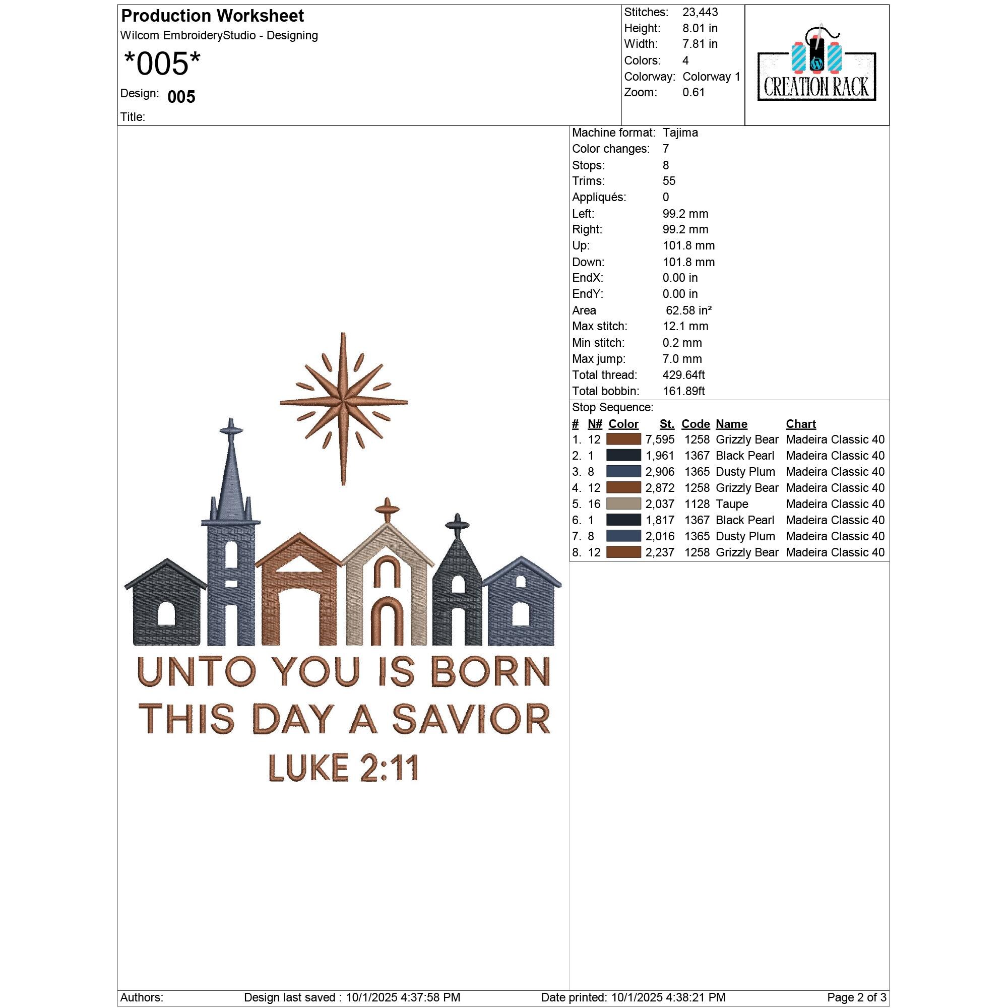 Celebrate the true spirit of the season with this Christmas Nativity Village Embroidery Design. Perfect for holiday quilts, festive home décor, Christmas ornaments, church projects, and gifts, this timeless design brings the nativity scene to life with elegant stitching.