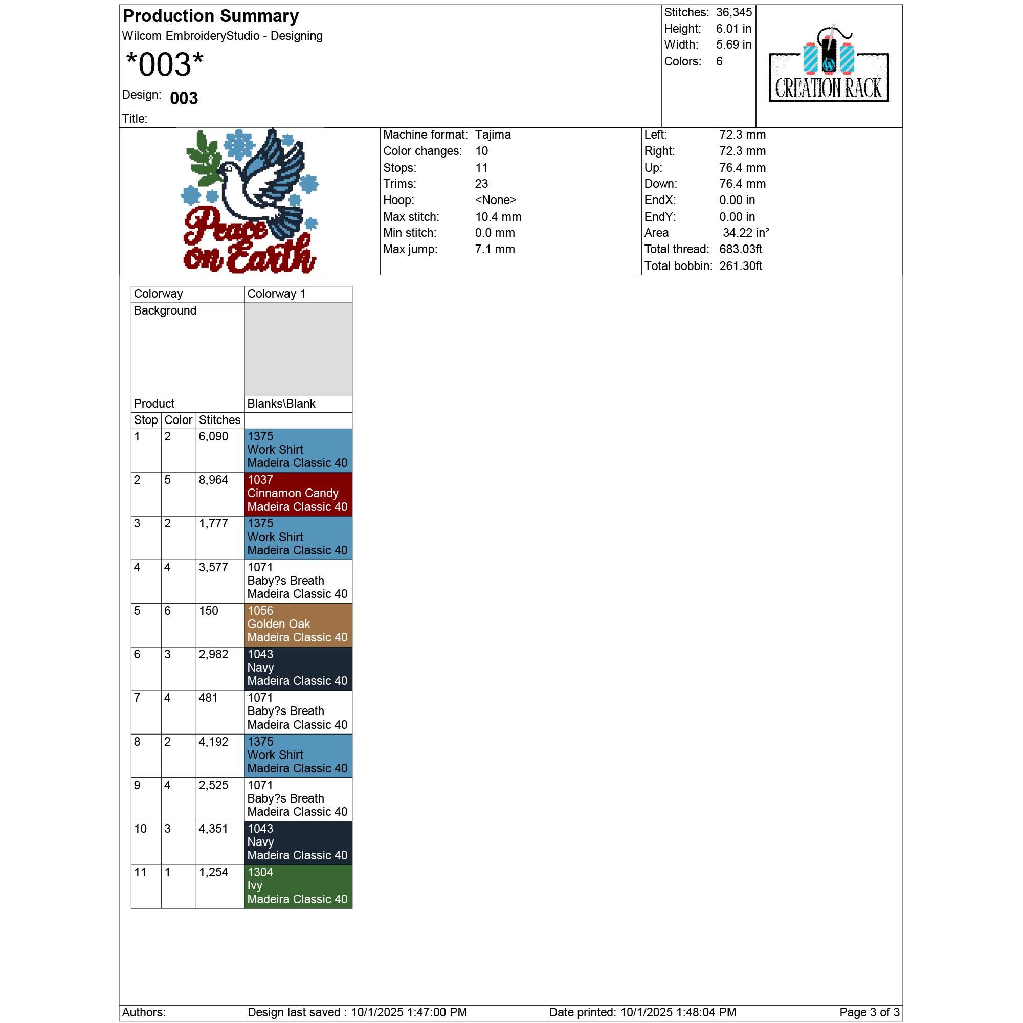 003: 36,345 stitches | 6.01 in (15.2 cm) x 5.69 in (14.5 cm) | 6 colors