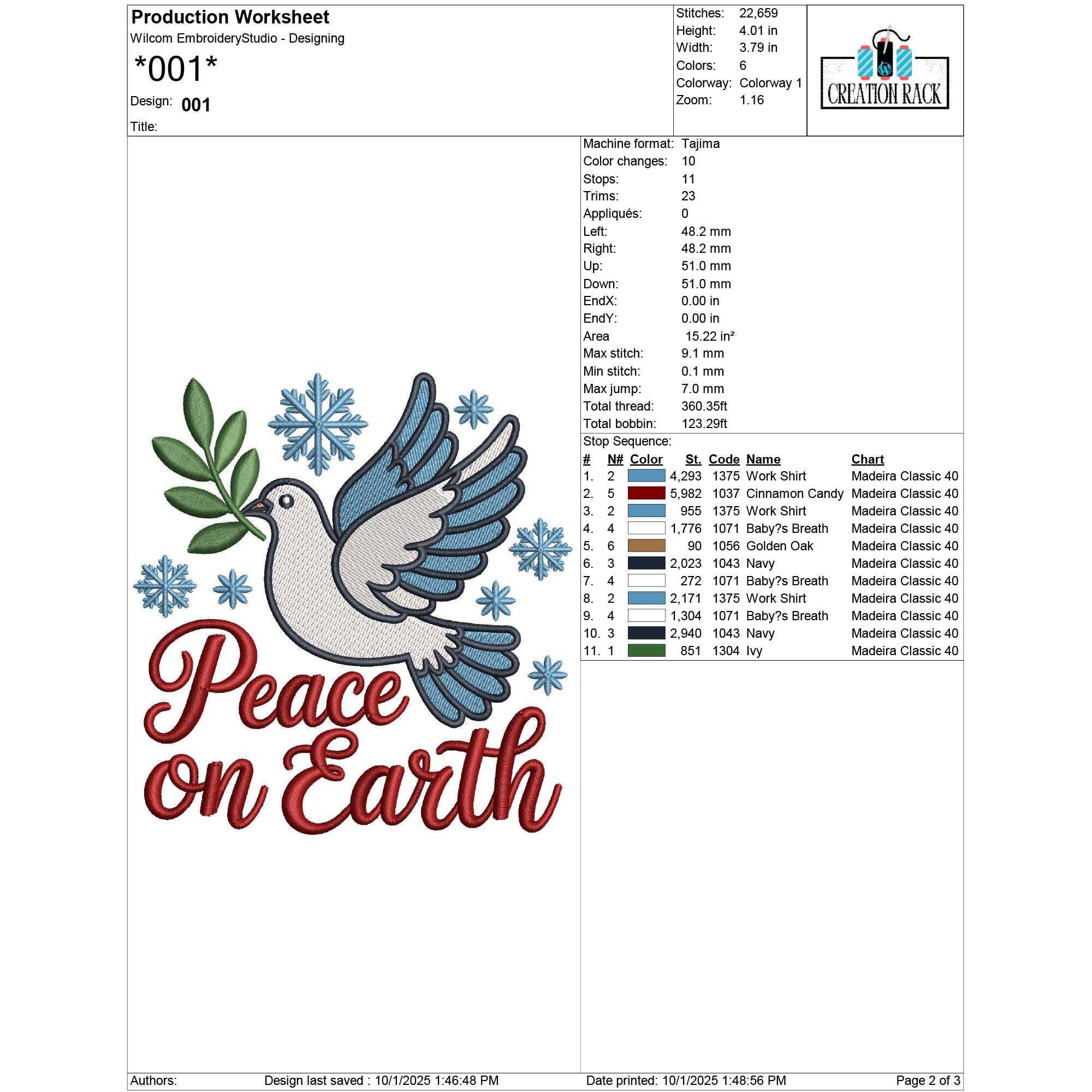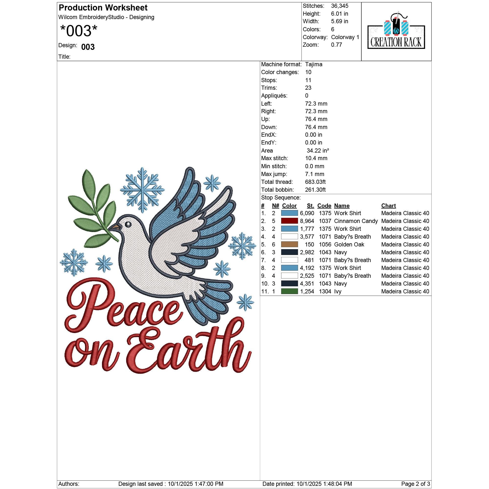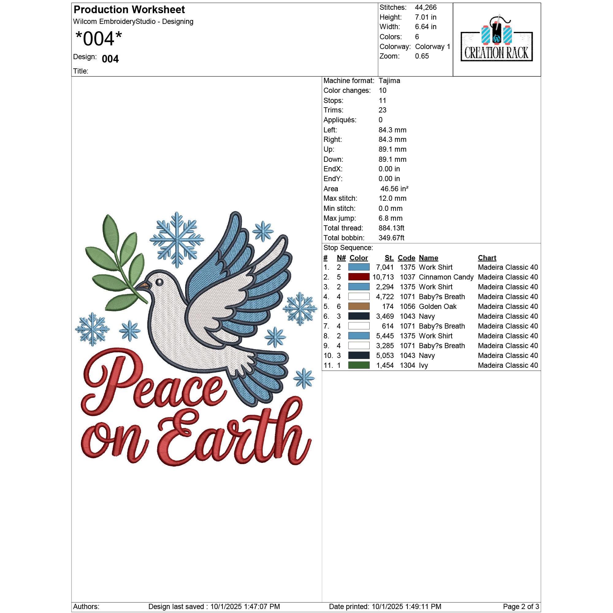 This Peace on Earth embroidery file is professionally digitized for smooth stitching and compatible with most embroidery machines. Add a meaningful design to your Christmas embroidery collection this season.
