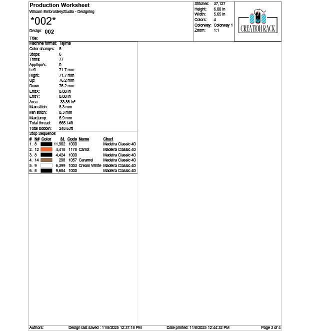 002: 37,235 stitches | 6.00 in (15.2 cm) x 5.58 in (14.1 cm) | 4 colors
