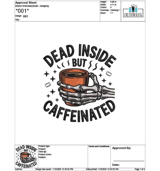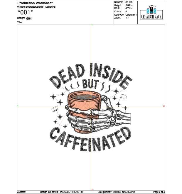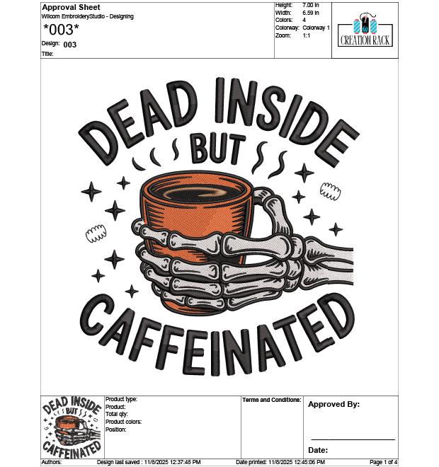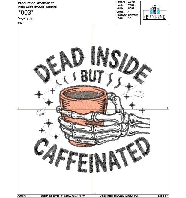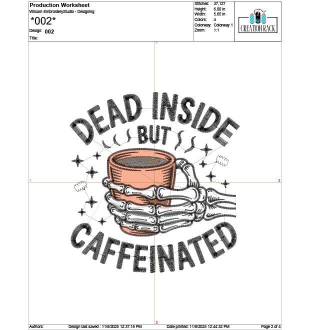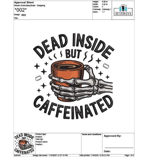 This Dead Inside embroidery file is professionally digitized for smooth stitching and is compatible with most embroidery machines. A great choice for adding spooky-funny embroidery to your Halloween collection.