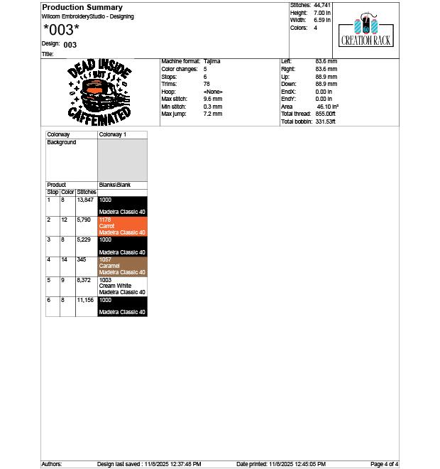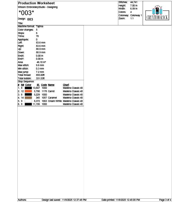 003: 44,818 stitches | 7.00 in (17.8 cm) x 6.51 in (16.5 cm) | 4 colors