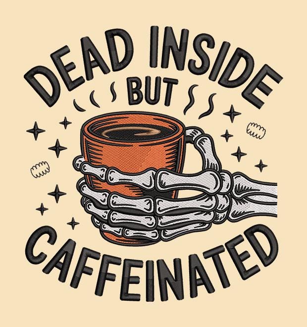 Dead Inside Skeleton Hand Halloween Embroidery Design: Funny Skull Machine Embroidery File PES DST