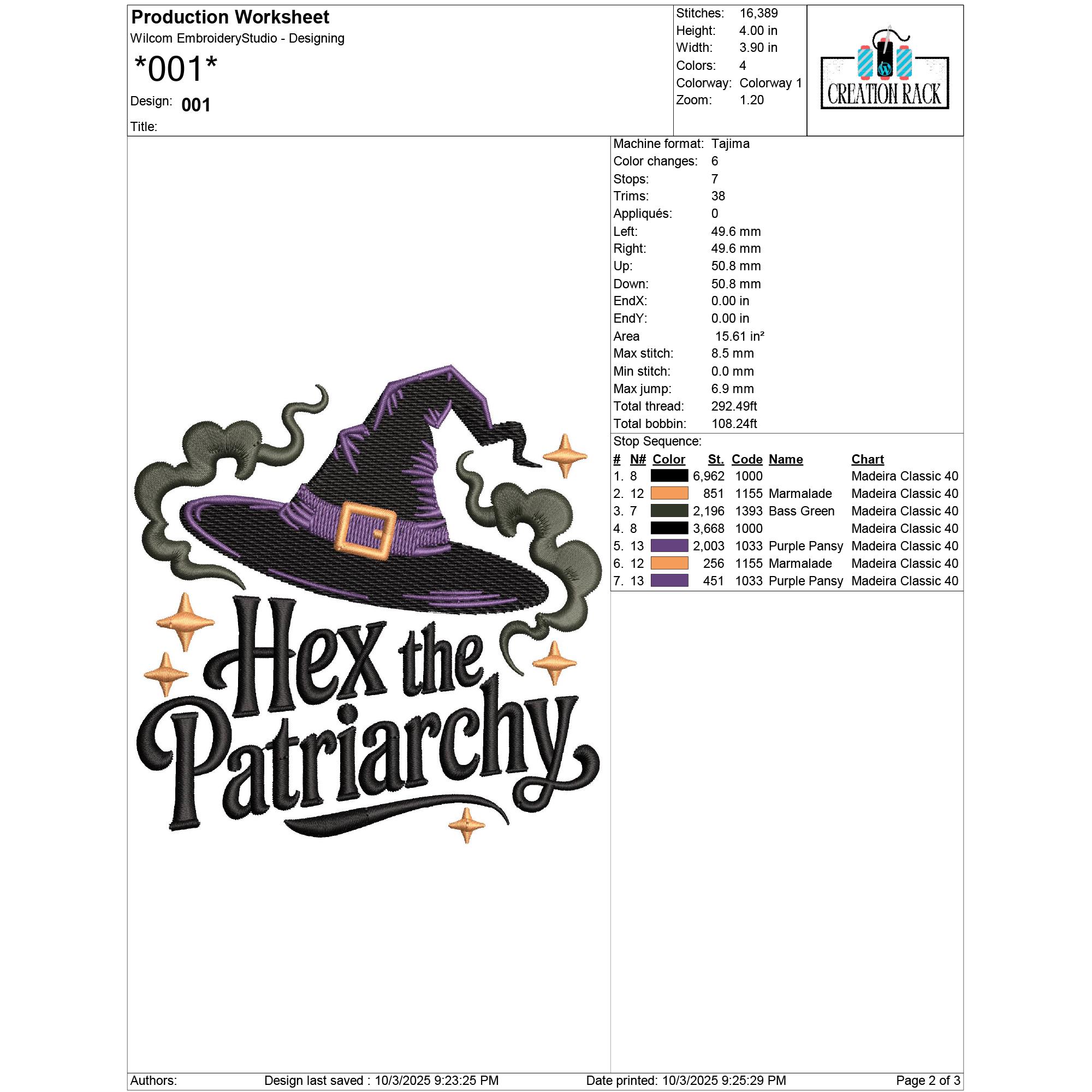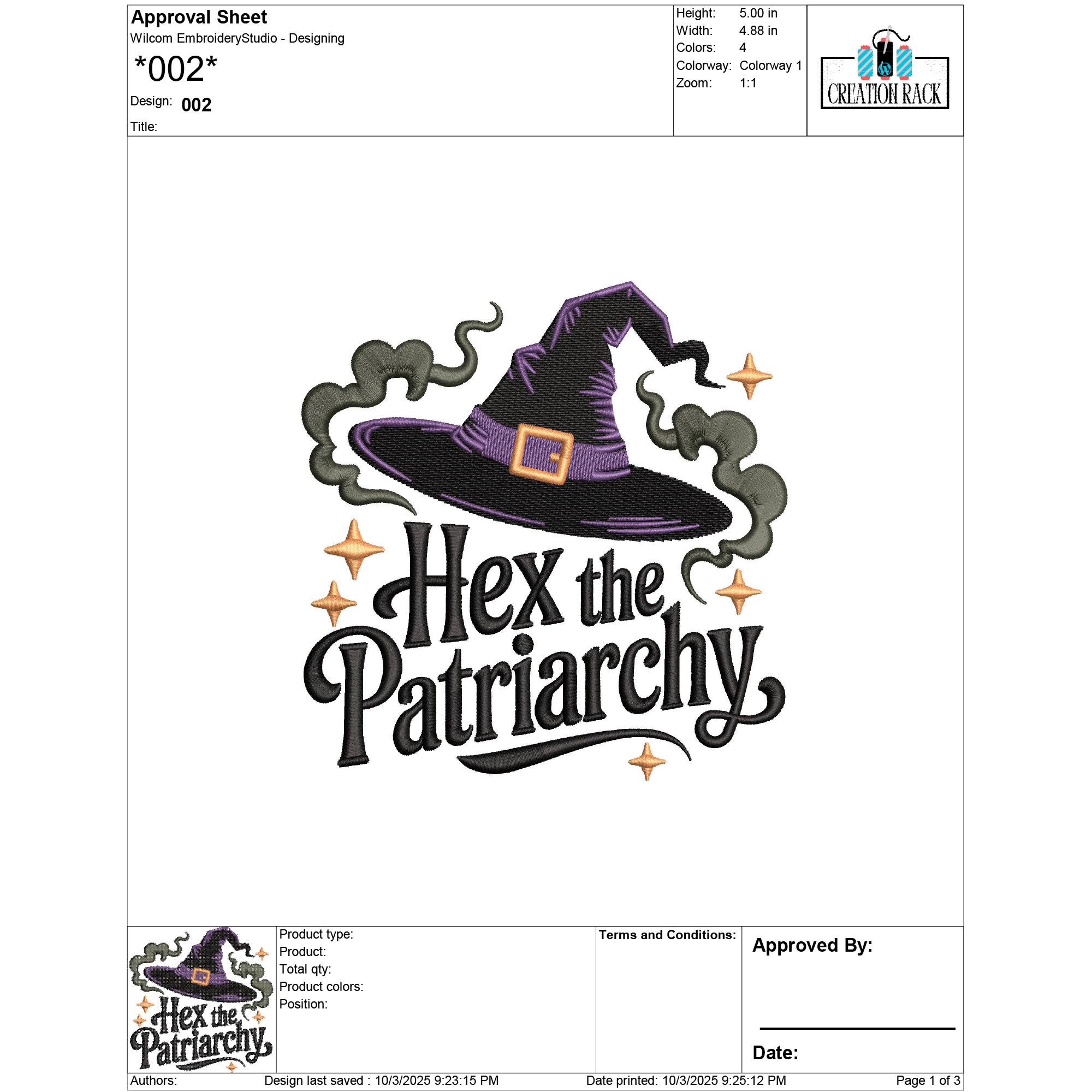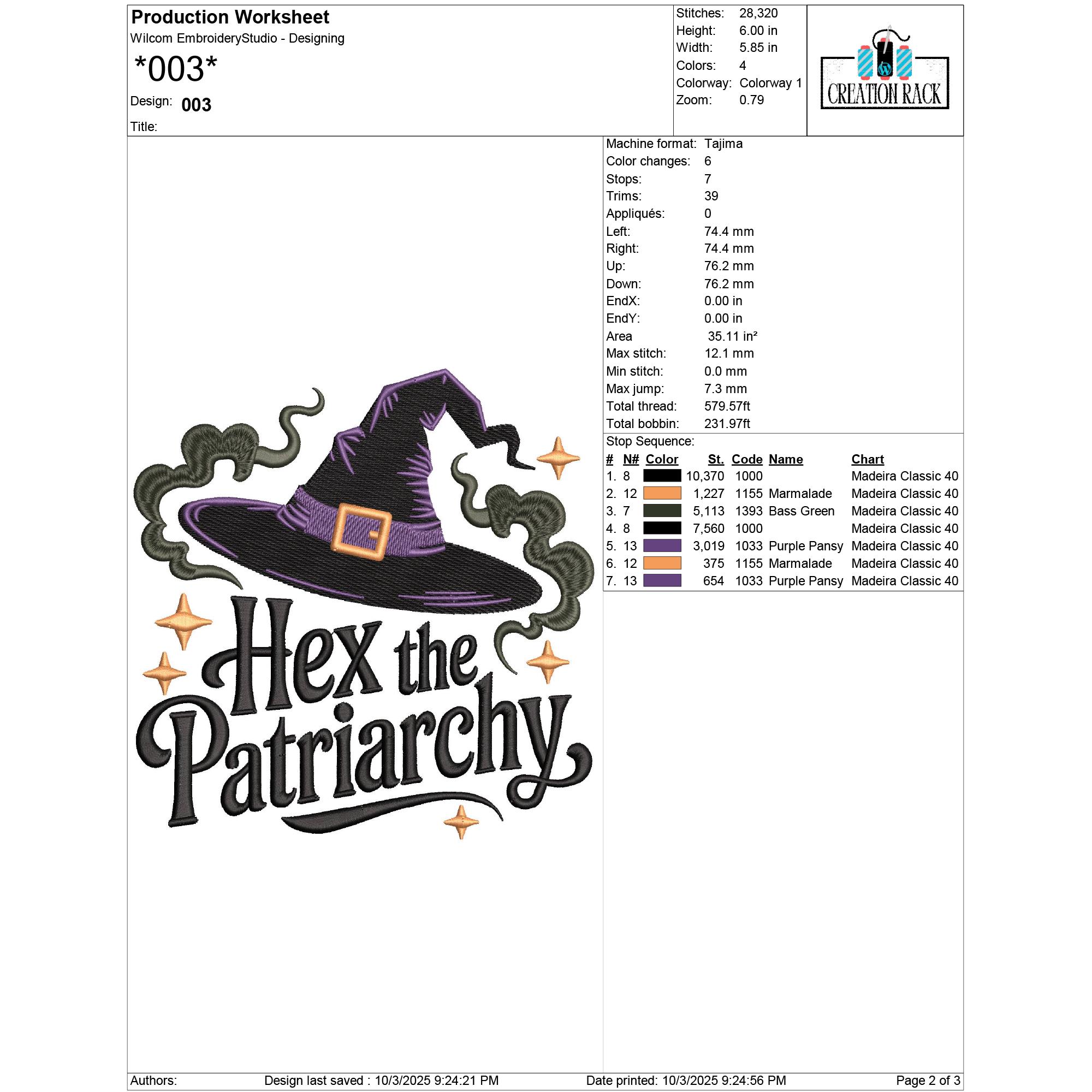 Halloween Witch Hat Hex the Patriarchy Embroidery Design: Feminist Witch Machine Embroidery File (PES DST)