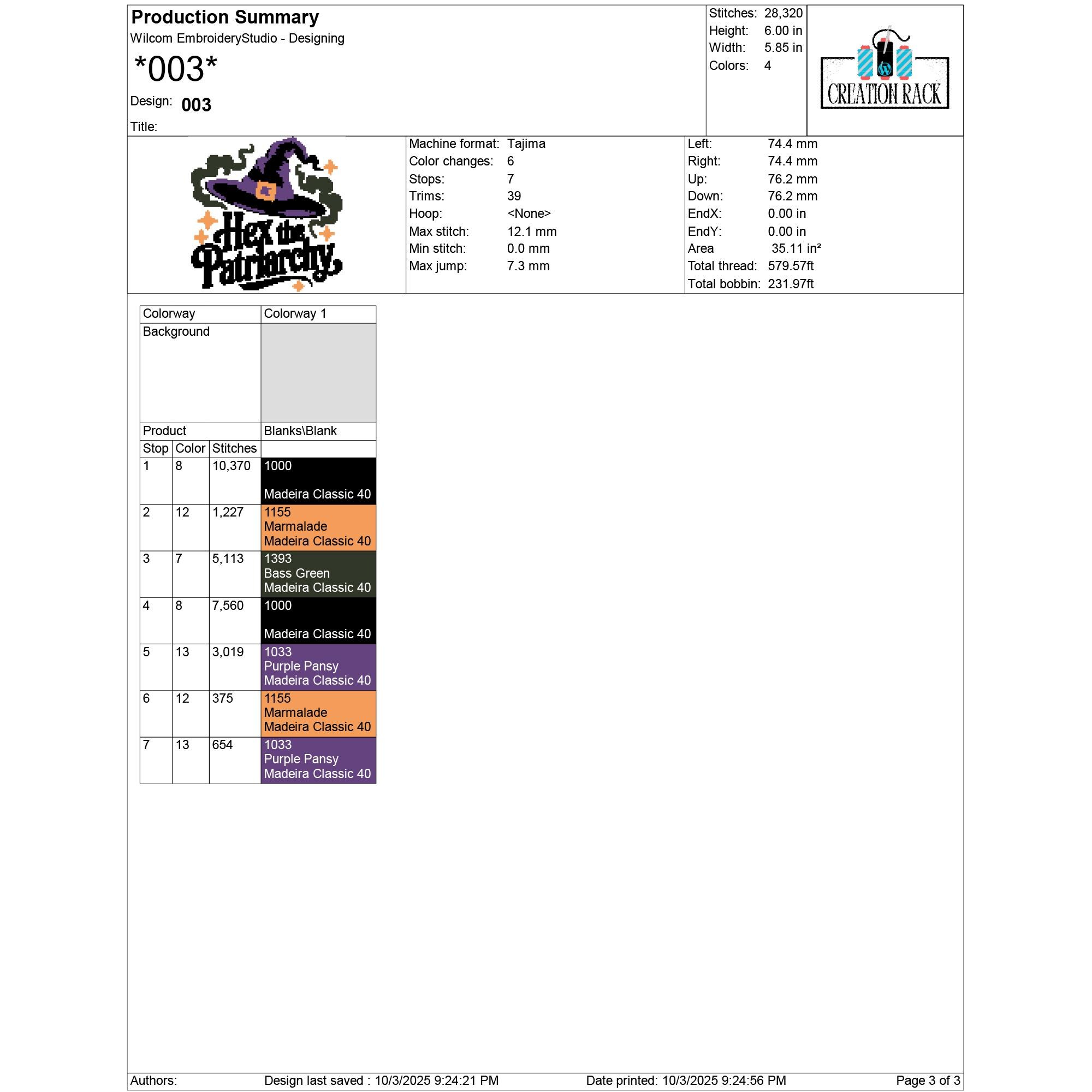 This Hex the Patriarchy embroidery design is professionally digitized for smooth stitching and comes in multiple sizes for versatility. A must-have for witchy embroidery fans and anyone who loves mixing Halloween vibes with feminist flair.