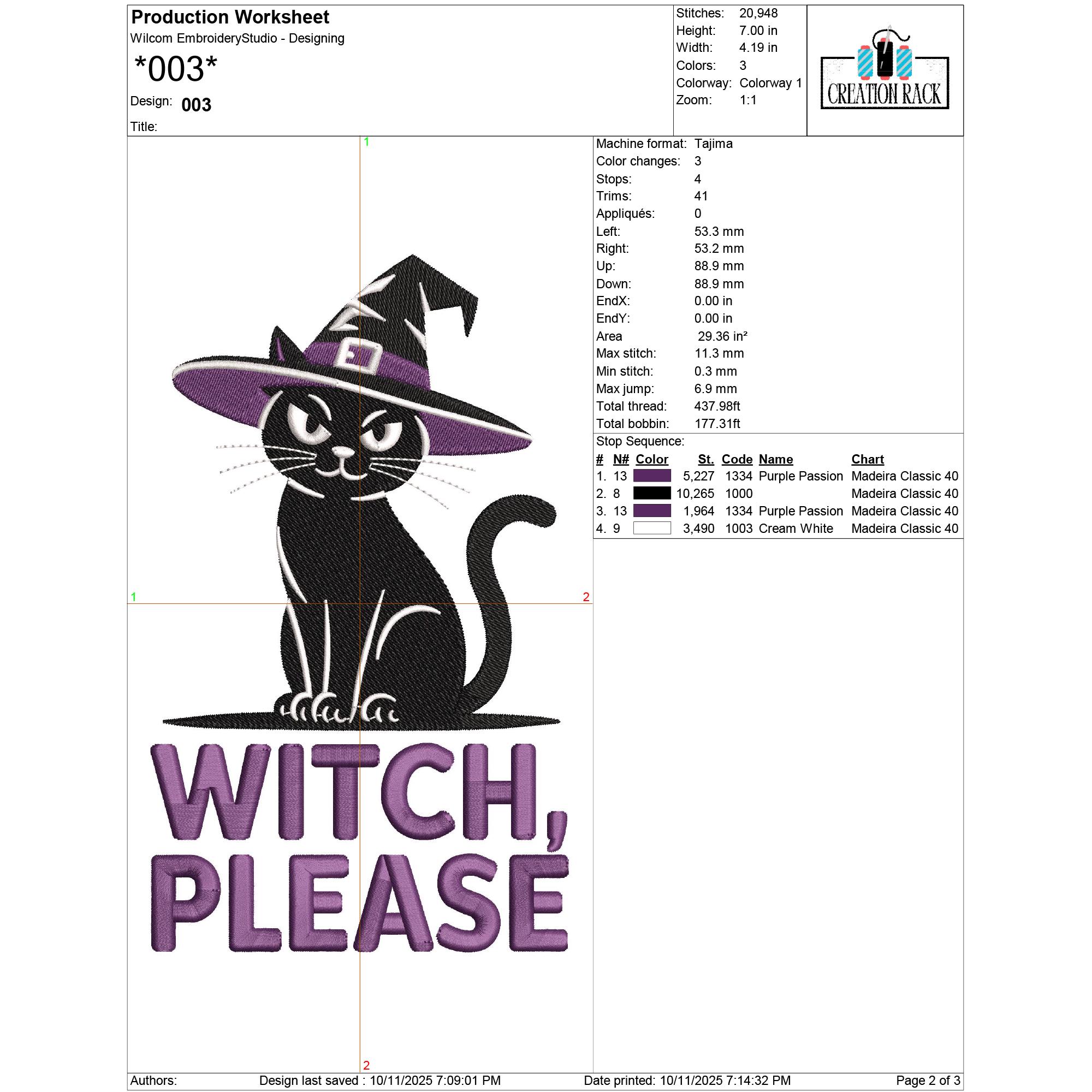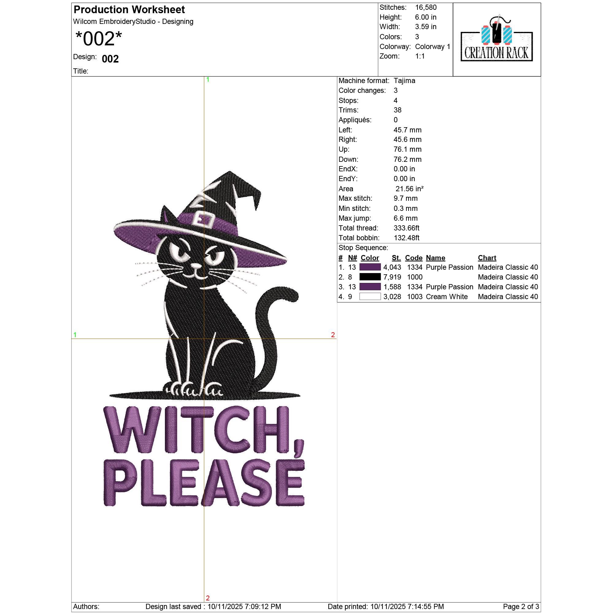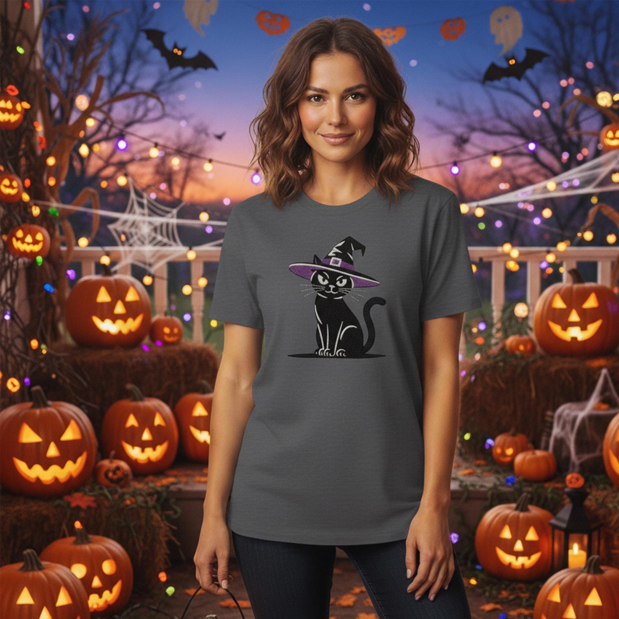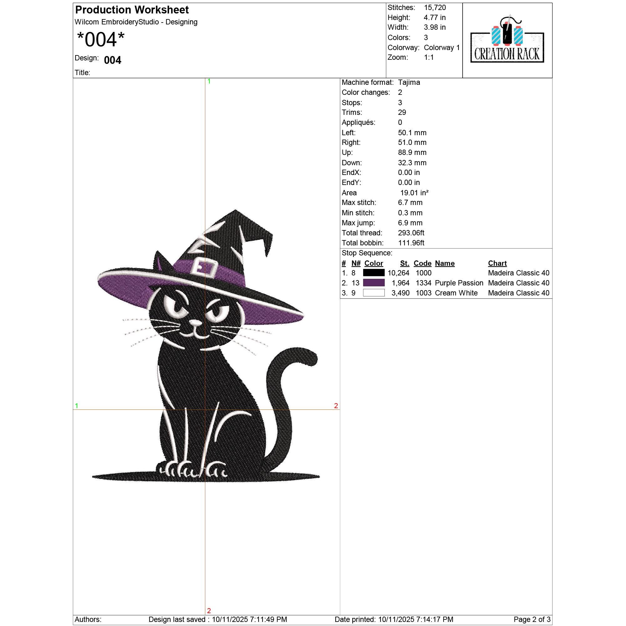 Halloween Black Cat with Witch Hat Embroidery Design: Spooky Cat Machine Embroidery File