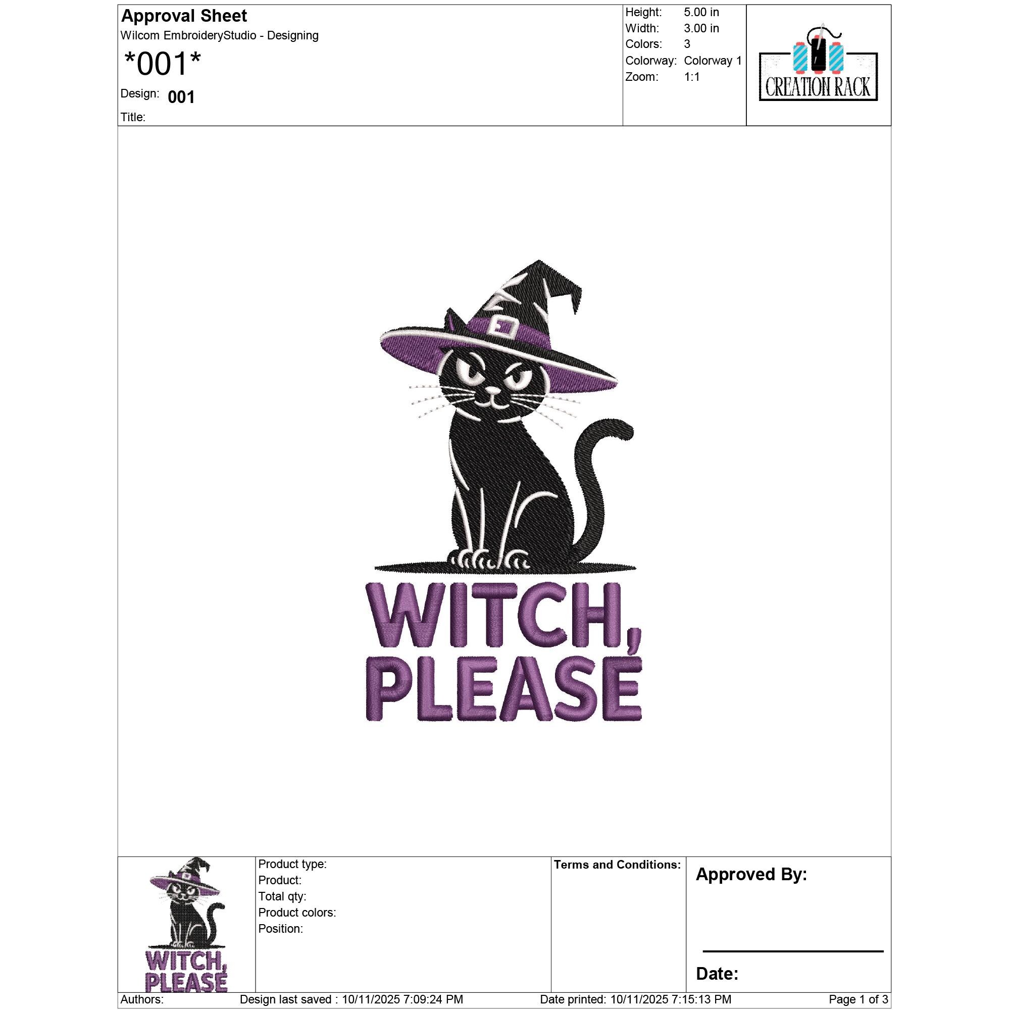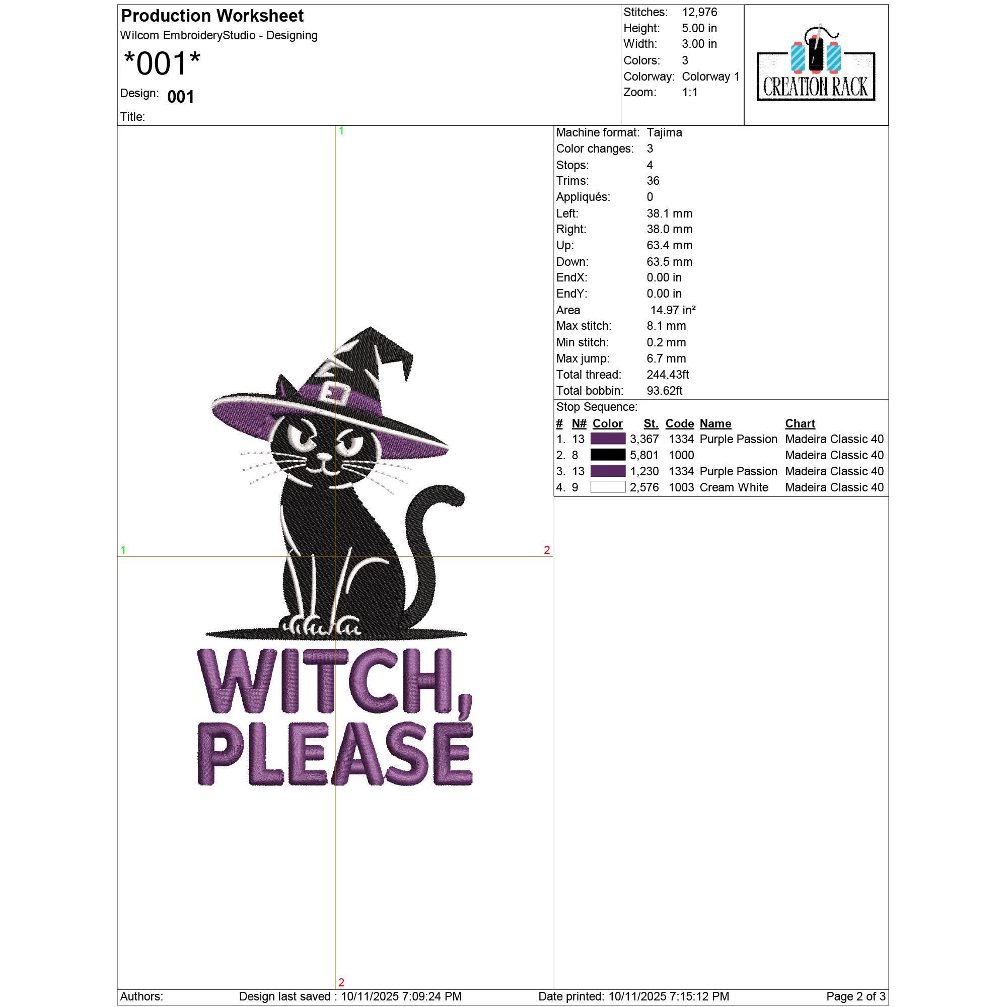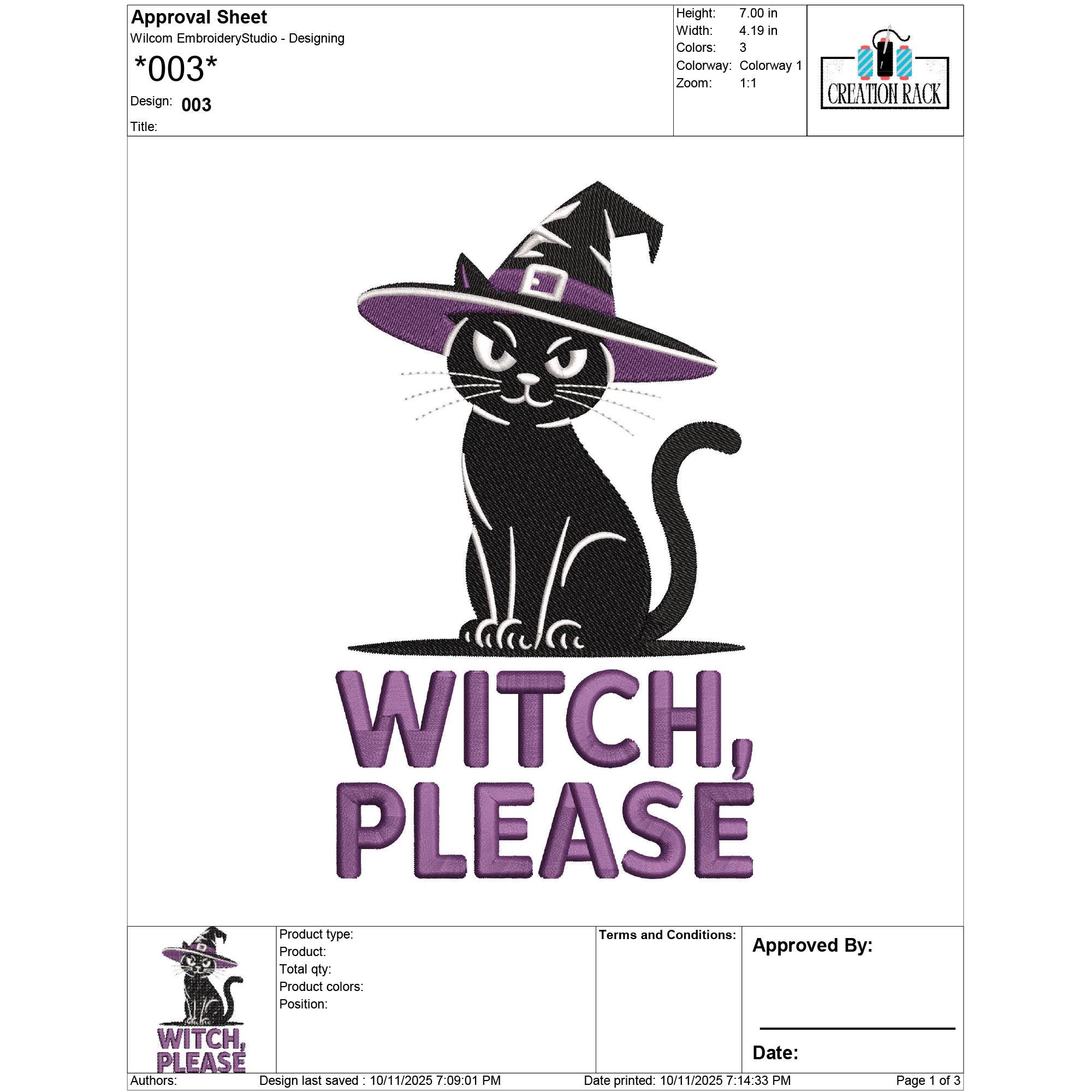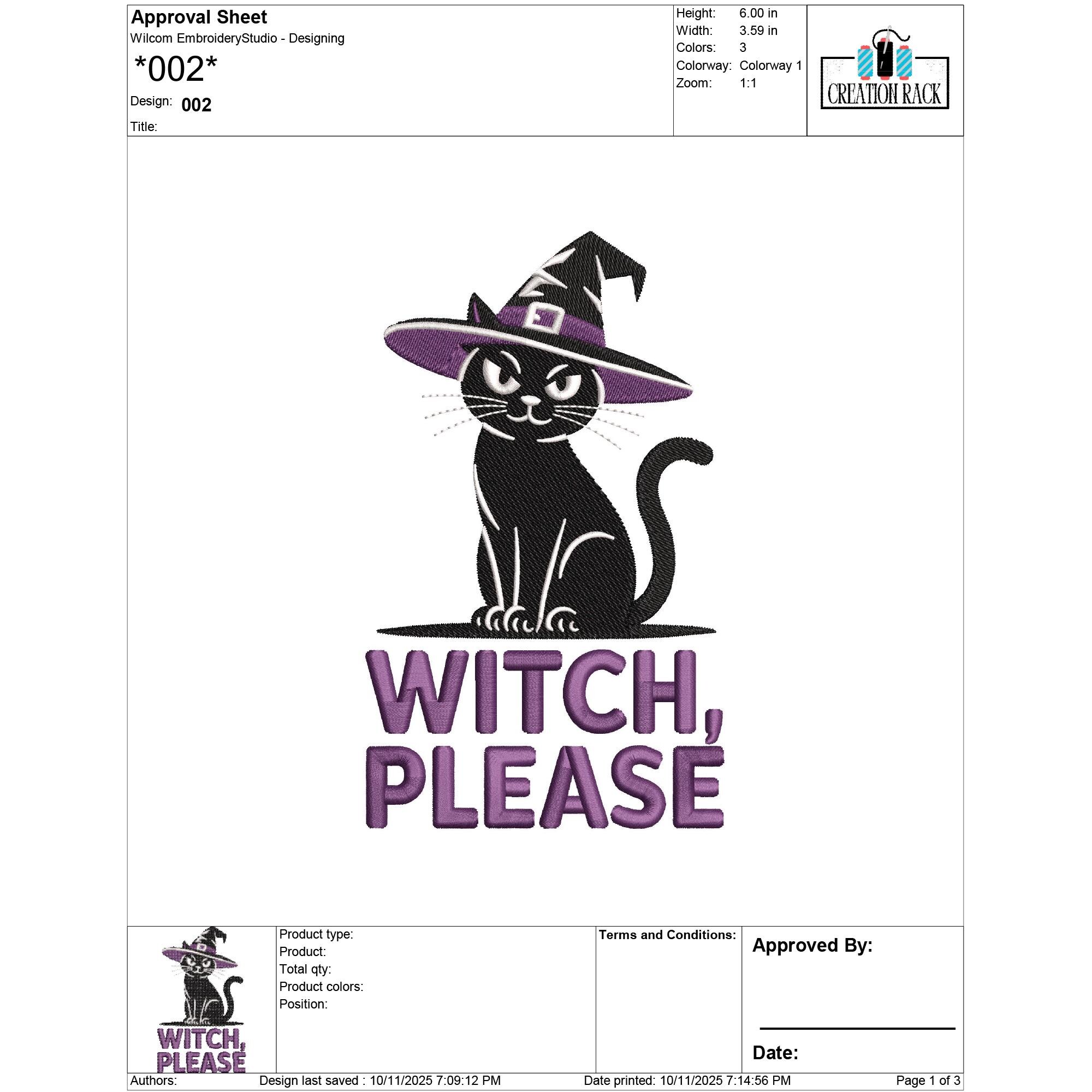 Halloween Black Cat with Witch Hat Embroidery Design: Spooky Cat Machine Embroidery File