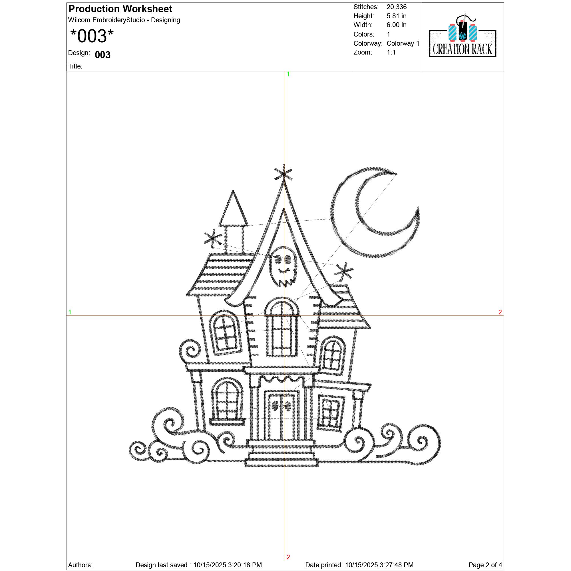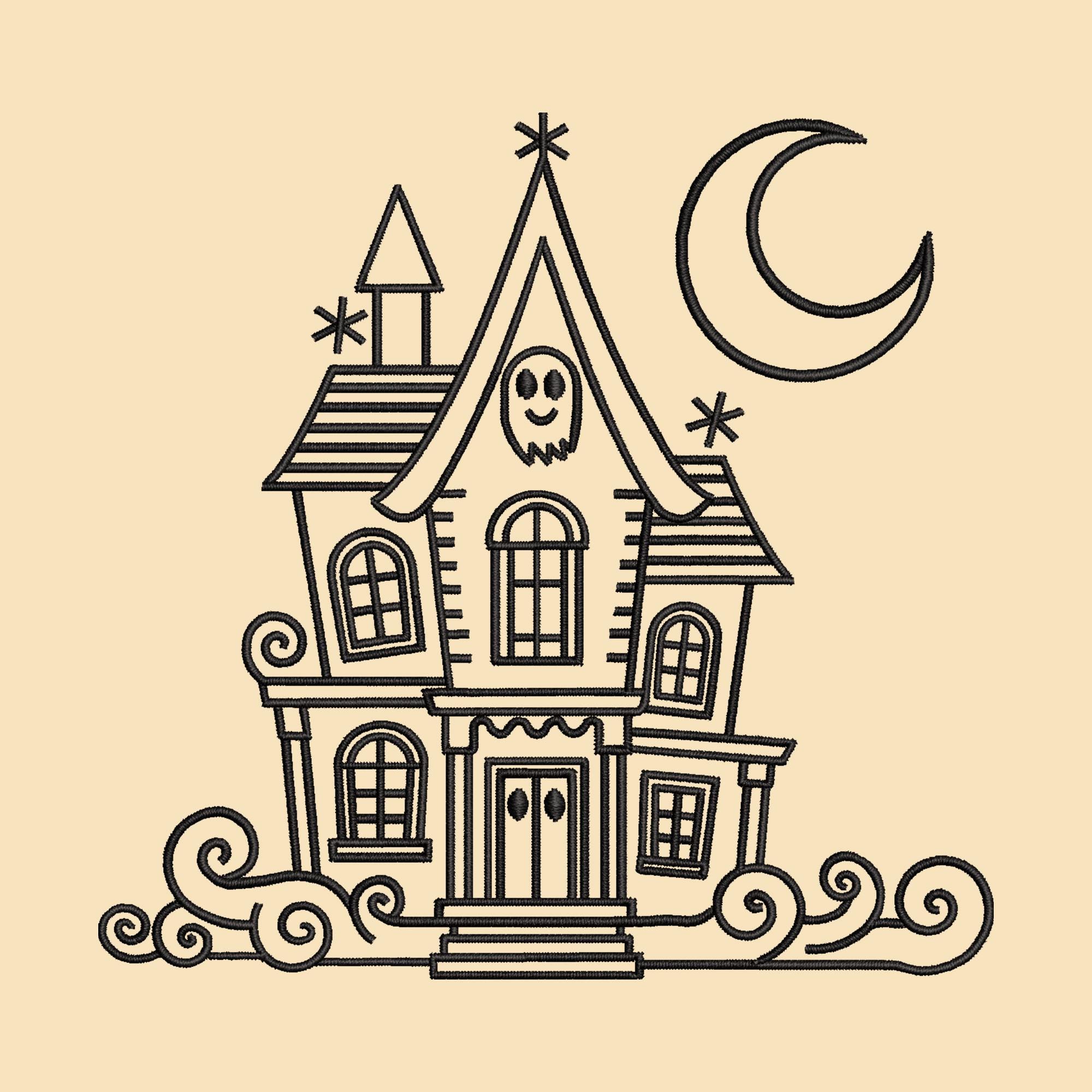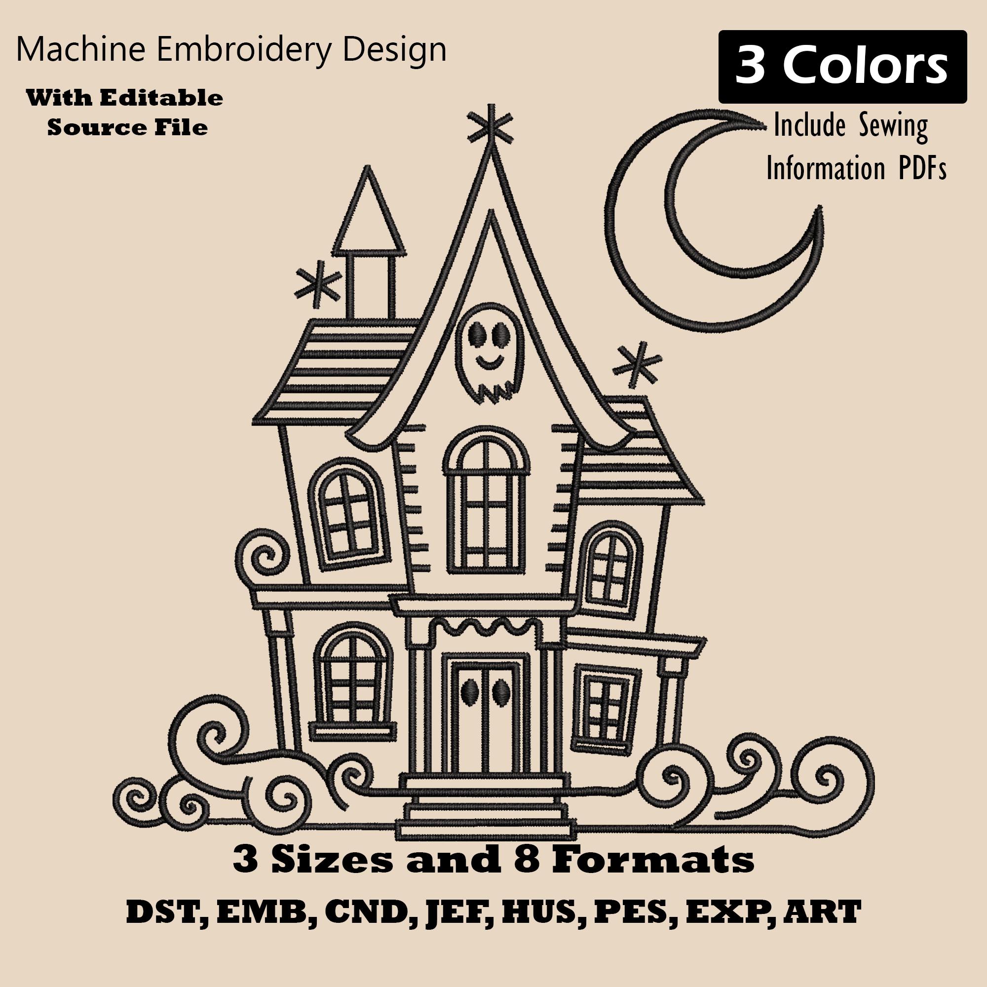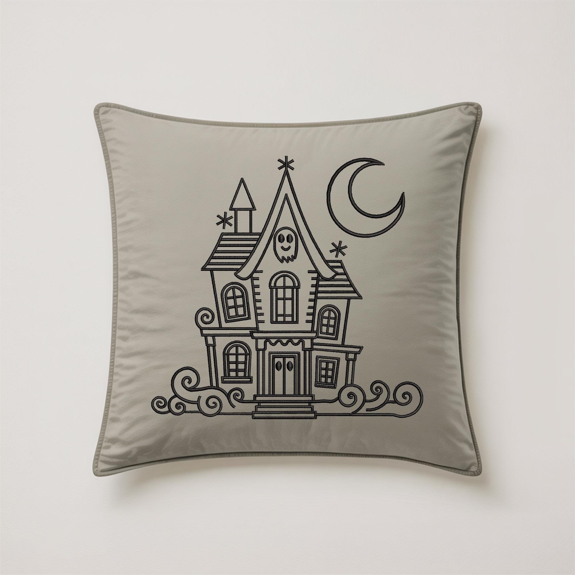 Halloween Castle Embroidery Design | Haunted House Machine Embroidery File for Spooky Decor
