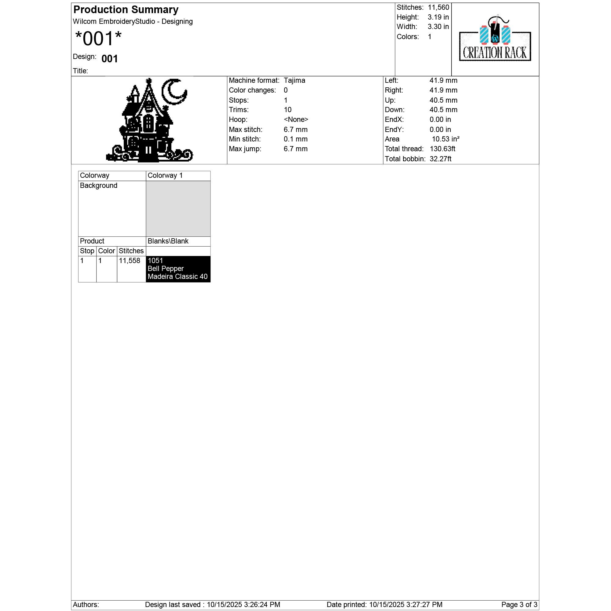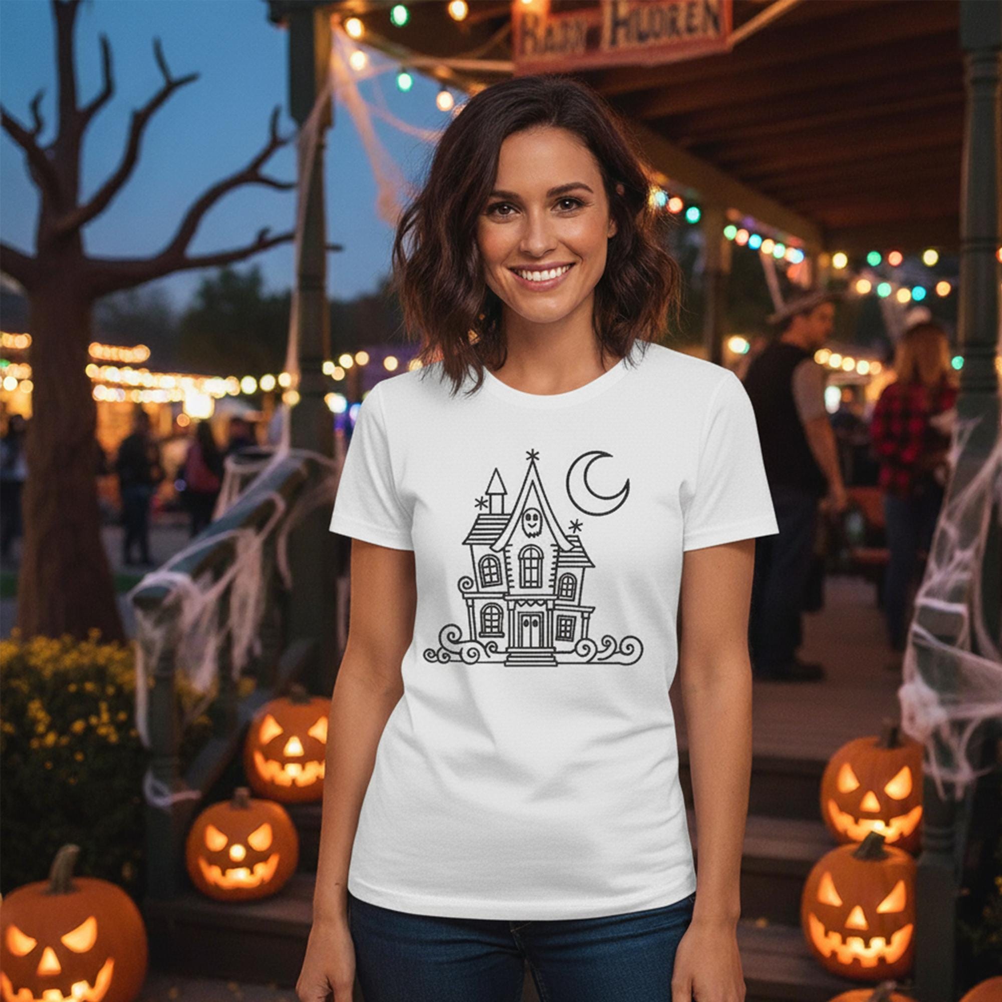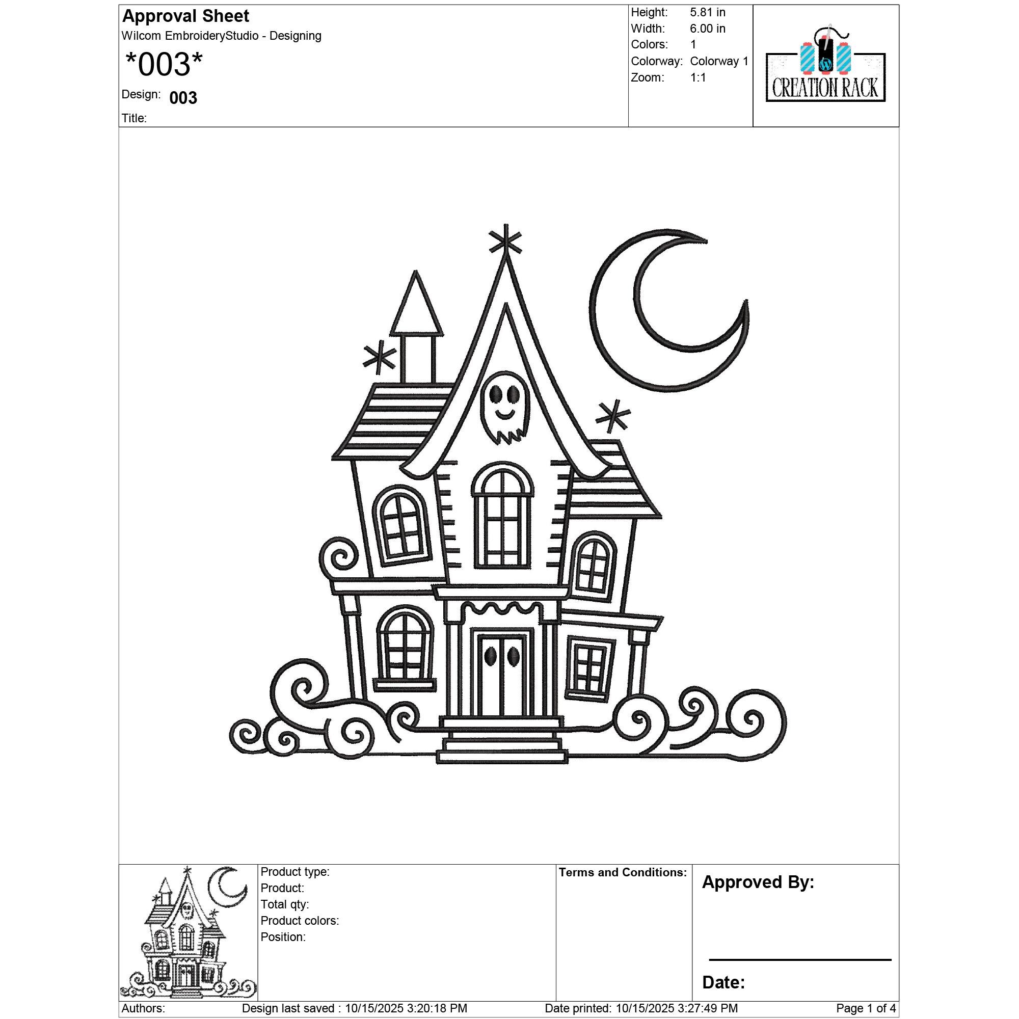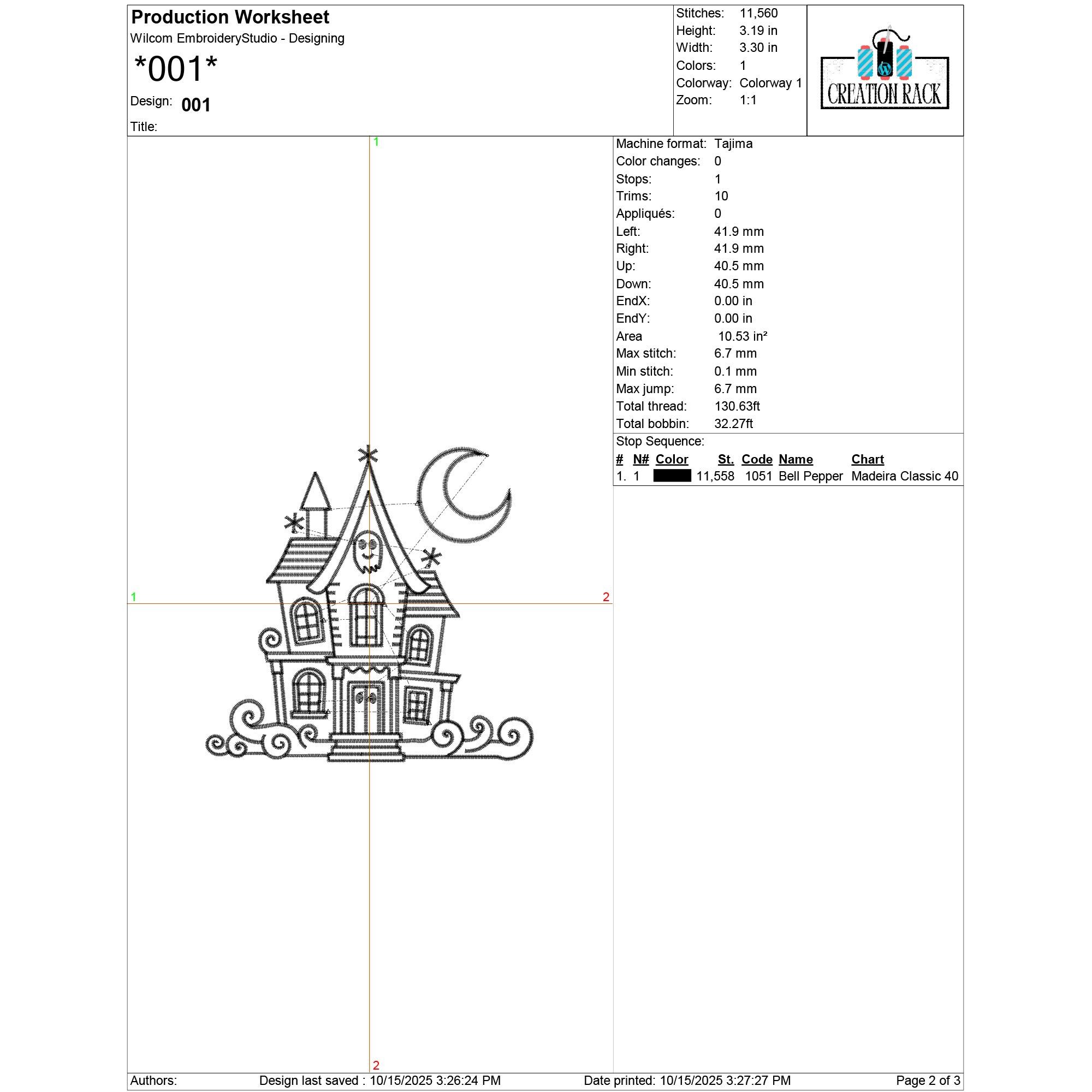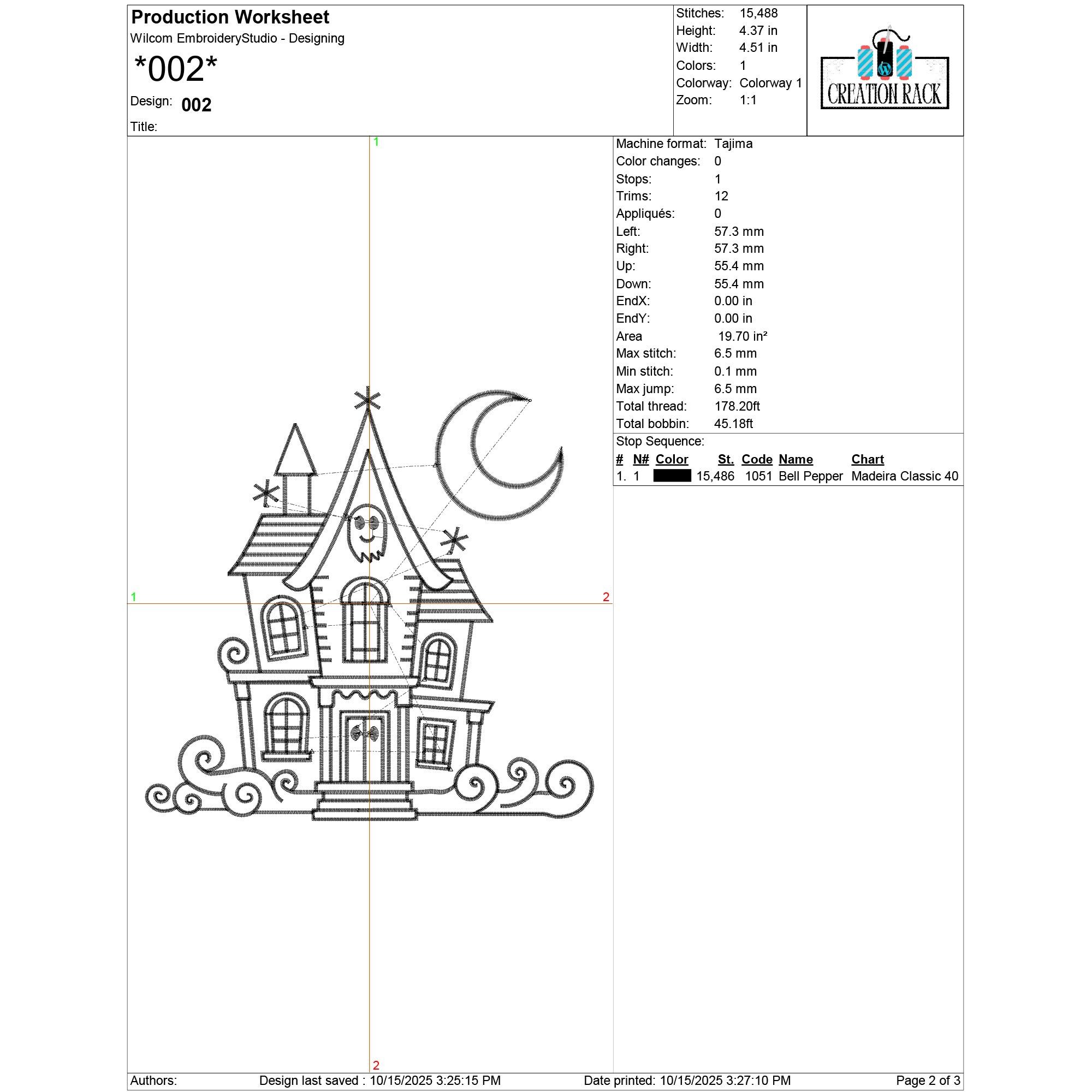 Halloween Castle Embroidery Design | Haunted House Machine Embroidery File for Spooky Decor