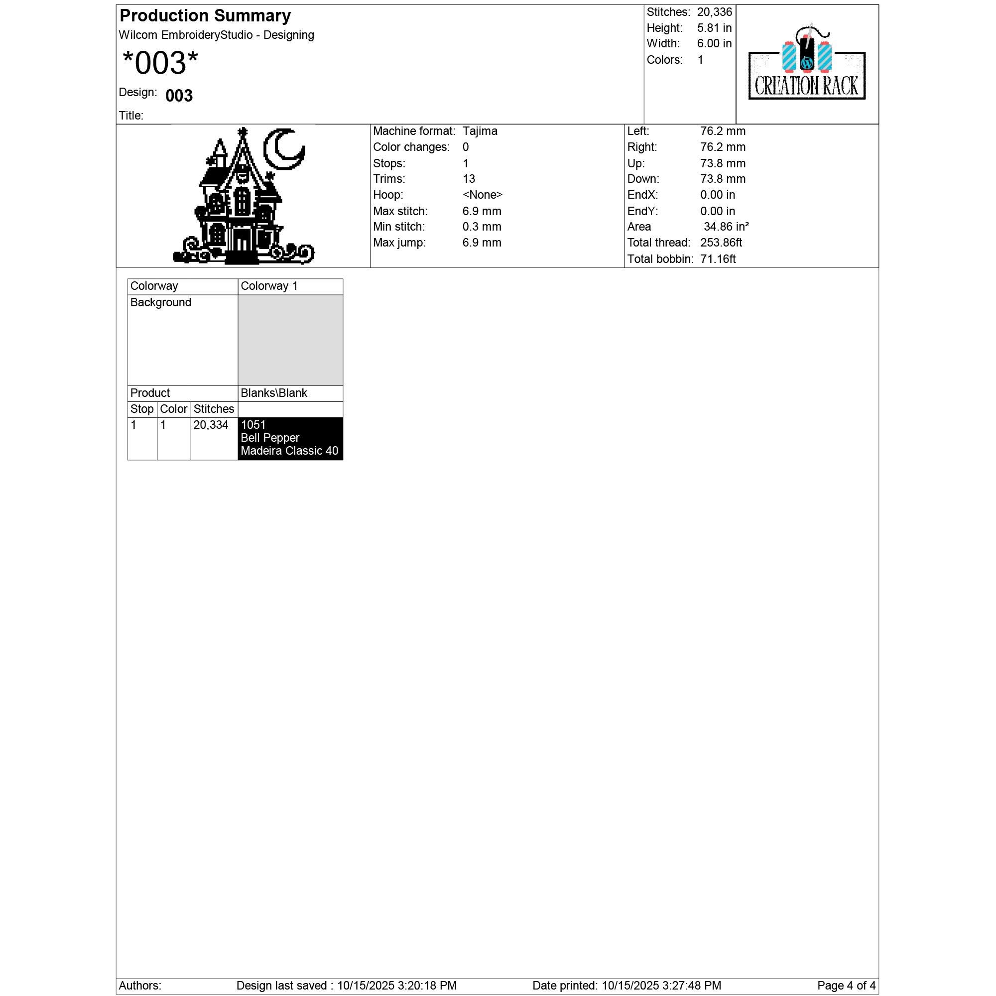 Bring spooky elegance to your projects with this Halloween Castle Embroidery Design, perfect for adding a mysterious haunted house vibe to your Halloween décor and apparel. Ideal for costumes, tote bags, wall hangings, table runners, and seasonal gifts, this design stitches beautifully and adds a touch of gothic charm to any project.