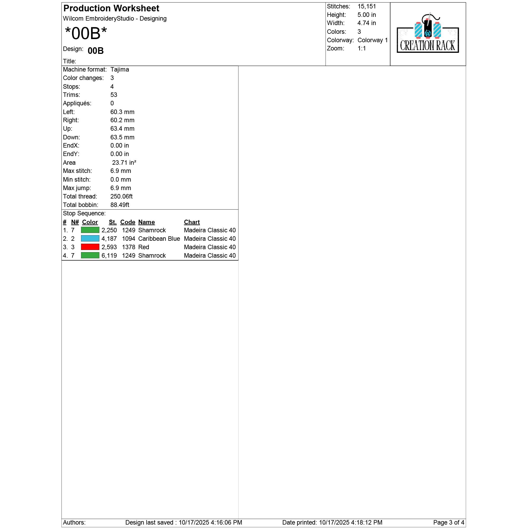 00B: 15,151 stitches | 5.00" (H) x 4.74" (W) | 3 colors
