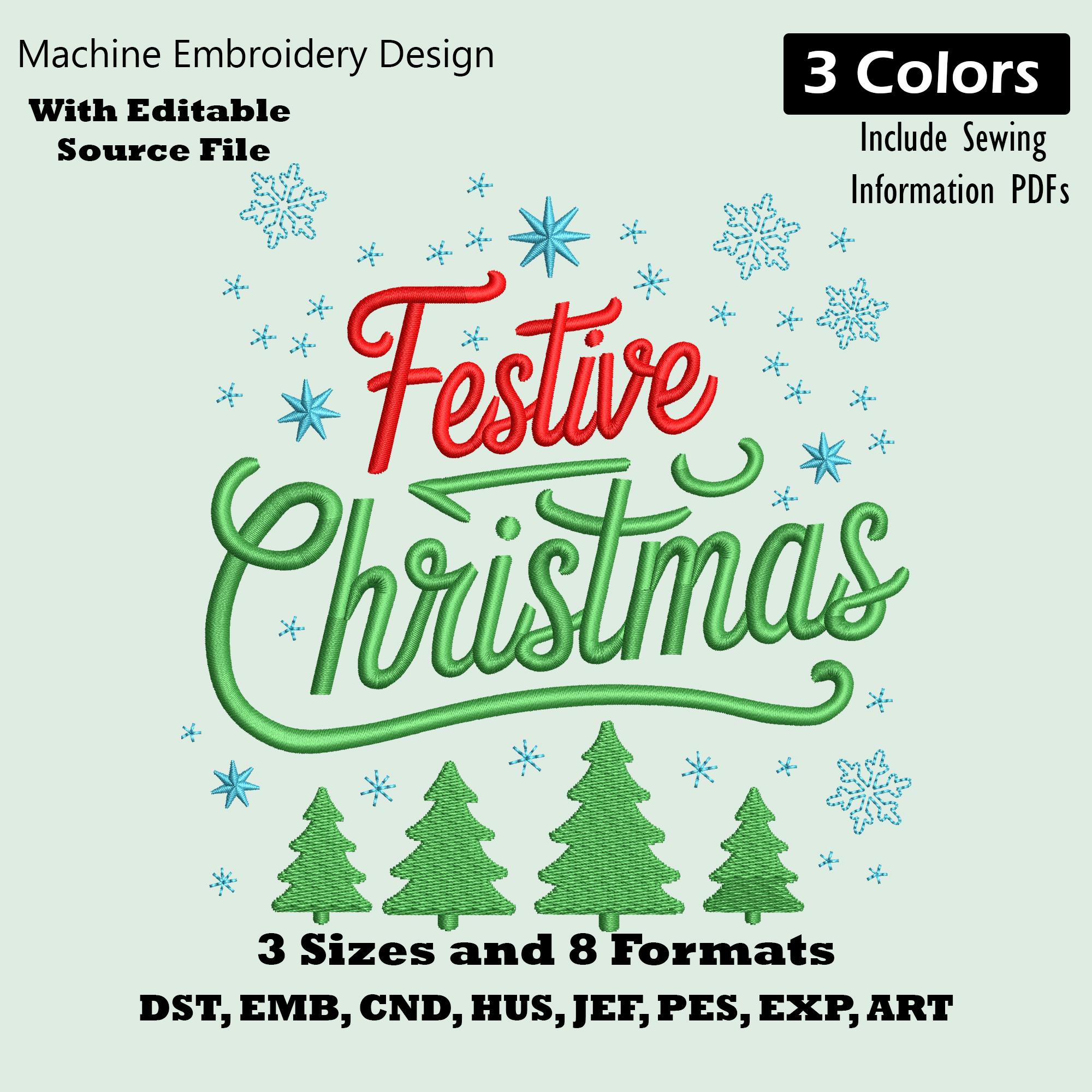 Christmas Tree Logo Embroidery Design | Modern Holiday Machine Embroidery File for Christmas Projects