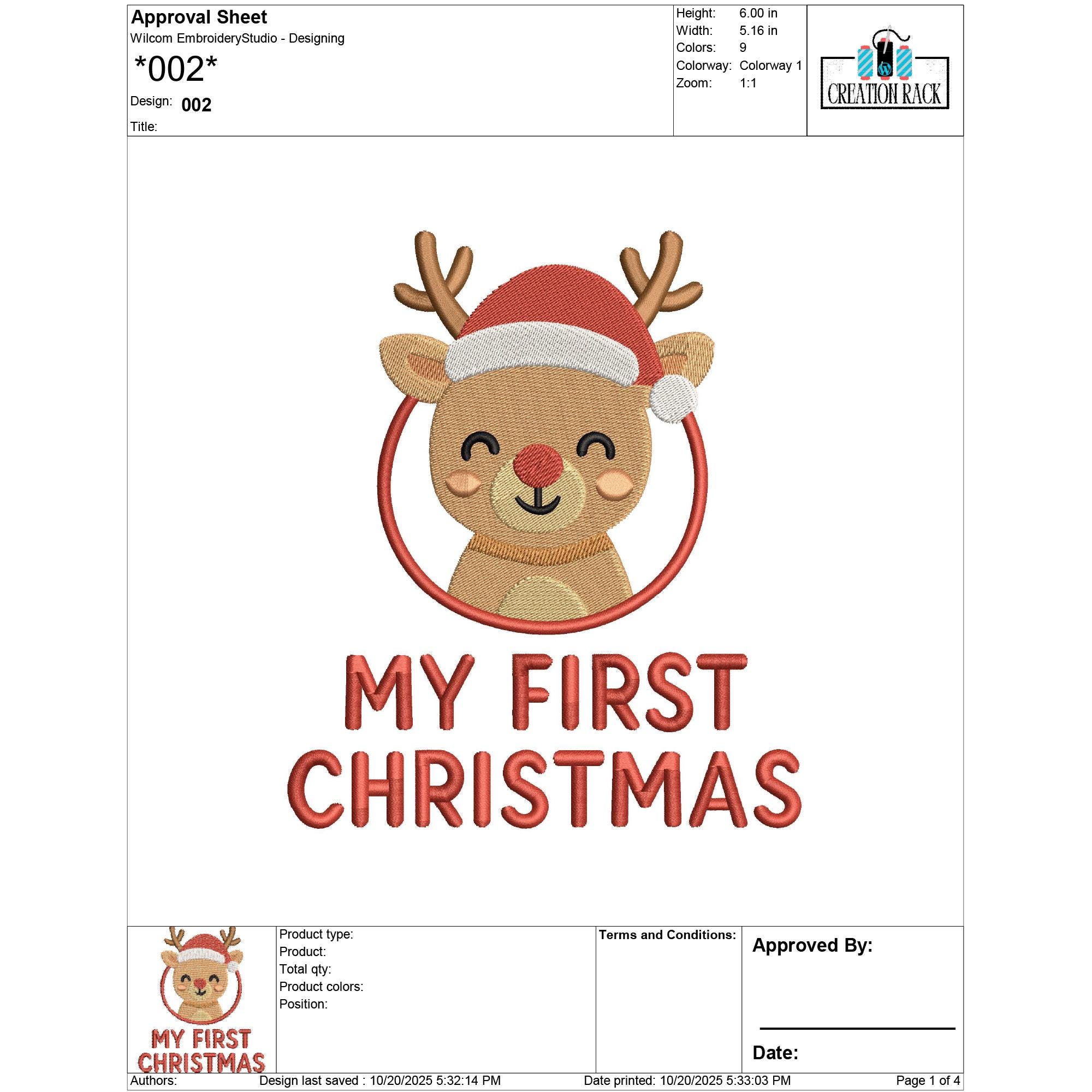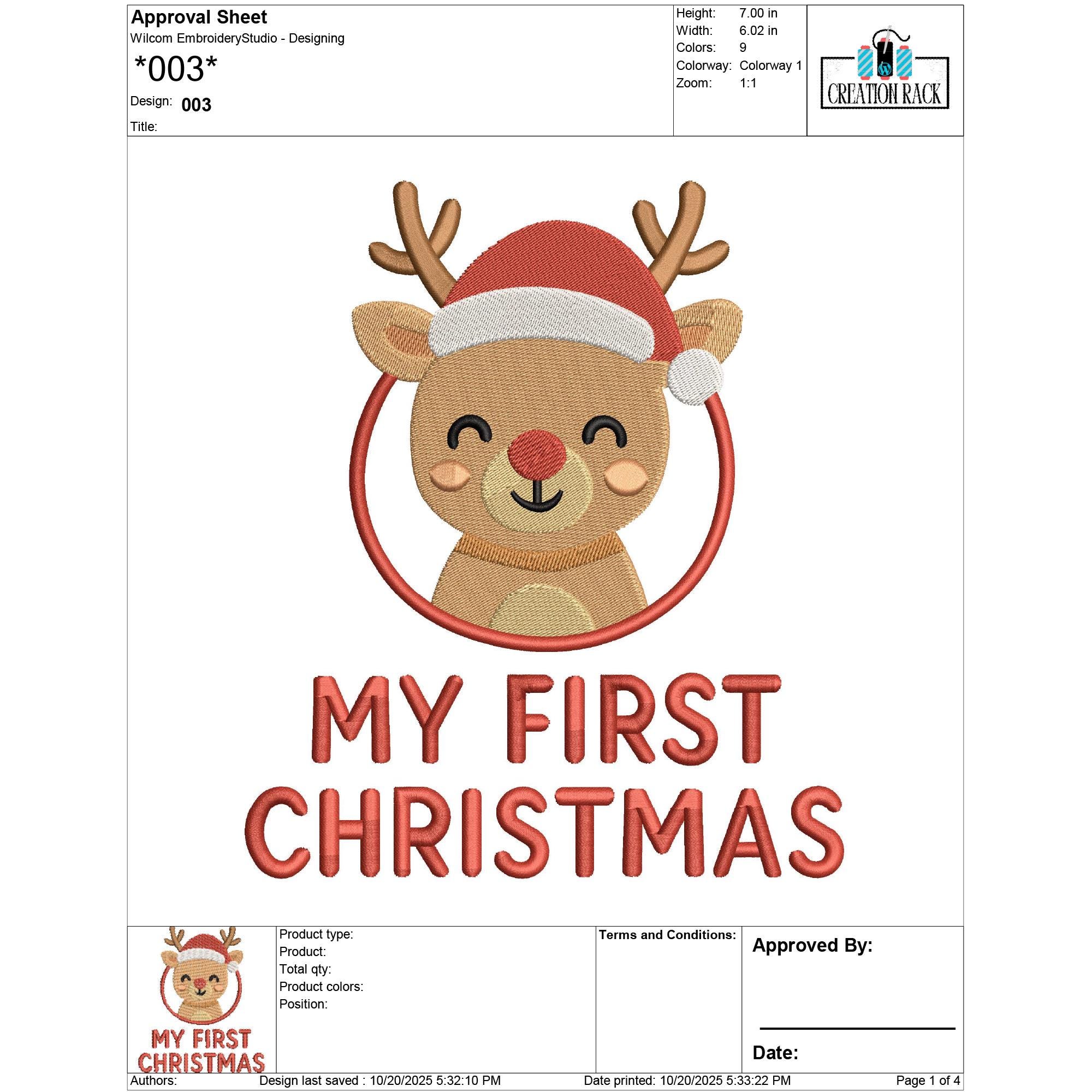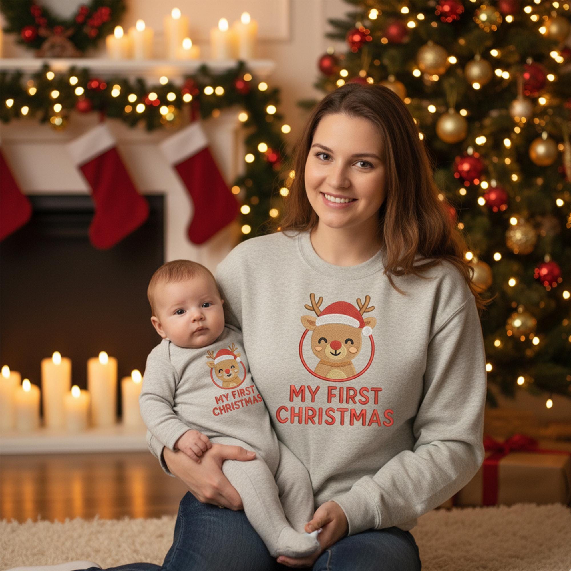 Celebrate your little one’s first holiday season with this My First Christmas Reindeer Embroidery Design — a heartwarming and adorable design perfect for baby outfits, bibs, blankets, and holiday keepsakes. This festive reindeer design captures the magic of a child’s very first Christmas, making it ideal for personalized gifts and nursery décor.
