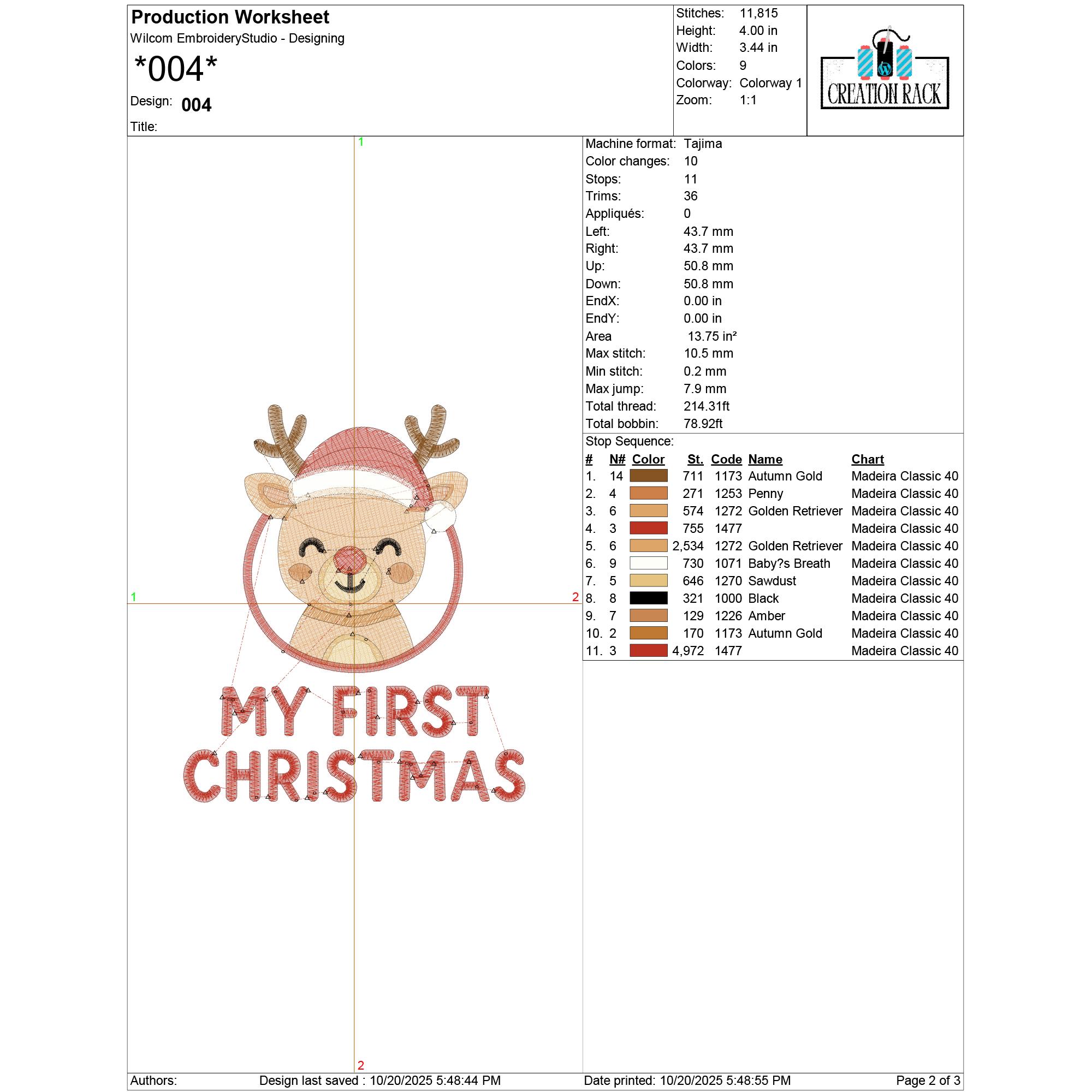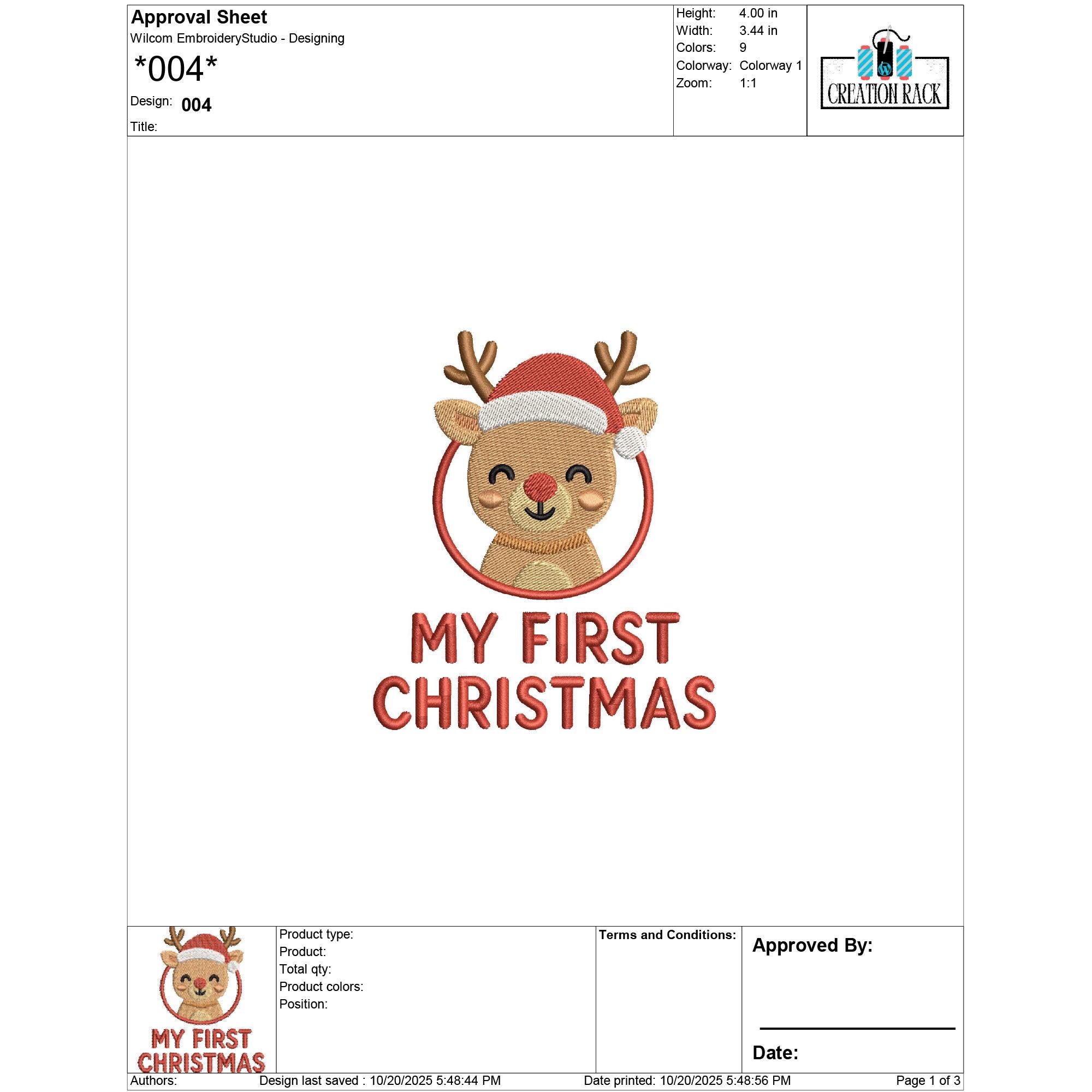 Digitized for smooth stitching and clean results, this Baby’s First Christmas Reindeer Design adds a festive and joyful touch to your embroidery projects.