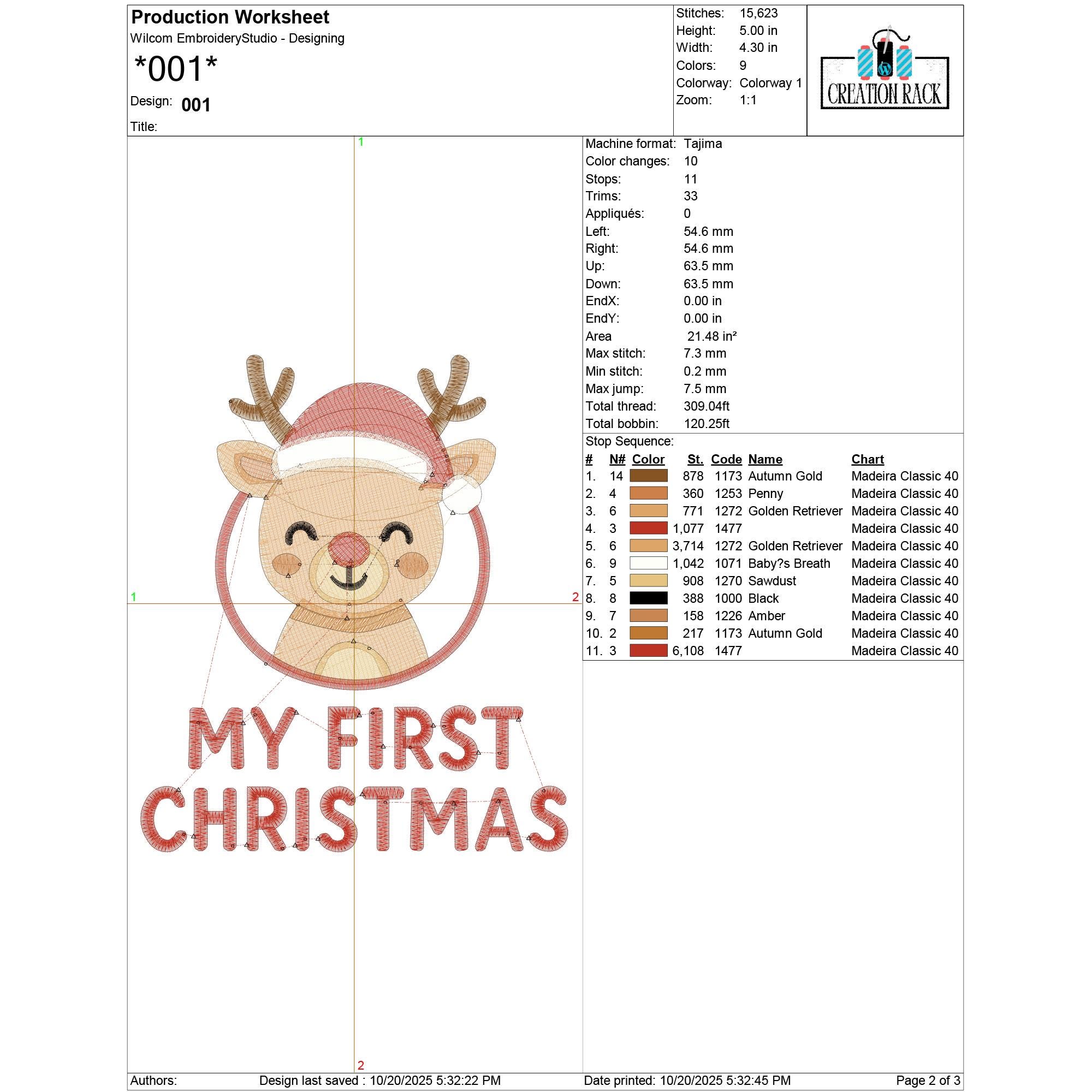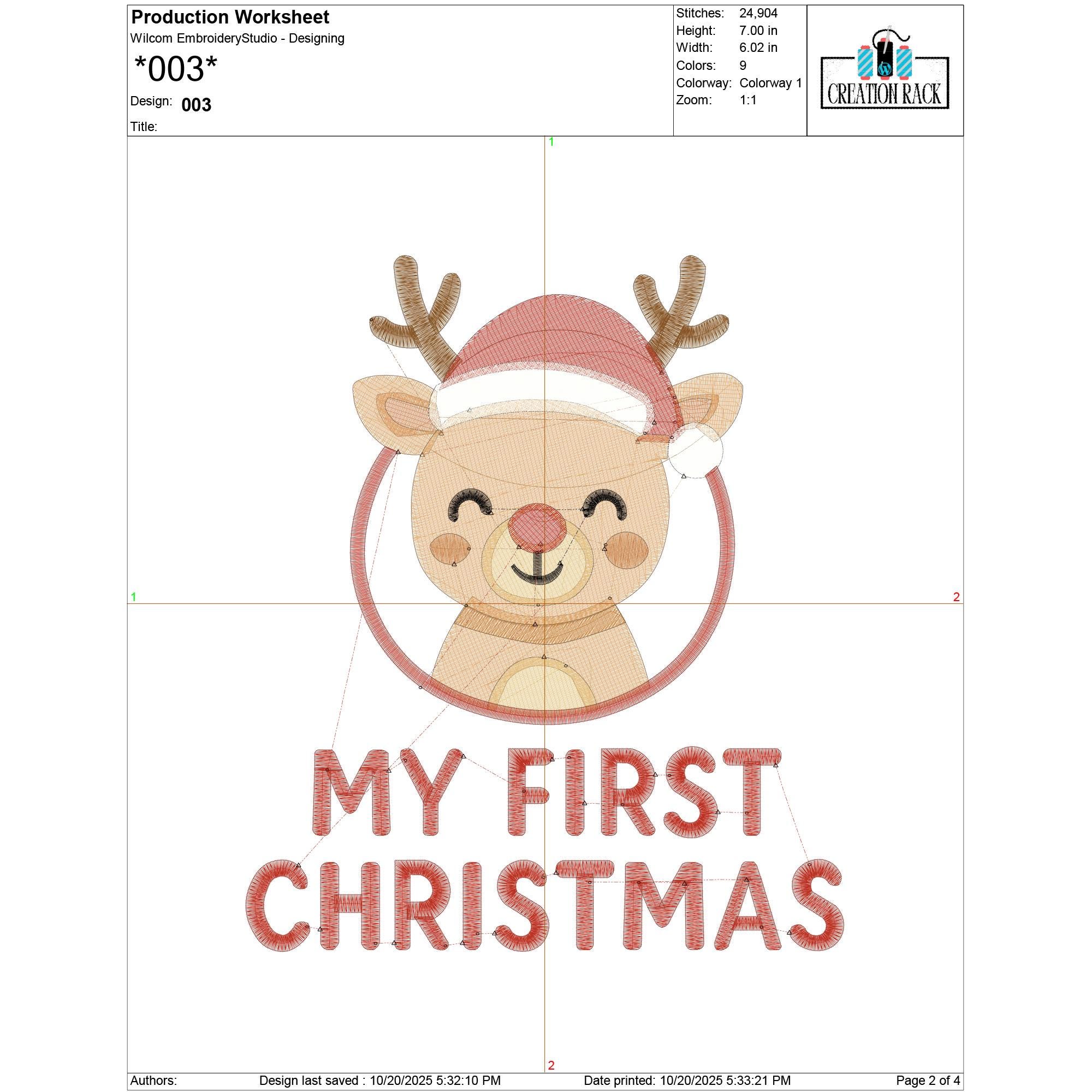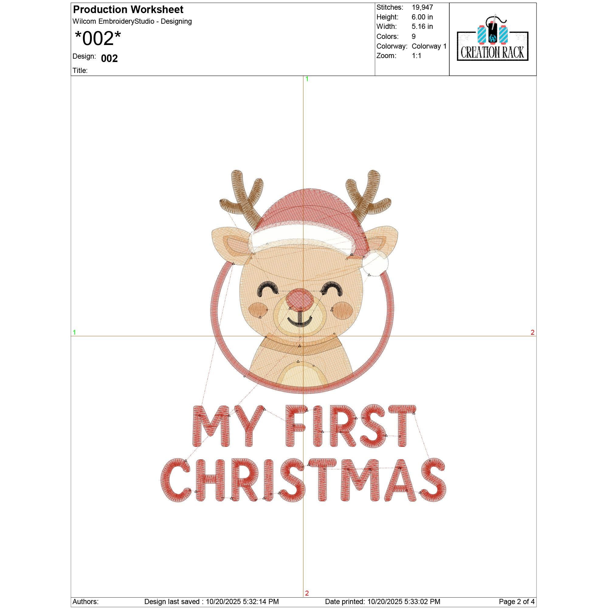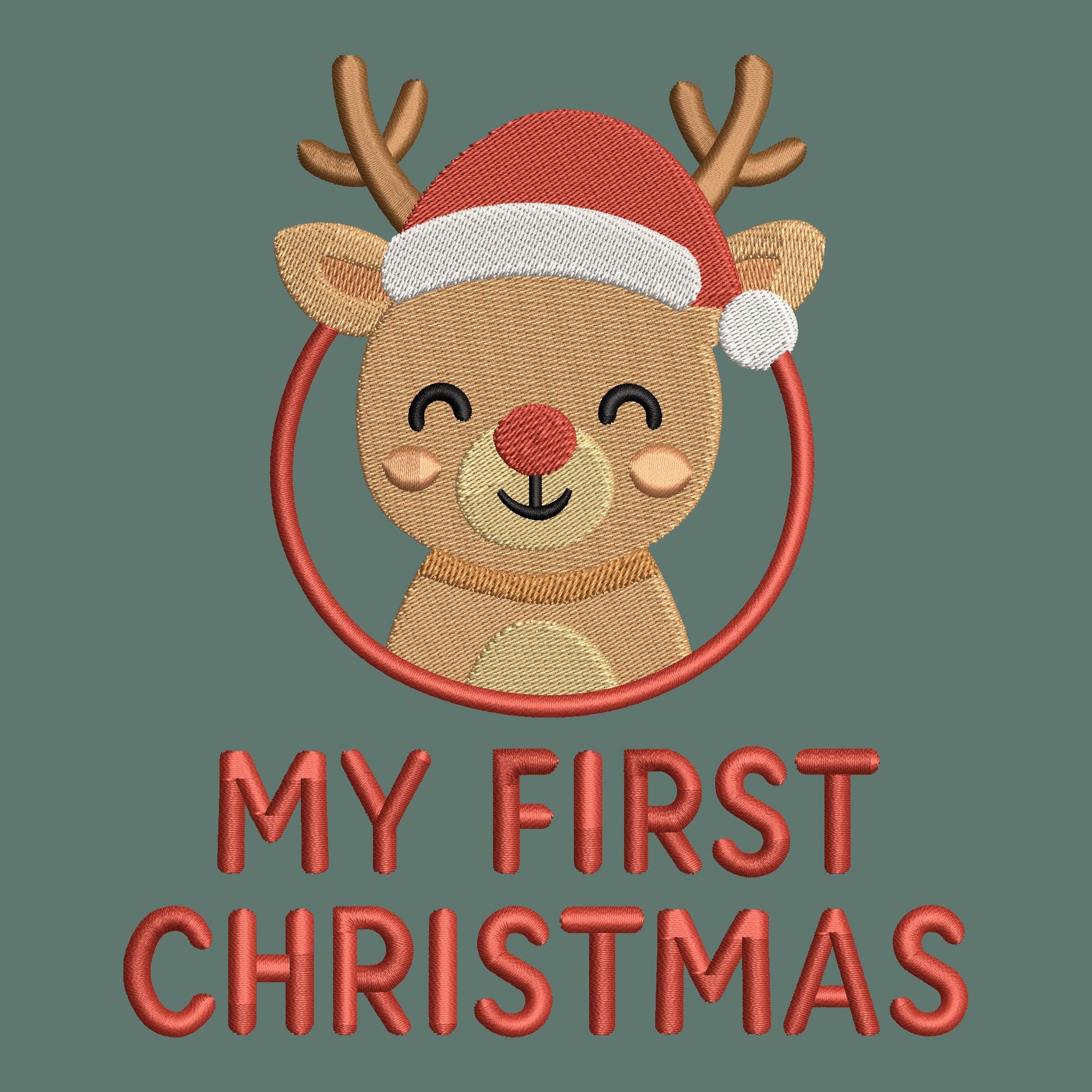 My First Christmas Reindeer Embroidery Design | Baby’s 1st Christmas Machine Embroidery File