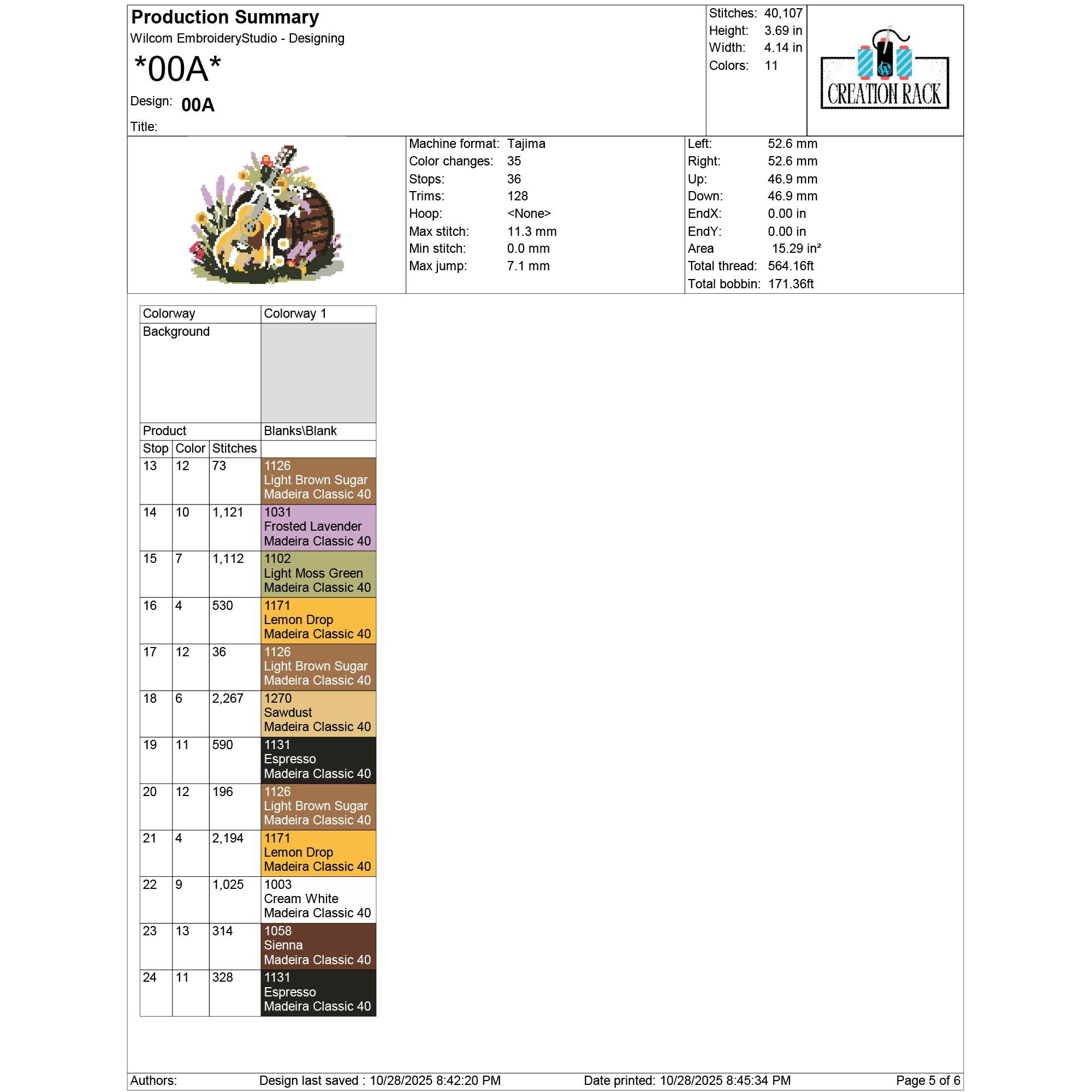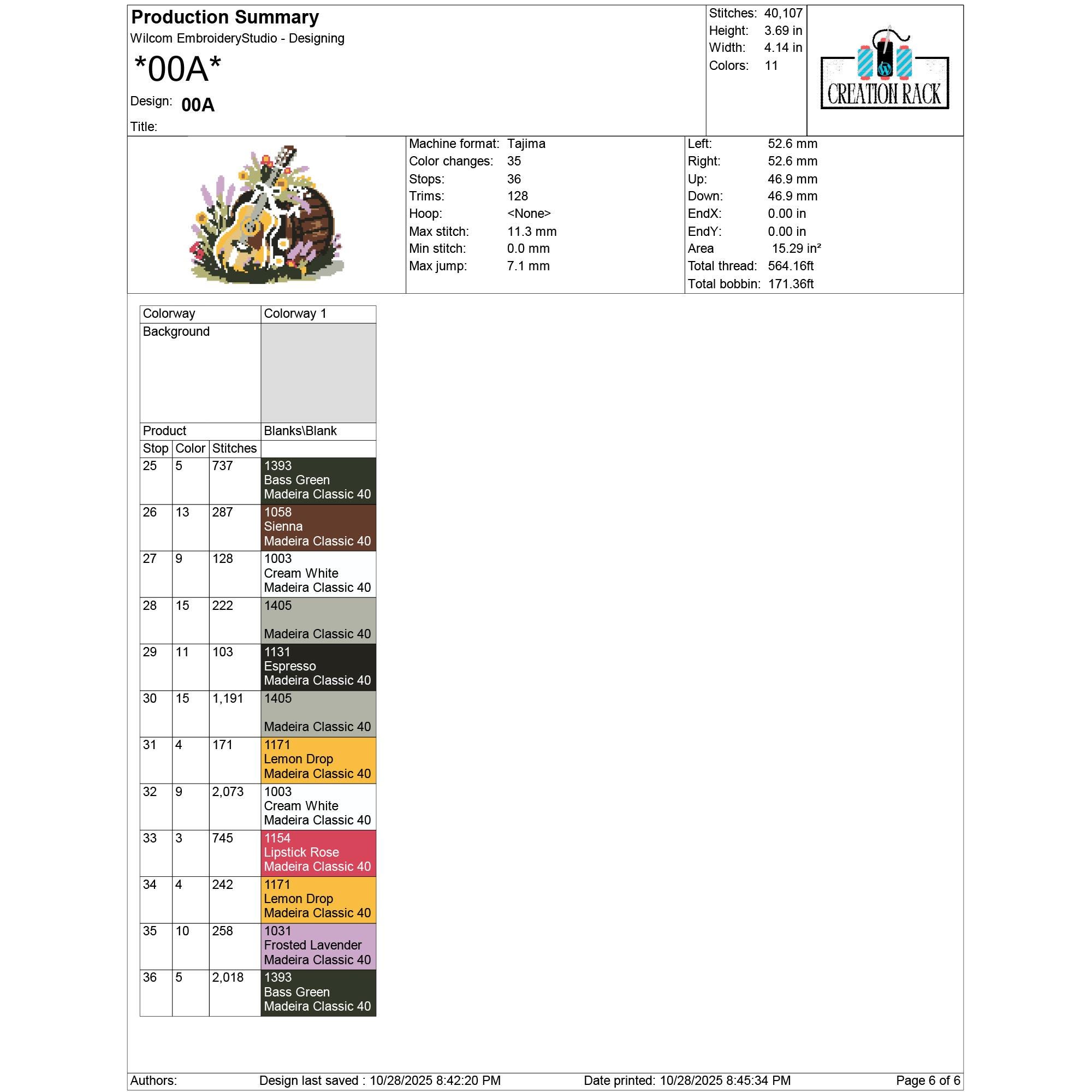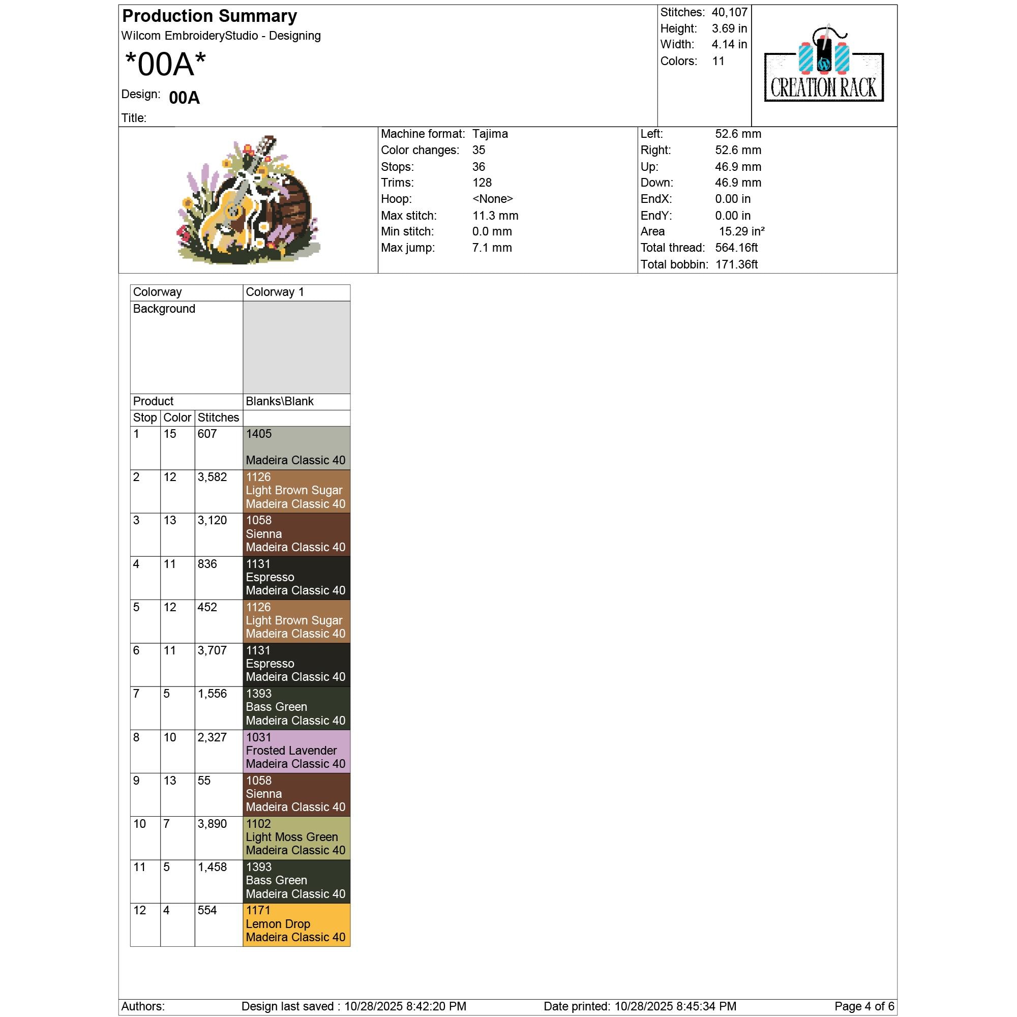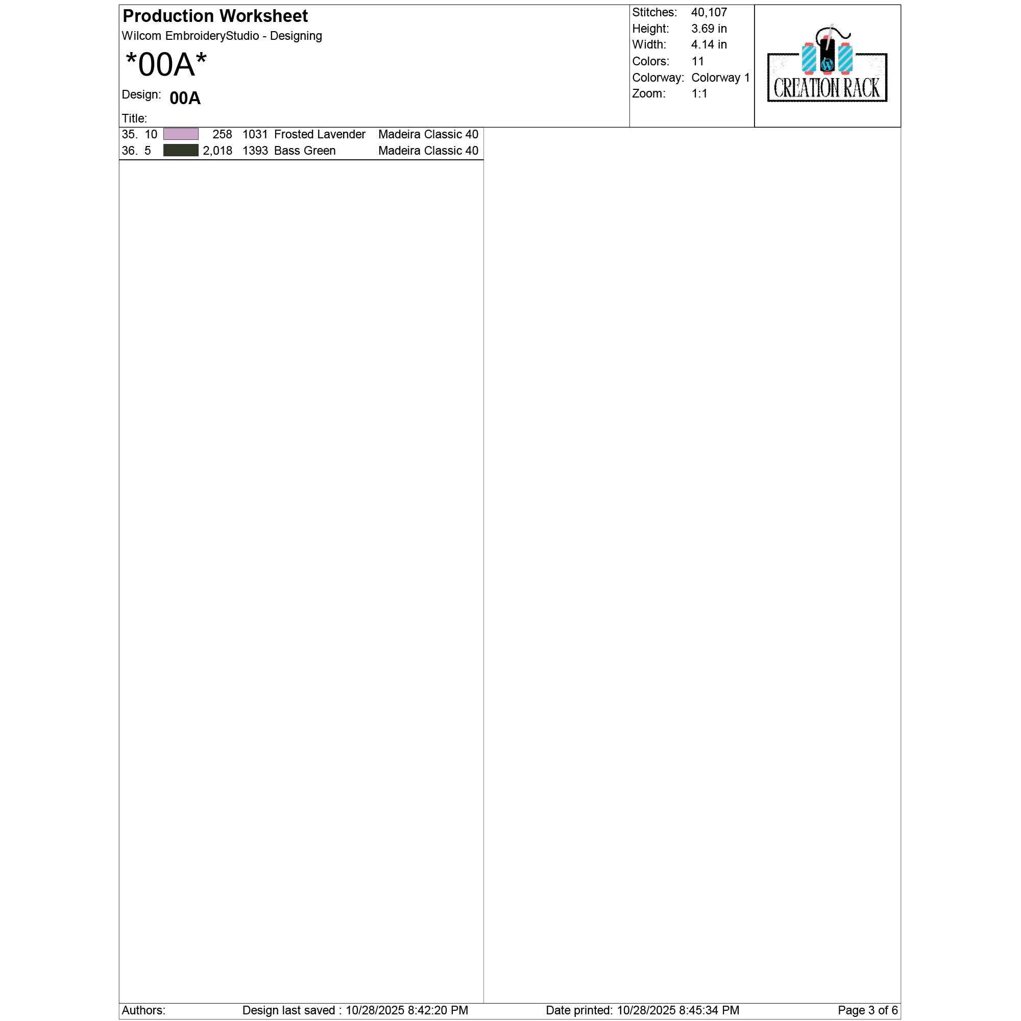 00A: 40,107 stitches | 3.69" (9.4 cm) H × 4.14" (10.5 cm) W | 11 colors