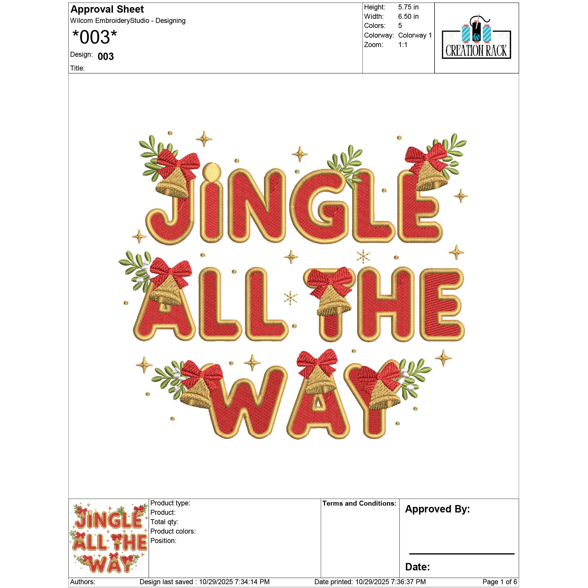 Add festive charm to your holiday projects with this Jingle All the Way Embroidery Design, featuring elegant lettering accented by jingle bells and holly details. Perfect for decorating stockings, holiday pillows, table linens, and gift bags — this cheerful design brings Christmas spirit to every stitch.